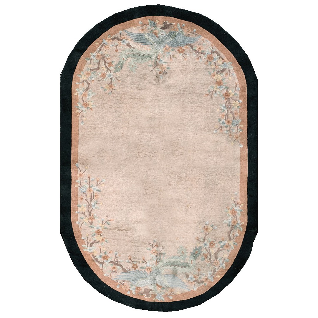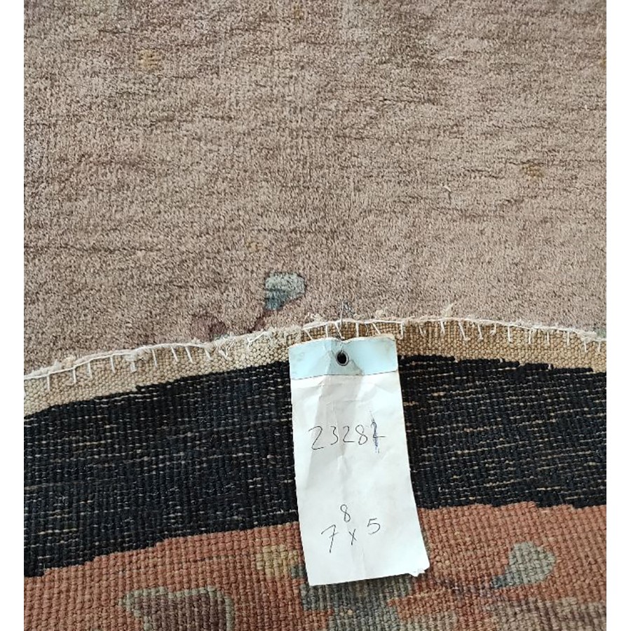 DescriptionChineseCarpets made in China proper. See entries Ningshia, Peking, Art Deco. Chinese - Art DecoAs the name implies, pieces woven between the wars for the Western market by mostly American owned firms especially Nichols and Fette, in thick heavy weaves using strong colors, asymmetric patterns and downplaying the Chinese-ness of the carpet. Nichols rugs are more strong toned than the pastel Fette. Most were woven in the coastal port city of Tientsin. Other lesser known workshops were also active. Some pieces are ultra-geometric and haute-Deco moderne in character: these are very rare. More frequent are pieces with bits of Chinese ornament: vases or other precious objects, paeonies, vines, fences, etc. Most common is the 9 x 12 size, in colors never found in mainstream Chinese rugs: backgrounds in black, mauve, purple, hot pink, orange, olive, employing the best synthetic chrome dyes of the period. Prices are still reasonable and carpets in top condition are available. | |