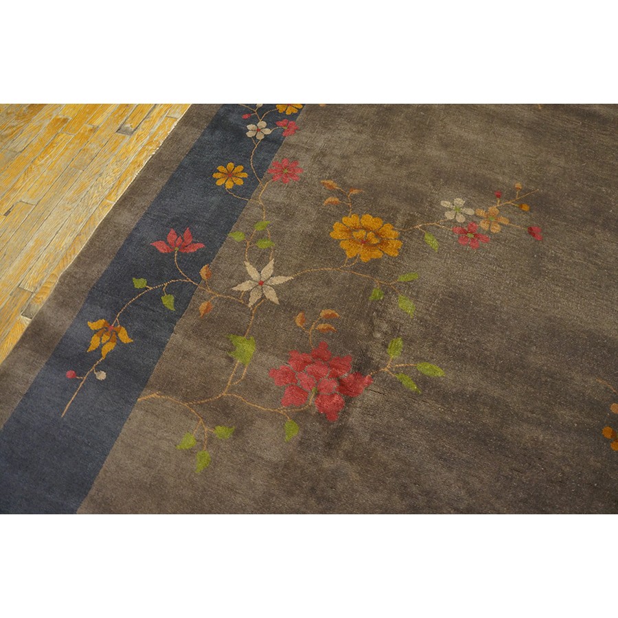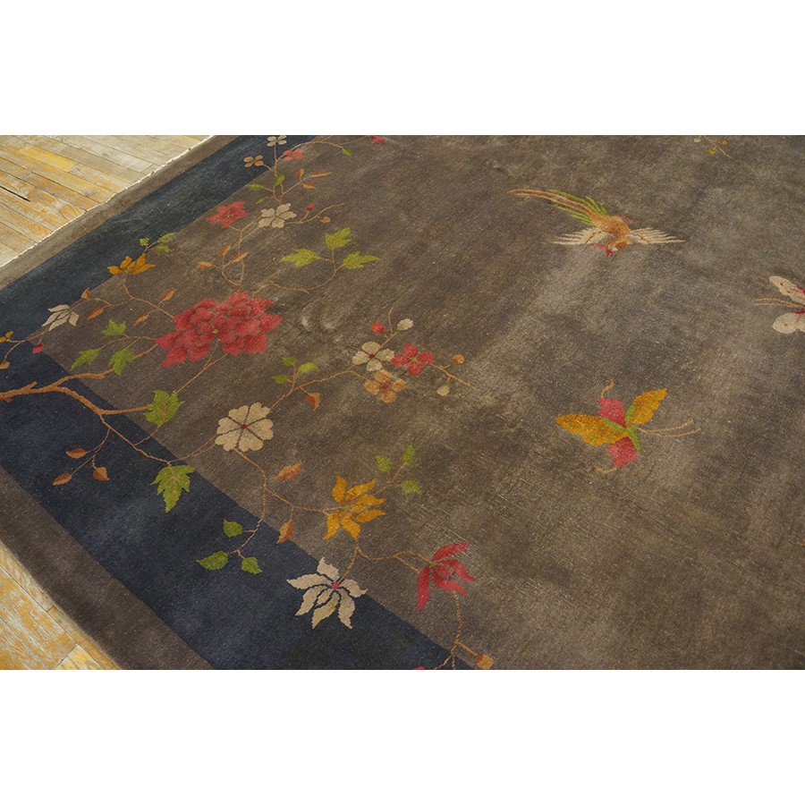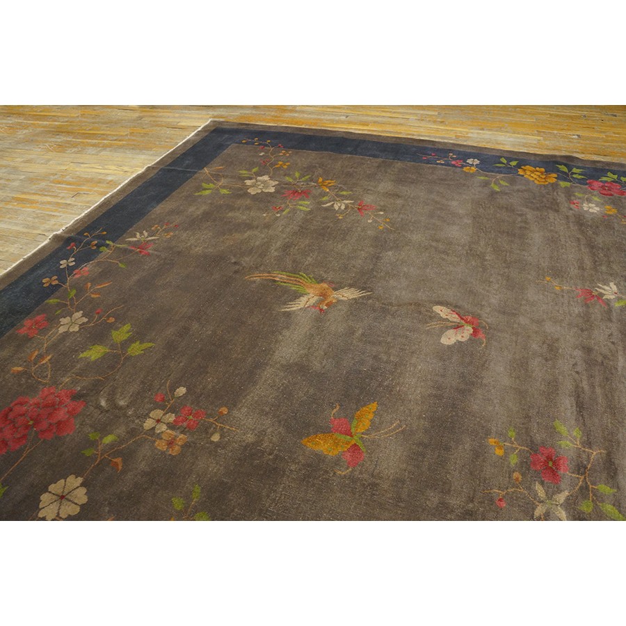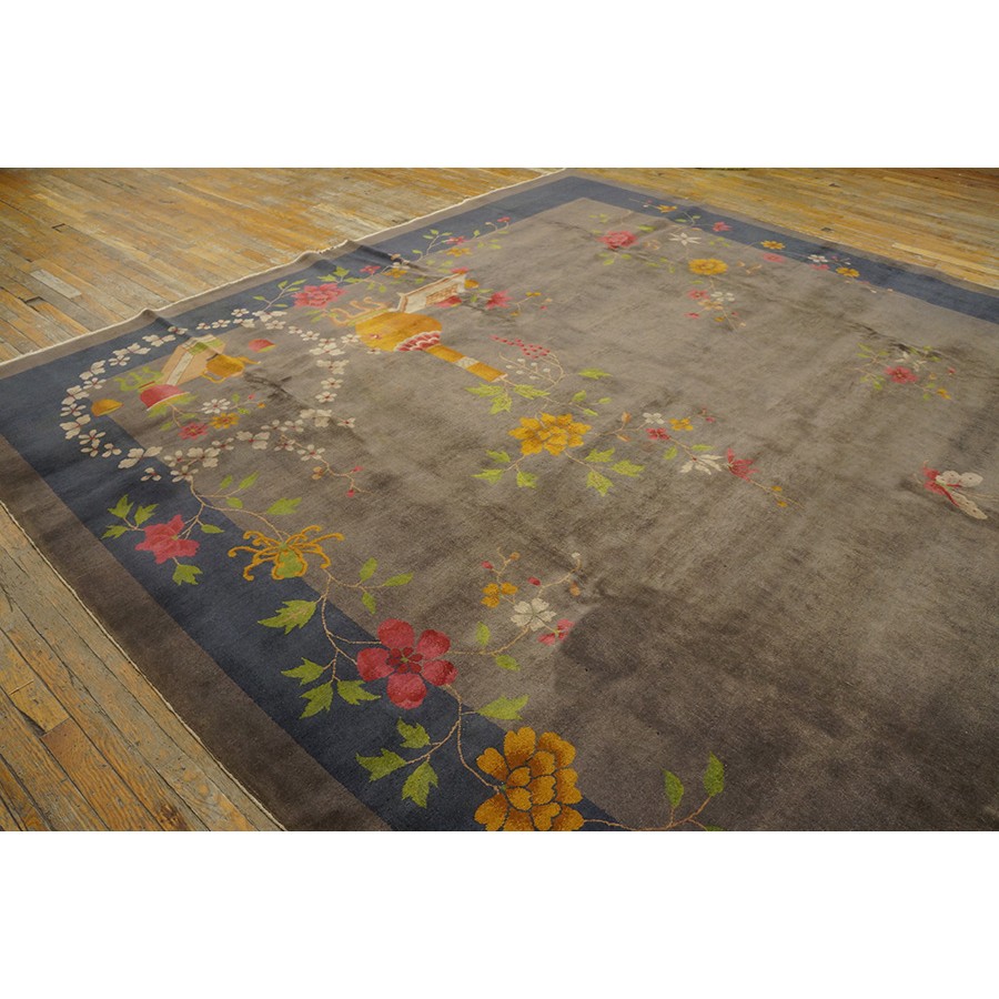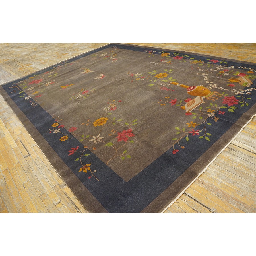 DescriptionChineseCarpets made in China proper. See entries Ningshia, Peking, Art Deco. Chinese - Art DecoAs the name implies, pieces woven between the wars for the Western market by mostly American owned firms especially Nichols and Fette, in thick heavy weaves using strong colors, asymmetric patterns and downplaying the Chinese-ness of the carpet. Nichols rugs are more strong toned than the pastel Fette. Most were woven in the coastal port city of Tientsin. Other lesser known workshops were also active. Some pieces are ultra-geometric and haute-Deco moderne in character: these are very rare. More frequent are pieces with bits of Chinese ornament: vases or other precious objects, paeonies, vines, fences, etc. Most common is the 9 x 12 size, in colors never found in mainstream Chinese rugs: backgrounds in black, mauve, purple, hot pink, orange, olive, employing the best synthetic chrome dyes of the period. Prices are still reasonable and carpets in top condition are available. | |