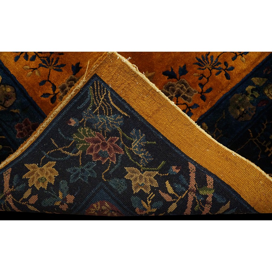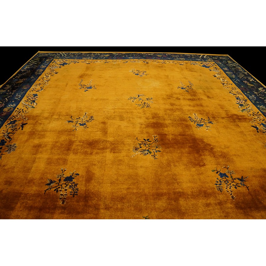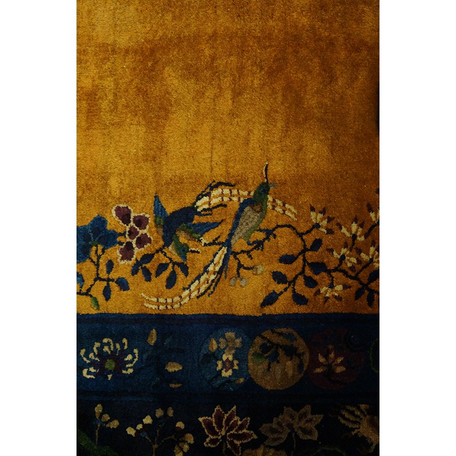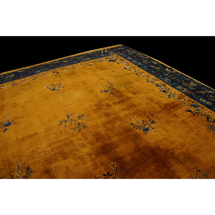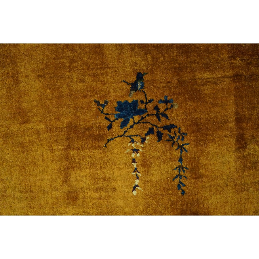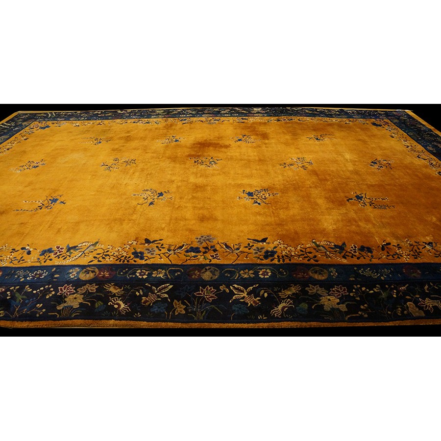 DescriptionChineseCarpets made in China proper. See entries Ningshia, Peking, Art Deco. Chinese - Art DecoAs the name implies, pieces woven between the wars for the Western market by mostly American owned firms especially Nichols and Fette, in thick heavy weaves using strong colors, asymmetric patterns and downplaying the Chinese-ness of the carpet. Nichols rugs are more strong toned than the pastel Fette. Most were woven in the coastal port city of Tientsin. Other lesser known workshops were also active. Some pieces are ultra-geometric and haute-Deco moderne in character: these are very rare. More frequent are pieces with bits of Chinese ornament: vases or other precious objects, paeonies, vines, fences, etc. Most common is the 9 x 12 size, in colors never found in mainstream Chinese rugs: backgrounds in black, mauve, purple, hot pink, orange, olive, employing the best synthetic chrome dyes of the period. Prices are still reasonable and carpets in top condition are available. | |