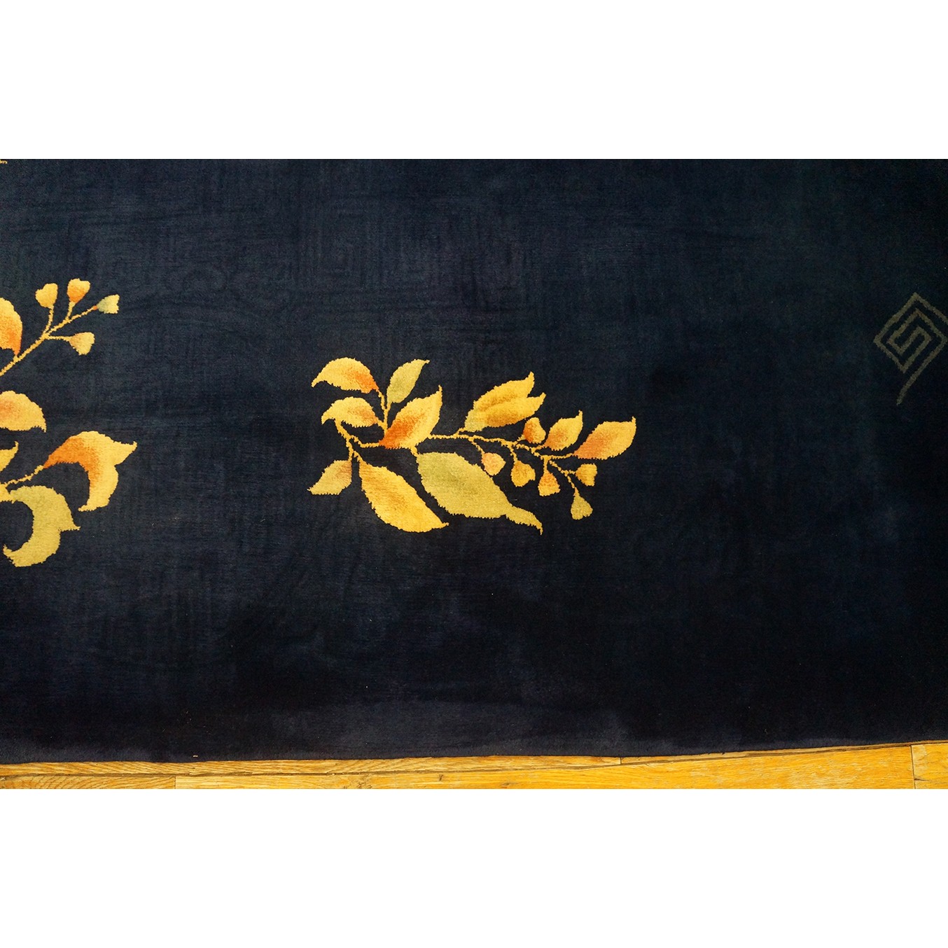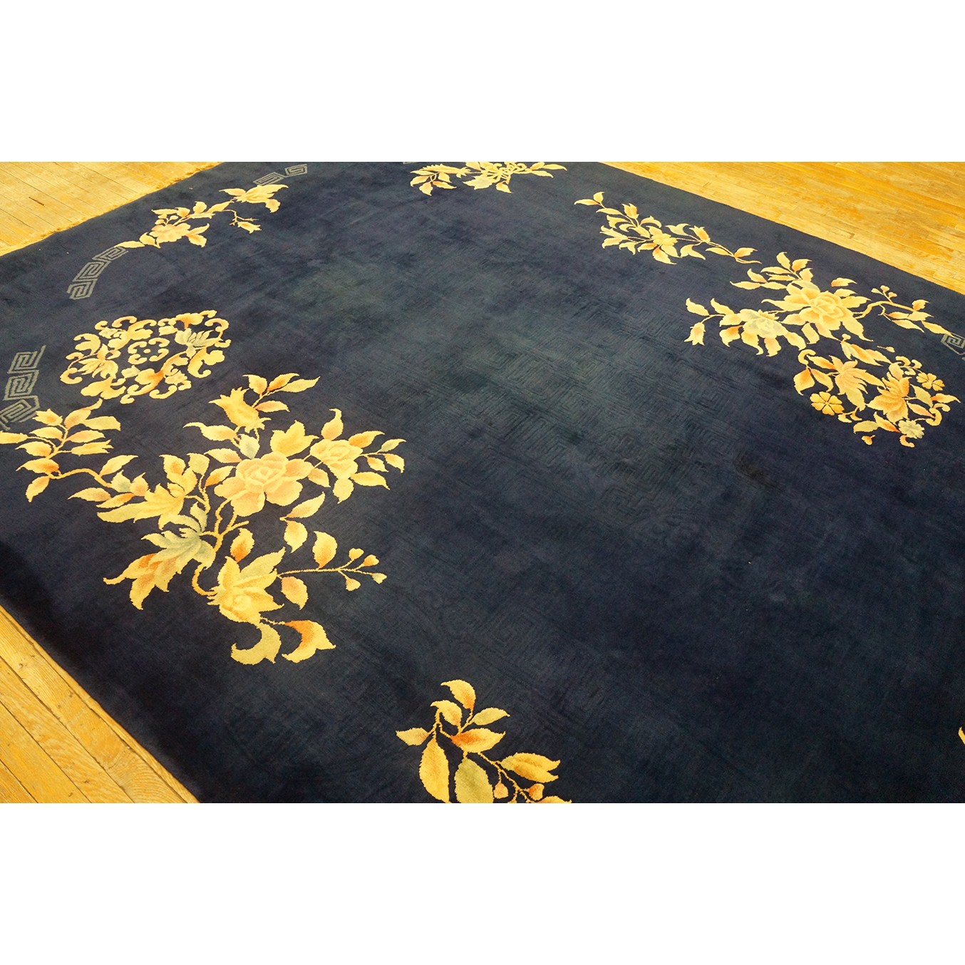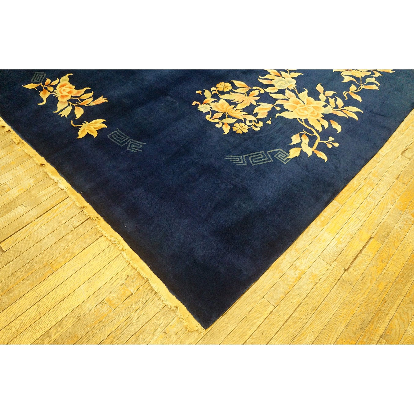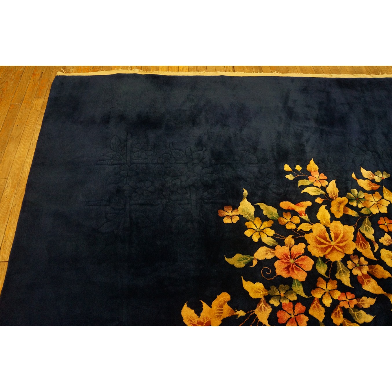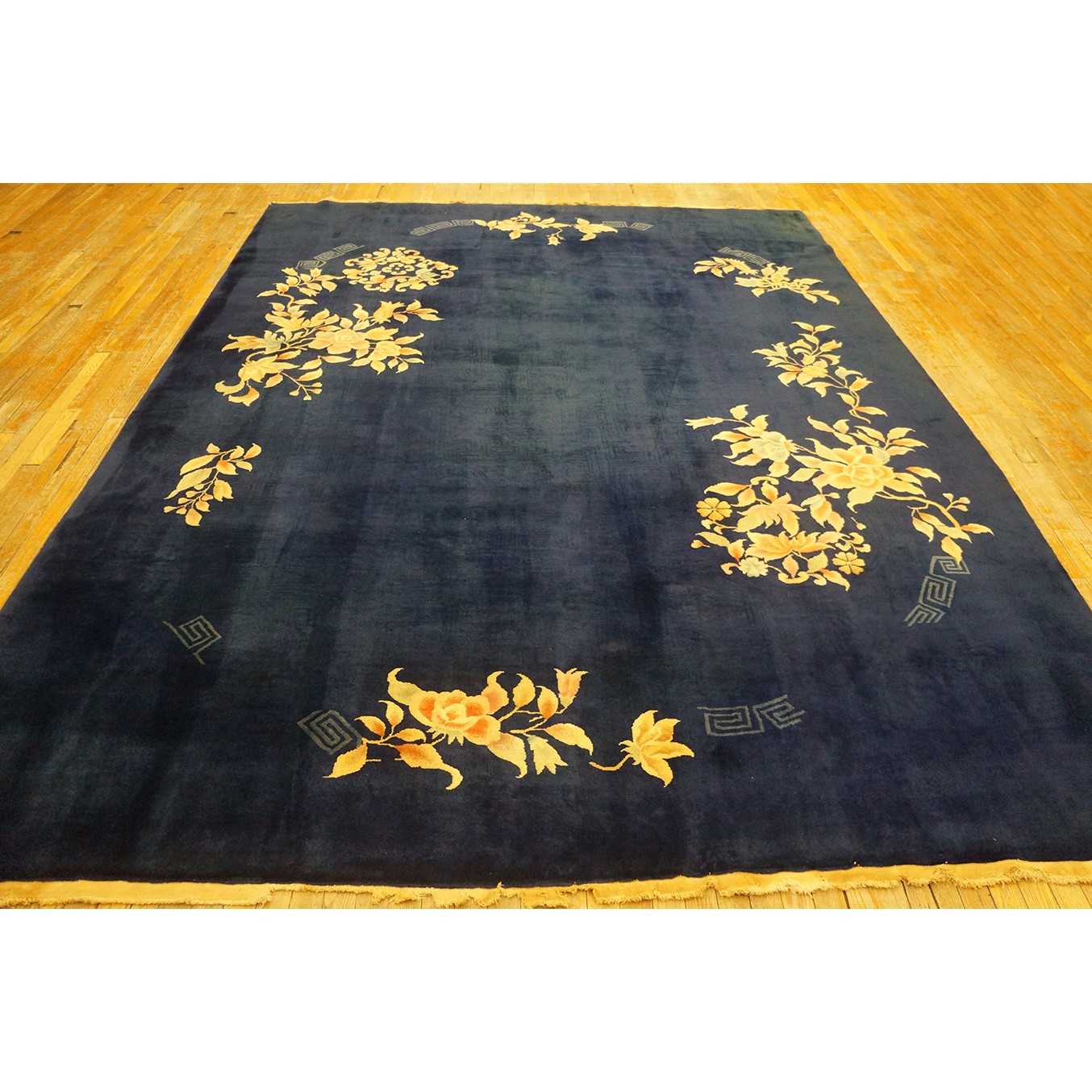 DescriptionChineseCarpets made in China proper. See entries Ningshia, Peking, Art Deco. Chinese - Art DecoAs the name implies, pieces woven between the wars for the Western market by mostly American owned firms especially Nichols and Fette, in thick heavy weaves using strong colors, asymmetric patterns and downplaying the Chinese-ness of the carpet. Nichols rugs are more strong toned than the pastel Fette. Most were woven in the coastal port city of Tientsin. Other lesser known workshops were also active. Some pieces are ultra-geometric and haute-Deco moderne in character: these are very rare. More frequent are pieces with bits of Chinese ornament: vases or other precious objects, paeonies, vines, fences, etc. Most common is the 9 x 12 size, in colors never found in mainstream Chinese rugs: backgrounds in black, mauve, purple, hot pink, orange, olive, employing the best synthetic chrome dyes of the period. Prices are still reasonable and carpets in top condition are available. | |