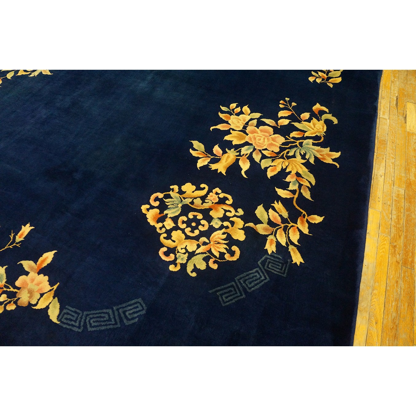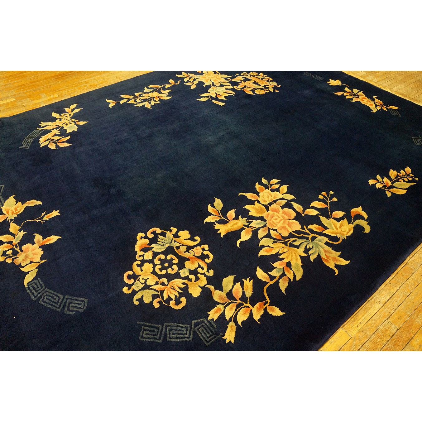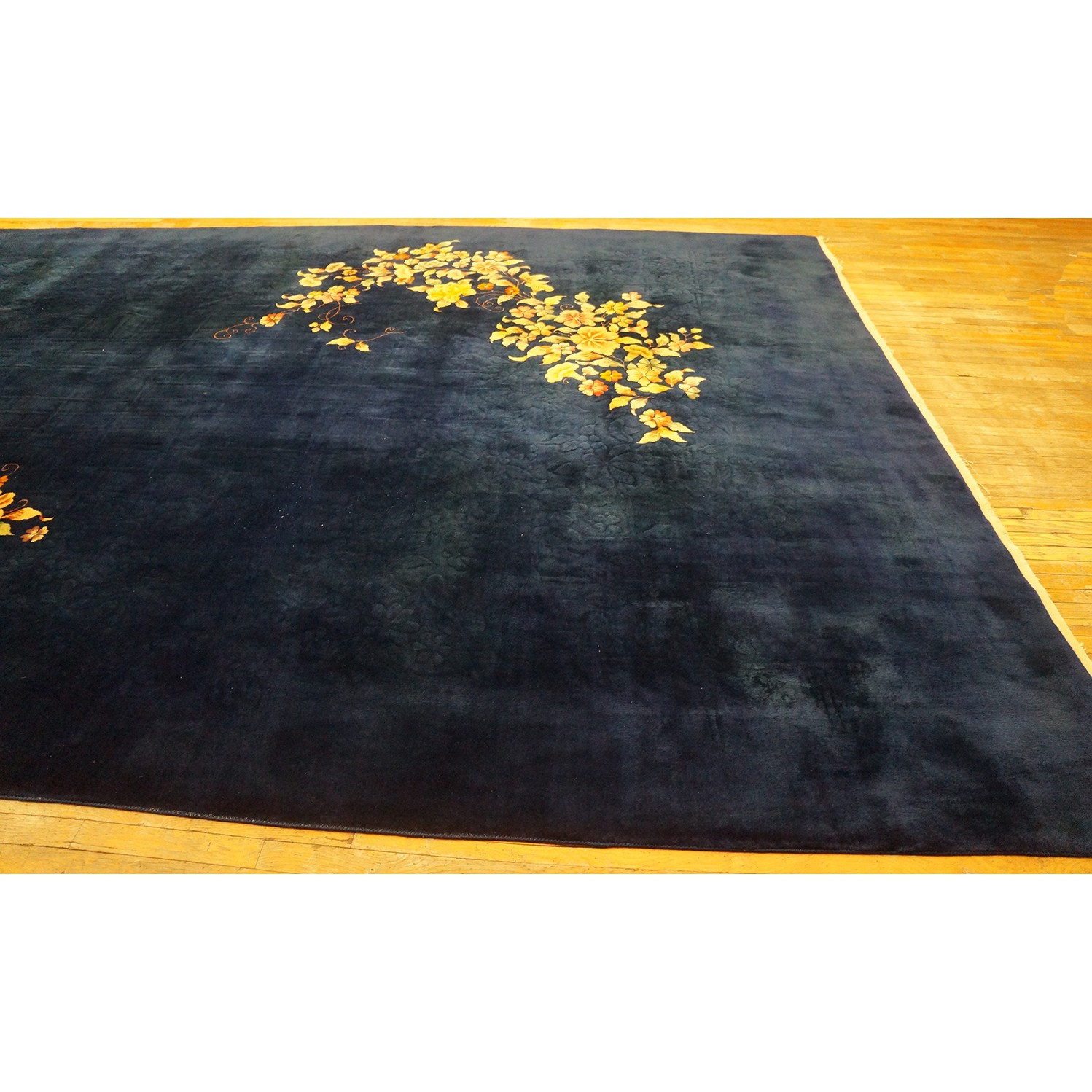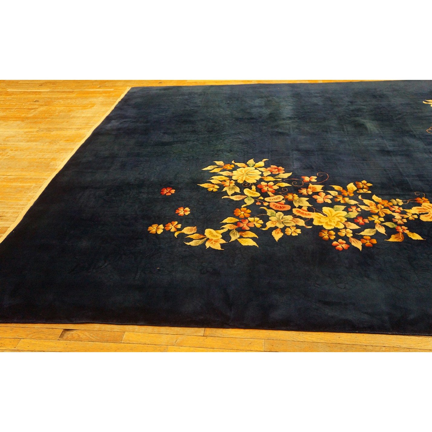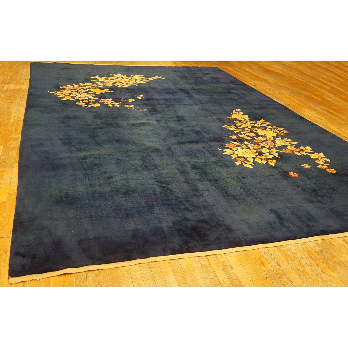 DescriptionChineseCarpets made in China proper. See entries Ningshia, Peking, Art Deco. Chinese - Art DecoAs the name implies, pieces woven between the wars for the Western market by mostly American owned firms especially Nichols and Fette, in thick heavy weaves using strong colors, asymmetric patterns and downplaying the Chinese-ness of the carpet. Nichols rugs are more strong toned than the pastel Fette. Most were woven in the coastal port city of Tientsin. Other lesser known workshops were also active. Some pieces are ultra-geometric and haute-Deco moderne in character: these are very rare. More frequent are pieces with bits of Chinese ornament: vases or other precious objects, paeonies, vines, fences, etc. Most common is the 9 x 12 size, in colors never found in mainstream Chinese rugs: backgrounds in black, mauve, purple, hot pink, orange, olive, employing the best synthetic chrome dyes of the period. Prices are still reasonable and carpets in top condition are available. | |