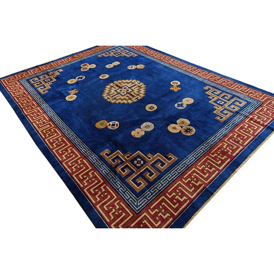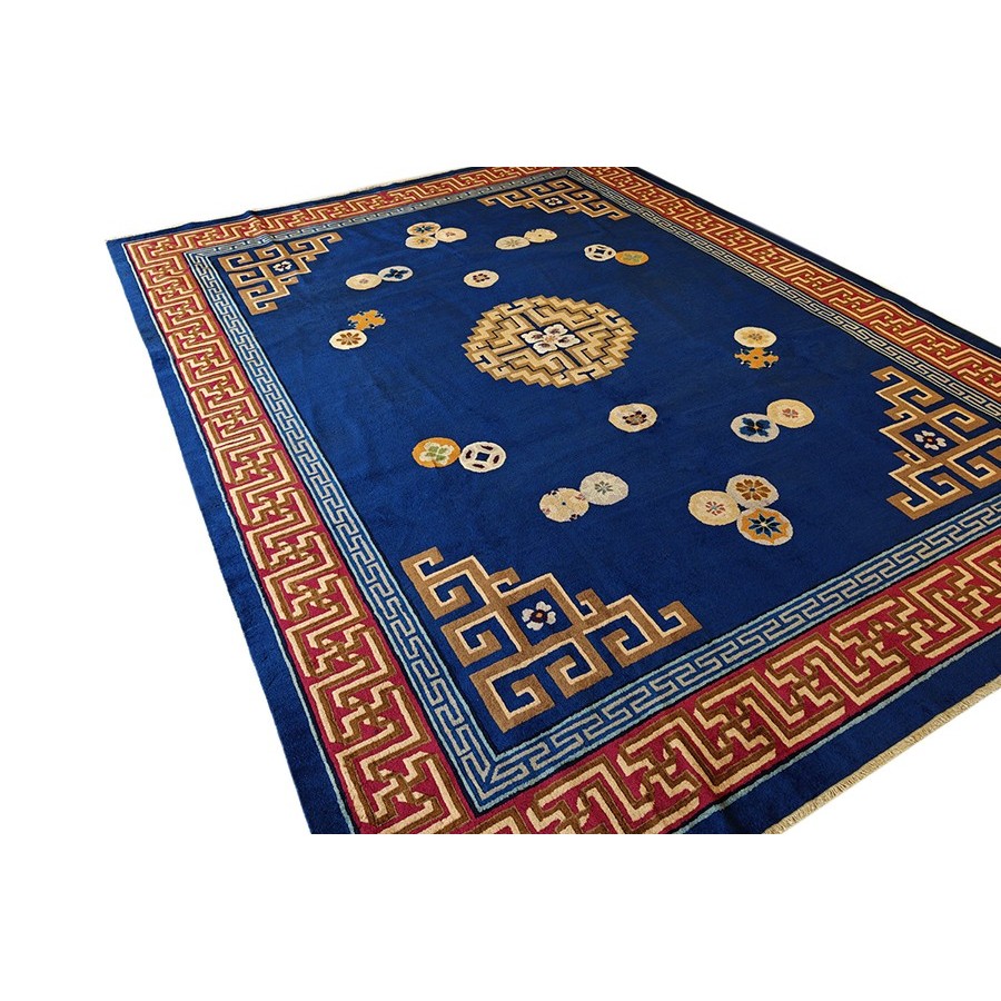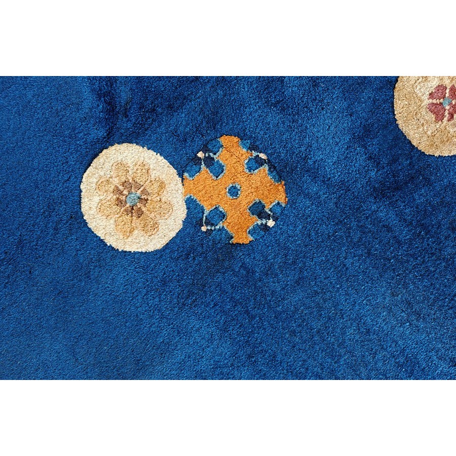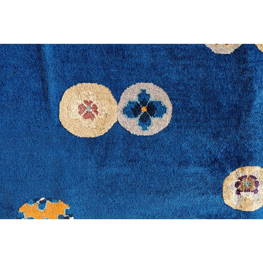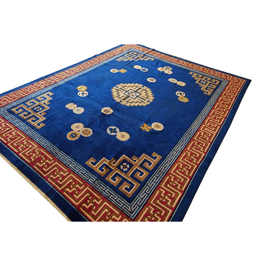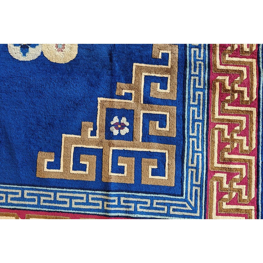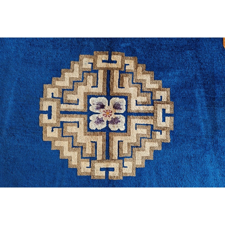 DescriptionChineseCarpets made in China proper. See entries Ningshia, Peking, Art Deco. Chinese - Art DecoAs the name implies, pieces woven between the wars for the Western market by mostly American owned firms especially Nichols and Fette, in thick heavy weaves using strong colors, asymmetric patterns and downplaying the Chinese-ness of the carpet. Nichols rugs are more strong toned than the pastel Fette. Most were woven in the coastal port city of Tientsin. Other lesser known workshops were also active. Some pieces are ultra-geometric and haute-Deco moderne in character: these are very rare. More frequent are pieces with bits of Chinese ornament: vases or other precious objects, paeonies, vines, fences, etc. Most common is the 9 x 12 size, in colors never found in mainstream Chinese rugs: backgrounds in black, mauve, purple, hot pink, orange, olive, employing the best synthetic chrome dyes of the period. Prices are still reasonable and carpets in top condition are available. | |