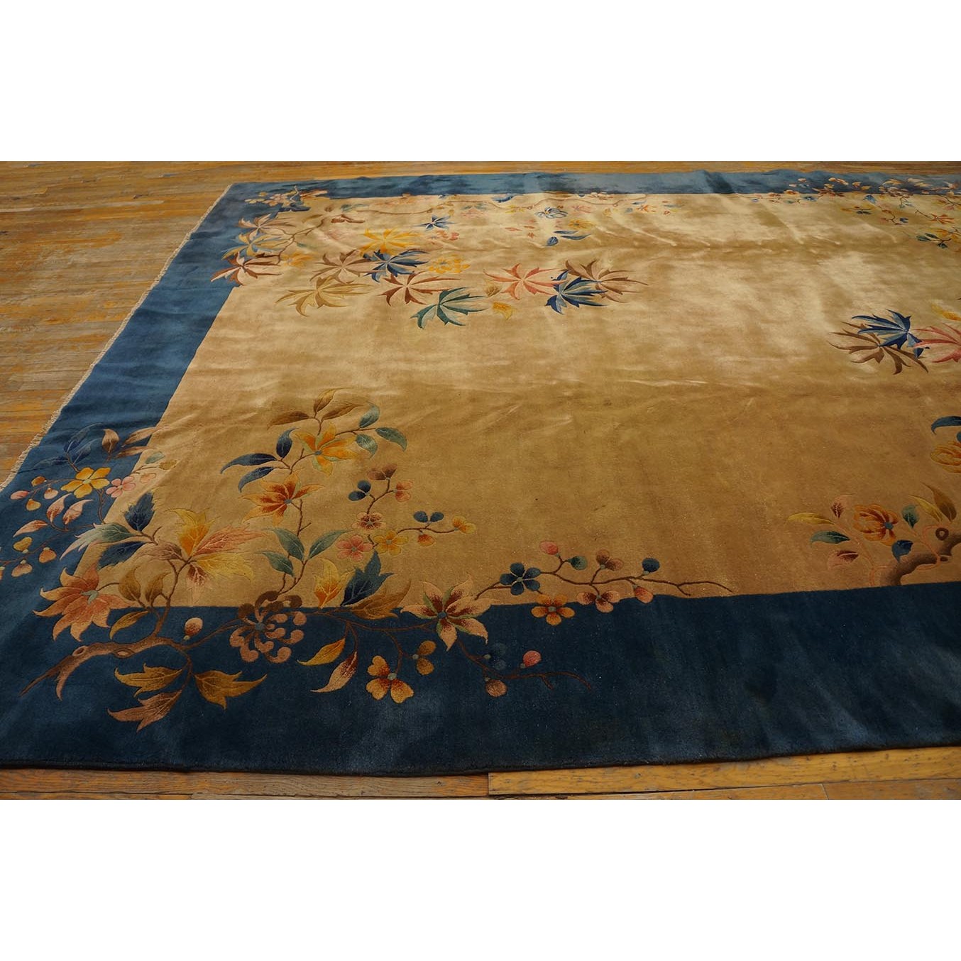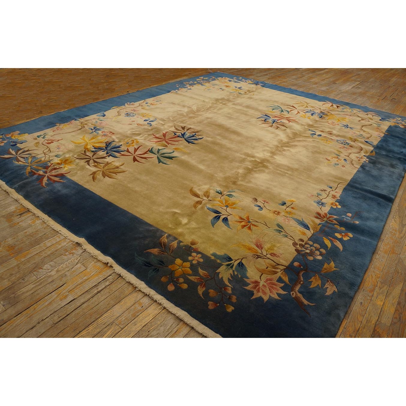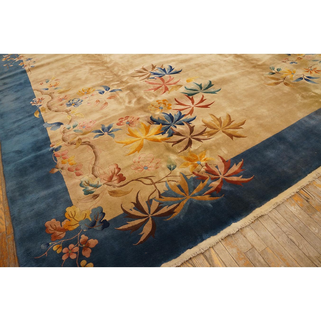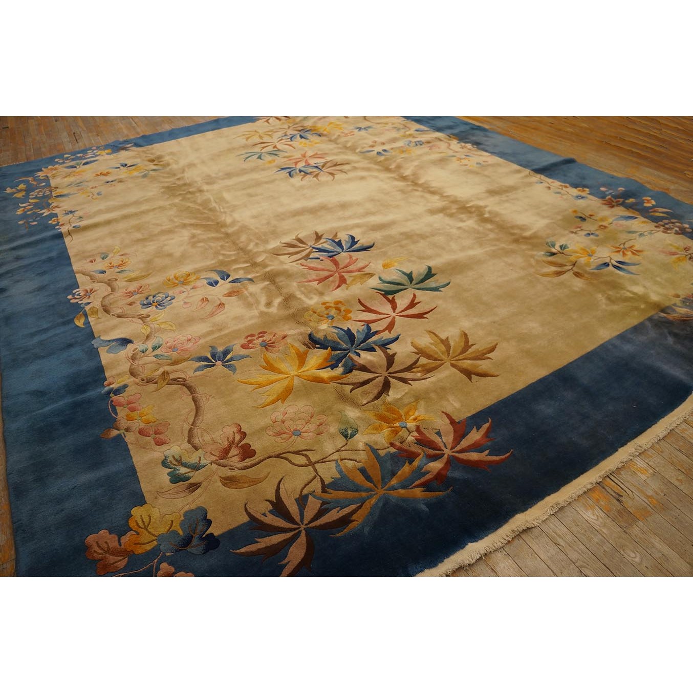 DescriptionChineseCarpets made in China proper. See entries Ningshia, Peking, Art Deco. Chinese - Art DecoAs the name implies, pieces woven between the wars for the Western market by mostly American owned firms especially Nichols and Fette, in thick heavy weaves using strong colors, asymmetric patterns and downplaying the Chinese-ness of the carpet. Nichols rugs are more strong toned than the pastel Fette. Most were woven in the coastal port city of Tientsin. Other lesser known workshops were also active. Some pieces are ultra-geometric and haute-Deco moderne in character: these are very rare. More frequent are pieces with bits of Chinese ornament: vases or other precious objects, paeonies, vines, fences, etc. Most common is the 9 x 12 size, in colors never found in mainstream Chinese rugs: backgrounds in black, mauve, purple, hot pink, orange, olive, employing the best synthetic chrome dyes of the period. Prices are still reasonable and carpets in top condition are available. | |