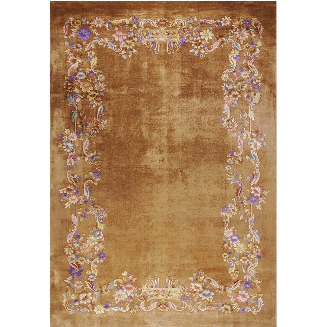 DescriptionChineseCarpets made in China proper. See entries Ningshia, Peking, Art Deco. Chinese - Art DecoAs the name implies, pieces woven between the wars for the Western market by mostly American owned firms especially Nichols and Fette, in thick heavy weaves using strong colors, asymmetric patterns and downplaying the Chinese-ness of the carpet. Nichols rugs are more strong toned than the pastel Fette. Most were woven in the coastal port city of Tientsin. Other lesser known workshops were also active. Some pieces are ultra-geometric and haute-Deco moderne in character: these are very rare. More frequent are pieces with bits of Chinese ornament: vases or other precious objects, paeonies, vines, fences, etc. Most common is the 9 x 12 size, in colors never found in mainstream Chinese rugs: backgrounds in black, mauve, purple, hot pink, orange, olive, employing the best synthetic chrome dyes of the period. Prices are still reasonable and carpets in top condition are available. | |
