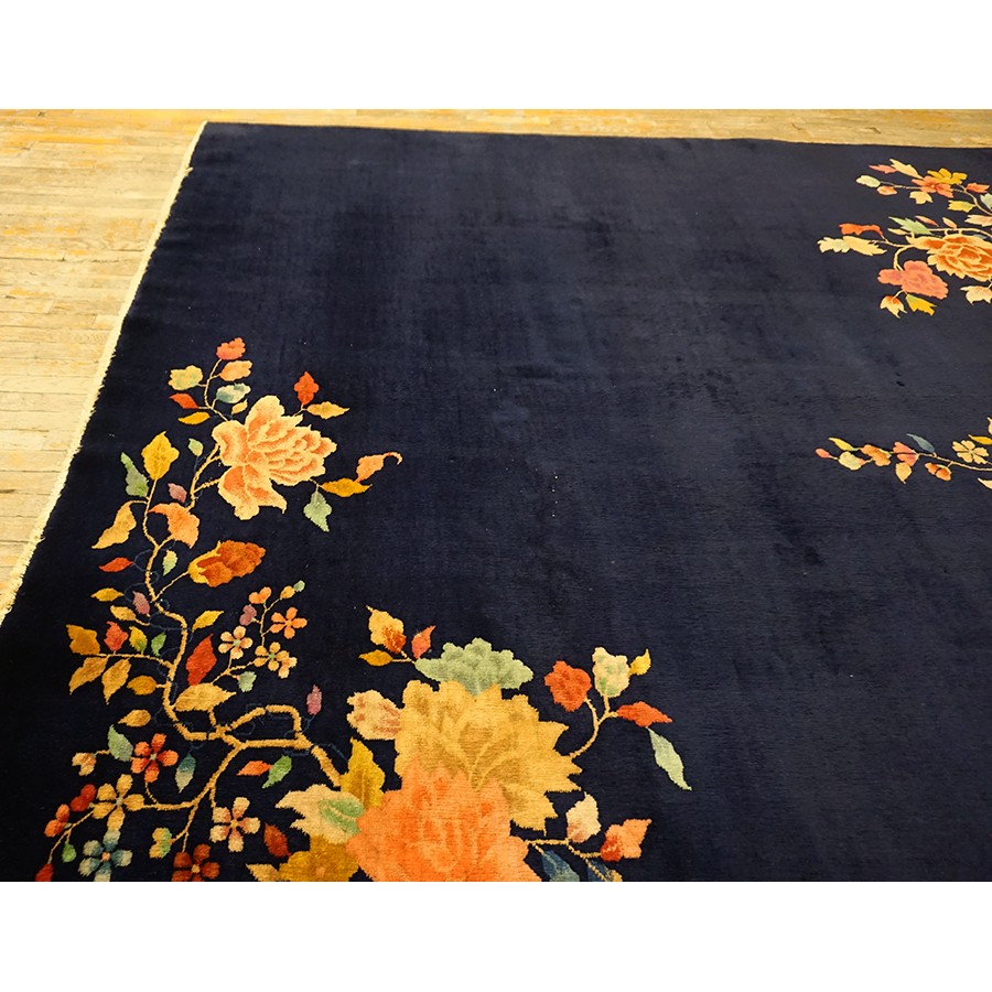 DescriptionChineseCarpets made in China proper. See entries Ningshia, Peking, Art Deco. Chinese - Art DecoAs the name implies, pieces woven between the wars for the Western market by mostly American owned firms especially Nichols and Fette, in thick heavy weaves using strong colors, asymmetric patterns and downplaying the Chinese-ness of the carpet. Nichols rugs are more strong toned than the pastel Fette. Most were woven in the coastal port city of Tientsin. Other lesser known workshops were also active. Some pieces are ultra-geometric and haute-Deco moderne in character: these are very rare. More frequent are pieces with bits of Chinese ornament: vases or other precious objects, paeonies, vines, fences, etc. Most common is the 9 x 12 size, in colors never found in mainstream Chinese rugs: backgrounds in black, mauve, purple, hot pink, orange, olive, employing the best synthetic chrome dyes of the period. Prices are still reasonable and carpets in top condition are available. | |