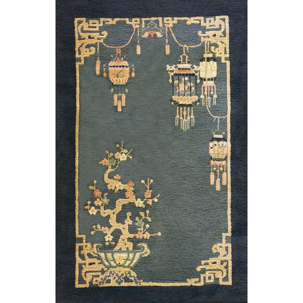 DescriptionChineseCarpets made in China proper. See entries Ningshia, Peking, Art Deco. Chinese - Art DecoAs the name implies, pieces woven between the wars for the Western market by mostly American owned firms especially Nichols and Fette, in thick heavy weaves using strong colors, asymmetric patterns and downplaying the Chinese-ness of the carpet. Nichols rugs are more strong toned than the pastel Fette. Most were woven in the coastal port city of Tientsin. Other lesser known workshops were also active. Some pieces are ultra-geometric and haute-Deco moderne in character: these are very rare. More frequent are pieces with bits of Chinese ornament: vases or other precious objects, paeonies, vines, fences, etc. Most common is the 9 x 12 size, in colors never found in mainstream Chinese rugs: backgrounds in black, mauve, purple, hot pink, orange, olive, employing the best synthetic chrome dyes of the period. Prices are still reasonable and carpets in top condition are available. | |