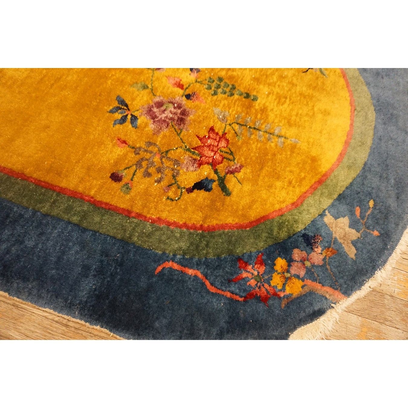 DescriptionChineseCarpets made in China proper. See entries Ningshia, Peking, Art Deco. Chinese - Art DecoAs the name implies, pieces woven between the wars for the Western market by mostly American owned firms especially Nichols and Fette, in thick heavy weaves using strong colors, asymmetric patterns and downplaying the Chinese-ness of the carpet. Nichols rugs are more strong toned than the pastel Fette. Most were woven in the coastal port city of Tientsin. Other lesser known workshops were also active. Some pieces are ultra-geometric and haute-Deco moderne in character: these are very rare. More frequent are pieces with bits of Chinese ornament: vases or other precious objects, paeonies, vines, fences, etc. Most common is the 9 x 12 size, in colors never found in mainstream Chinese rugs: backgrounds in black, mauve, purple, hot pink, orange, olive, employing the best synthetic chrome dyes of the period. Prices are still reasonable and carpets in top condition are available. | |