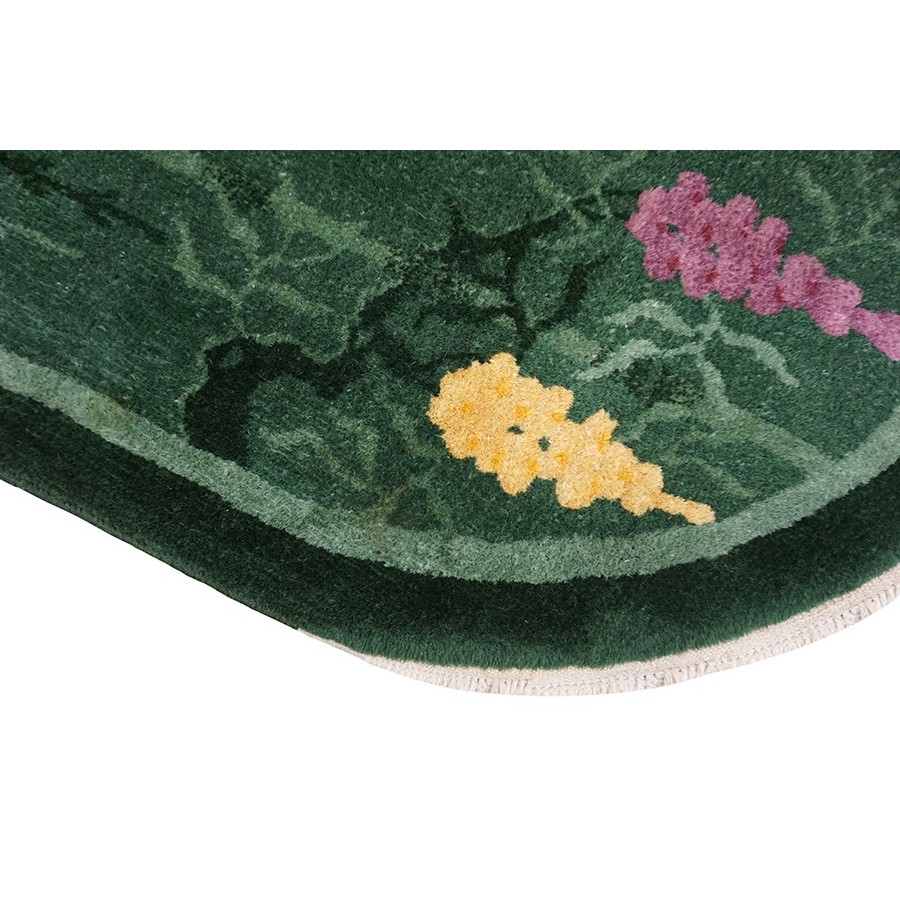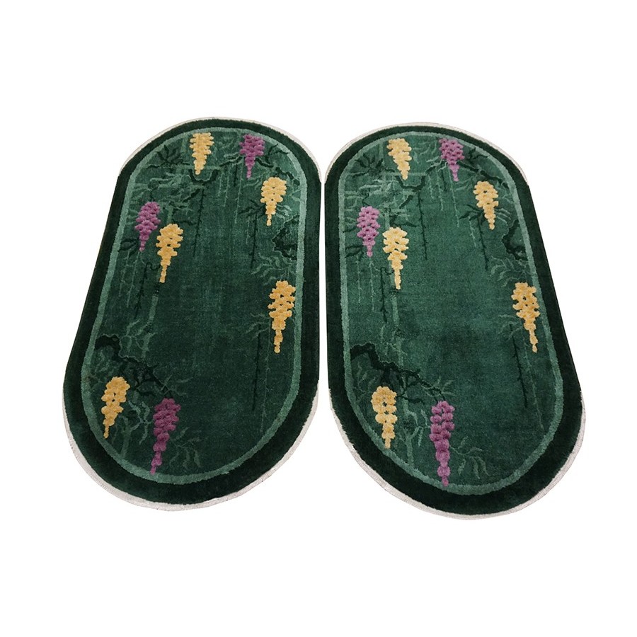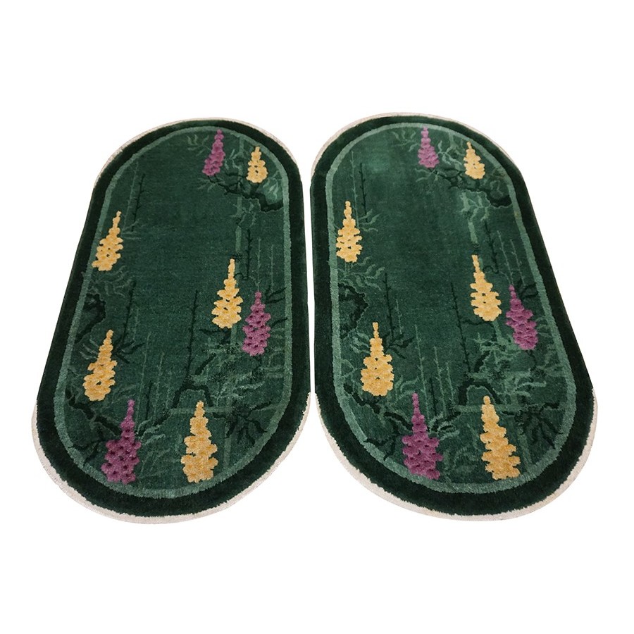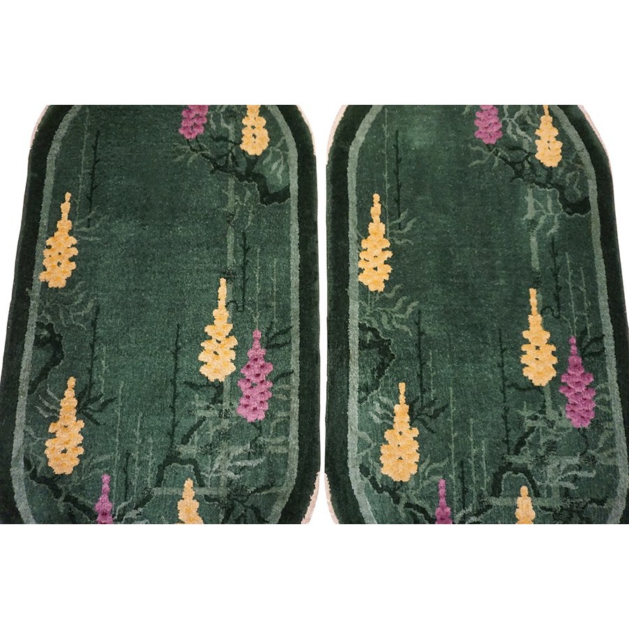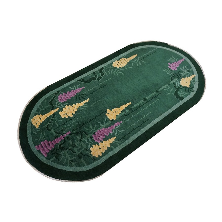 DescriptionChineseCarpets made in China proper. See entries Ningshia, Peking, Art Deco. Chinese - Art DecoAs the name implies, pieces woven between the wars for the Western market by mostly American owned firms especially Nichols and Fette, in thick heavy weaves using strong colors, asymmetric patterns and downplaying the Chinese-ness of the carpet. Nichols rugs are more strong toned than the pastel Fette. Most were woven in the coastal port city of Tientsin. Other lesser known workshops were also active. Some pieces are ultra-geometric and haute-Deco moderne in character: these are very rare. More frequent are pieces with bits of Chinese ornament: vases or other precious objects, paeonies, vines, fences, etc. Most common is the 9 x 12 size, in colors never found in mainstream Chinese rugs: backgrounds in black, mauve, purple, hot pink, orange, olive, employing the best synthetic chrome dyes of the period. Prices are still reasonable and carpets in top condition are available. | |