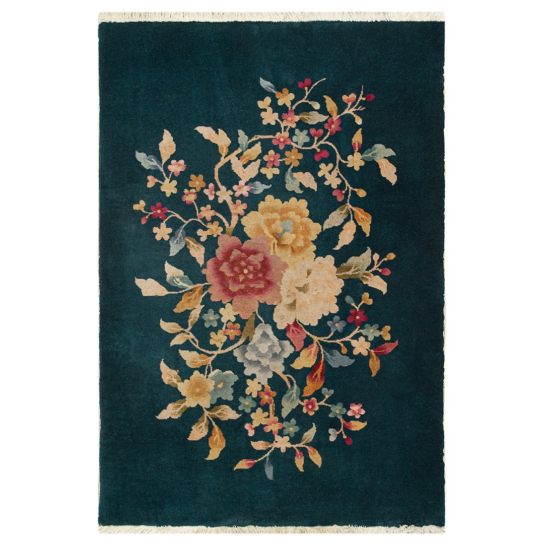 DescriptionChineseCarpets made in China proper. See entries Ningshia, Peking, Art Deco. Chinese - Art DecoAs the name implies, pieces woven between the wars for the Western market by mostly American owned firms especially Nichols and Fette, in thick heavy weaves using strong colors, asymmetric patterns and downplaying the Chinese-ness of the carpet. Nichols rugs are more strong toned than the pastel Fette. Most were woven in the coastal port city of Tientsin. Other lesser known workshops were also active. Some pieces are ultra-geometric and haute-Deco moderne in character: these are very rare. More frequent are pieces with bits of Chinese ornament: vases or other precious objects, paeonies, vines, fences, etc. Most common is the 9 x 12 size, in colors never found in mainstream Chinese rugs: backgrounds in black, mauve, purple, hot pink, orange, olive, employing the best synthetic chrome dyes of the period. Prices are still reasonable and carpets in top condition are available. | |
