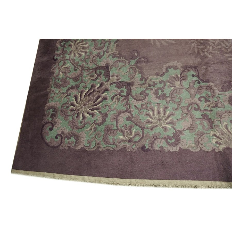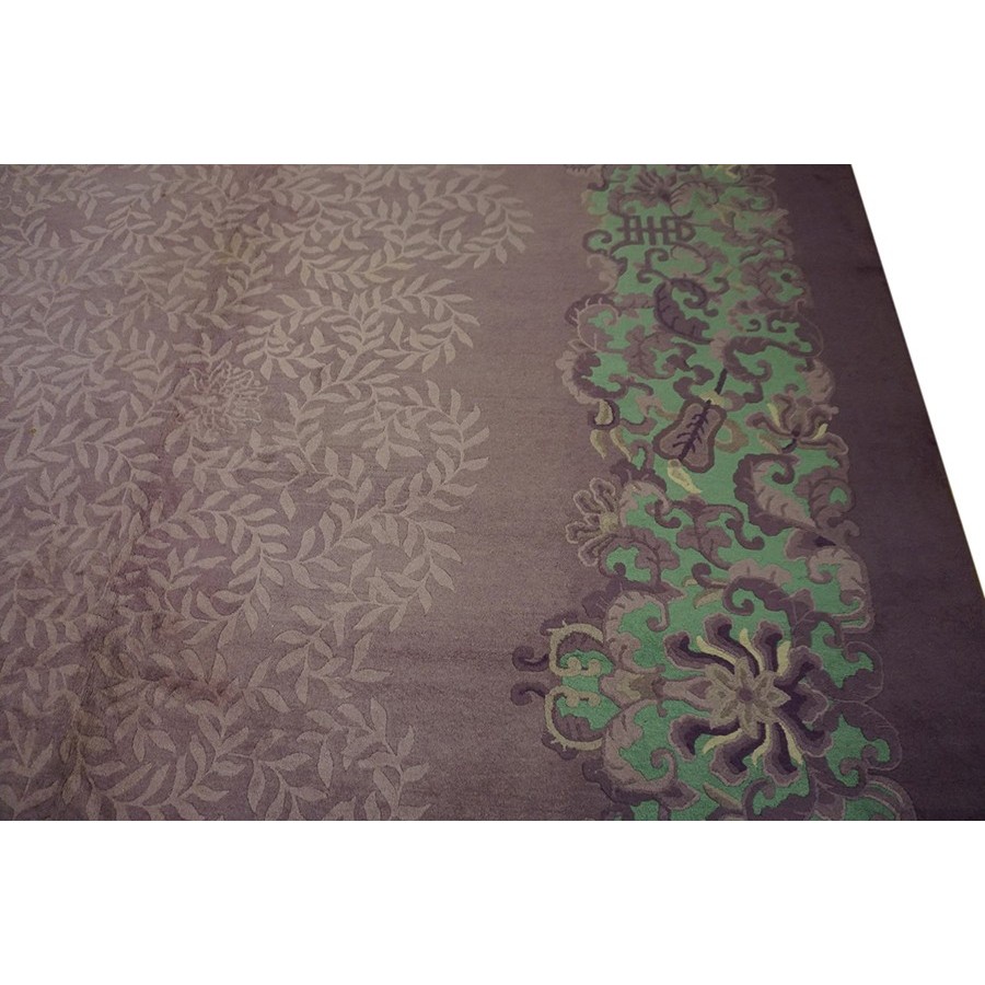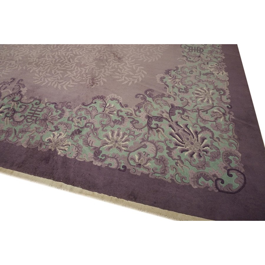 DescriptionChineseCarpets made in China proper. See entries Ningshia, Peking, Art Deco. Chinese - Art DecoAs the name implies, pieces woven between the wars for the Western market by mostly American owned firms especially Nichols and Fette, in thick heavy weaves using strong colors, asymmetric patterns and downplaying the Chinese-ness of the carpet. Nichols rugs are more strong toned than the pastel Fette. Most were woven in the coastal port city of Tientsin. Other lesser known workshops were also active. Some pieces are ultra-geometric and haute-Deco moderne in character: these are very rare. More frequent are pieces with bits of Chinese ornament: vases or other precious objects, paeonies, vines, fences, etc. Most common is the 9 x 12 size, in colors never found in mainstream Chinese rugs: backgrounds in black, mauve, purple, hot pink, orange, olive, employing the best synthetic chrome dyes of the period. Prices are still reasonable and carpets in top condition are available. | |