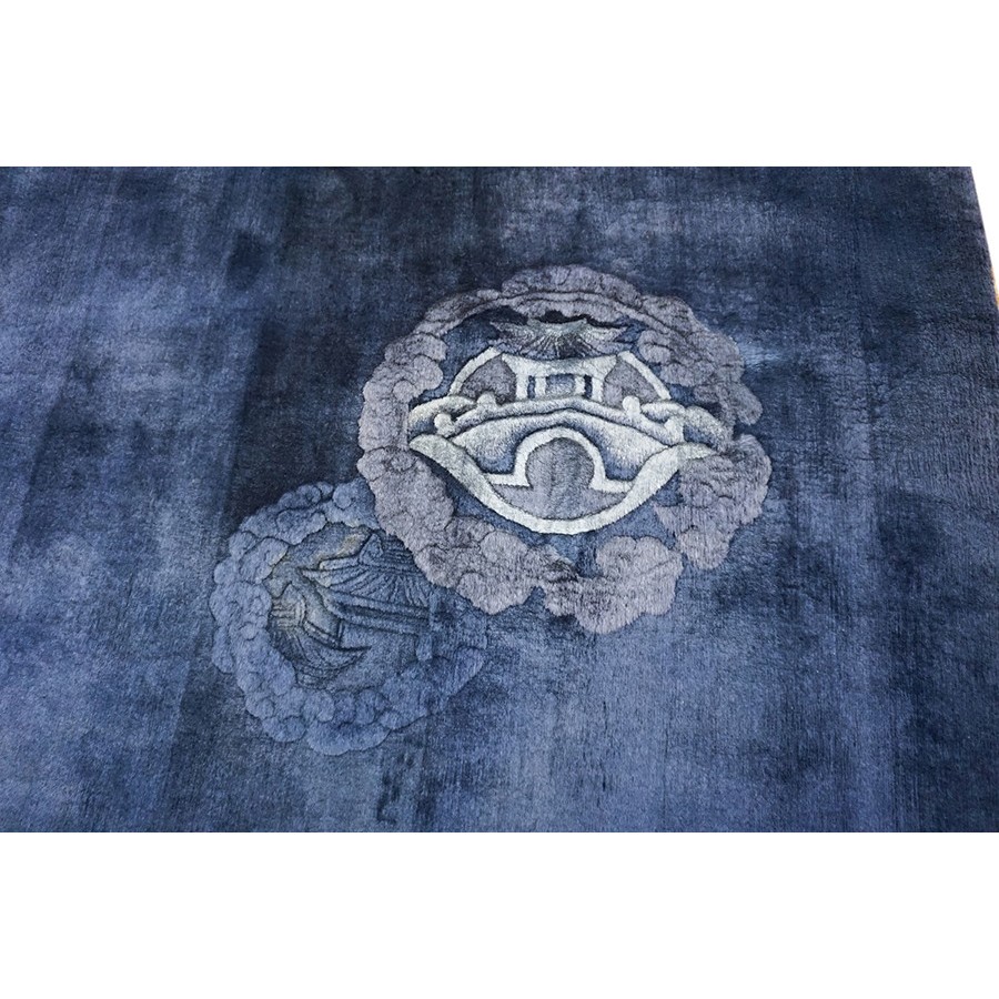 DescriptionChineseCarpets made in China proper. See entries Ningshia, Peking, Art Deco. Chinese - Art DecoAs the name implies, pieces woven between the wars for the Western market by mostly American owned firms especially Nichols and Fette, in thick heavy weaves using strong colors, asymmetric patterns and downplaying the Chinese-ness of the carpet. Nichols rugs are more strong toned than the pastel Fette. Most were woven in the coastal port city of Tientsin. Other lesser known workshops were also active. Some pieces are ultra-geometric and haute-Deco moderne in character: these are very rare. More frequent are pieces with bits of Chinese ornament: vases or other precious objects, paeonies, vines, fences, etc. Most common is the 9 x 12 size, in colors never found in mainstream Chinese rugs: backgrounds in black, mauve, purple, hot pink, orange, olive, employing the best synthetic chrome dyes of the period. Prices are still reasonable and carpets in top condition are available. | |