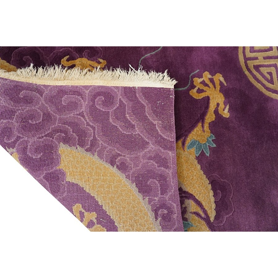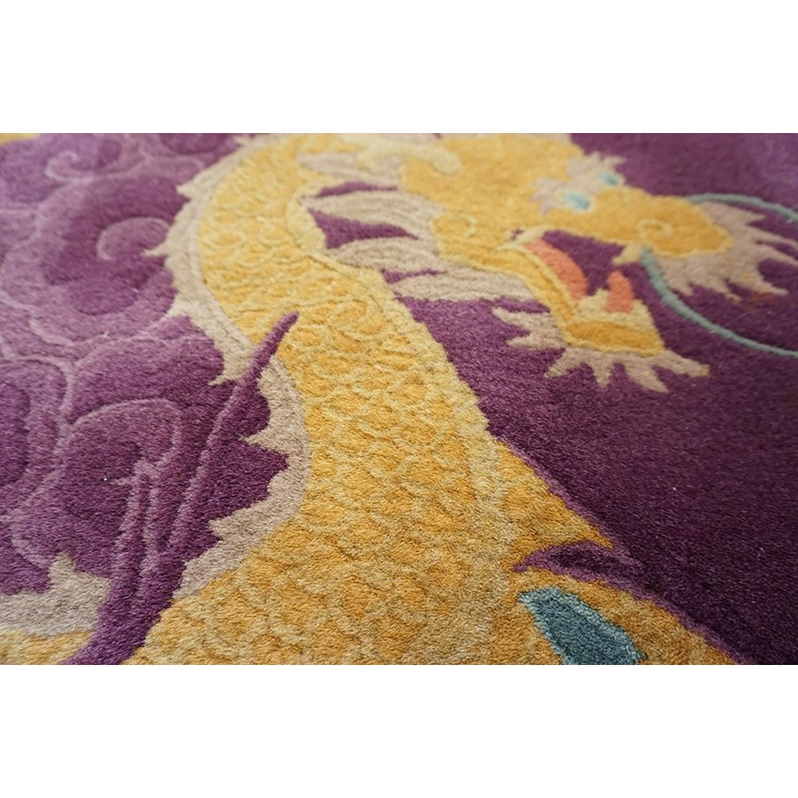 DescriptionChineseCarpets made in China proper. See entries Ningshia, Peking, Art Deco. Chinese - Art DecoAs the name implies, pieces woven between the wars for the Western market by mostly American owned firms especially Nichols and Fette, in thick heavy weaves using strong colors, asymmetric patterns and downplaying the Chinese-ness of the carpet. Nichols rugs are more strong toned than the pastel Fette. Most were woven in the coastal port city of Tientsin. Other lesser known workshops were also active. Some pieces are ultra-geometric and haute-Deco moderne in character: these are very rare. More frequent are pieces with bits of Chinese ornament: vases or other precious objects, paeonies, vines, fences, etc. Most common is the 9 x 12 size, in colors never found in mainstream Chinese rugs: backgrounds in black, mauve, purple, hot pink, orange, olive, employing the best synthetic chrome dyes of the period. Prices are still reasonable and carpets in top condition are available. | |