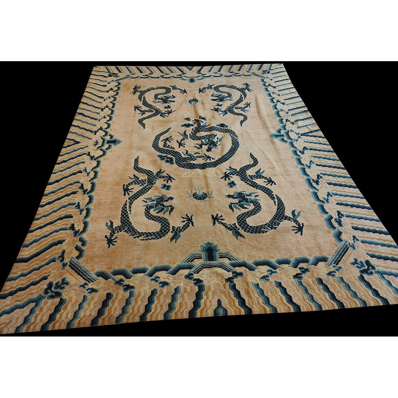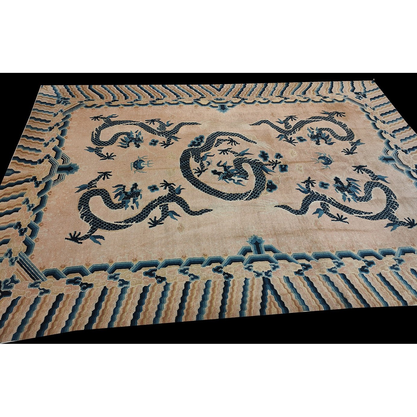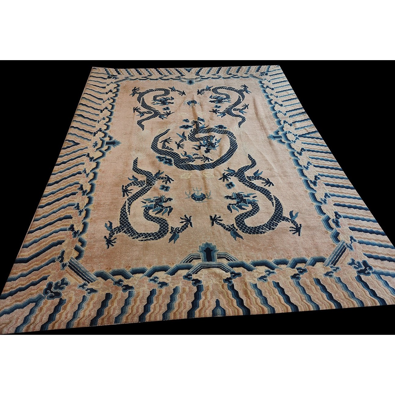 Early 20th Century W. Chinese Ningxia Dragon Carpet