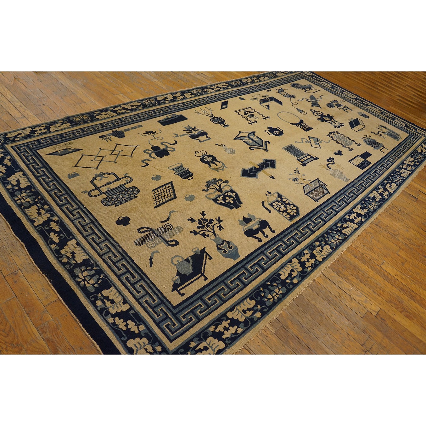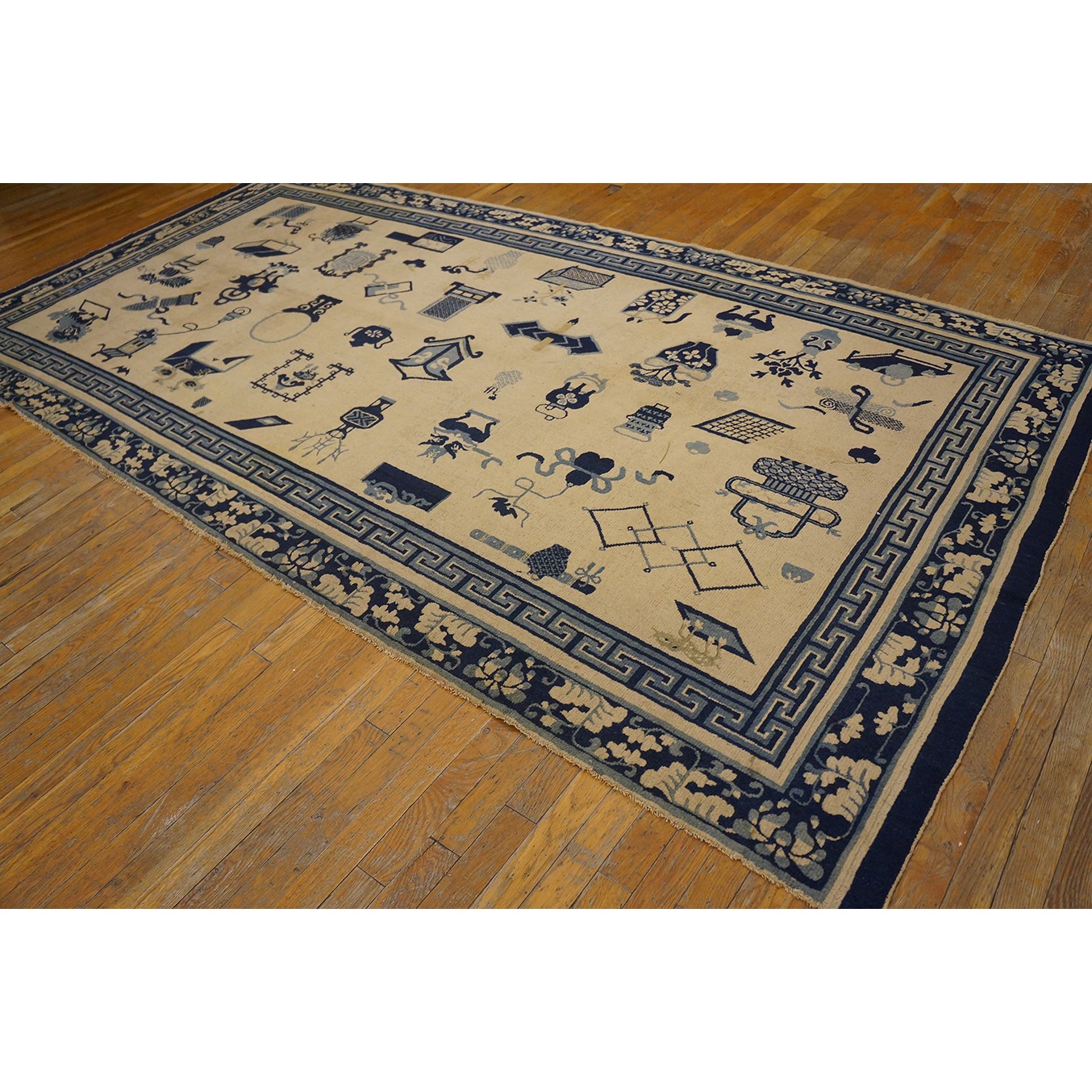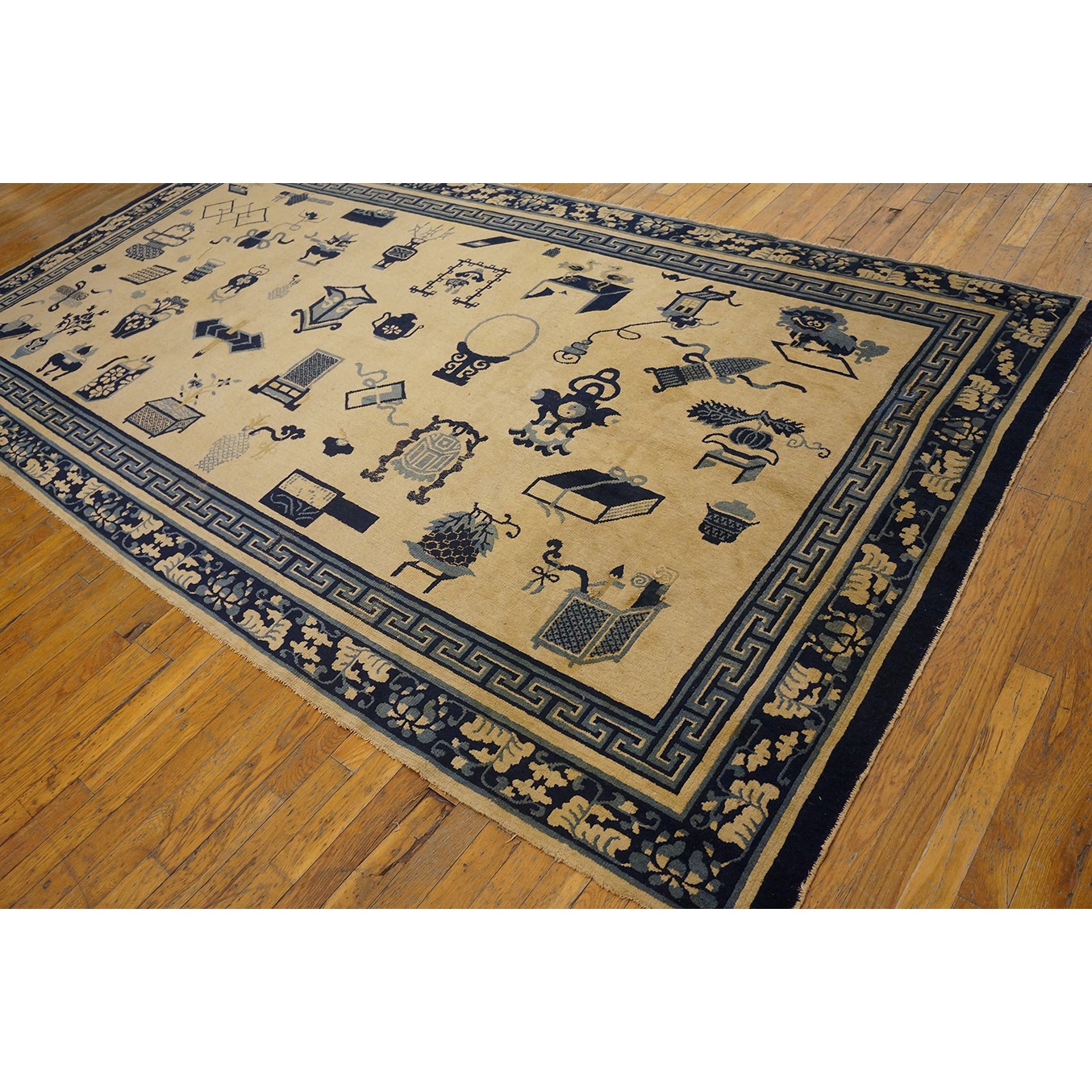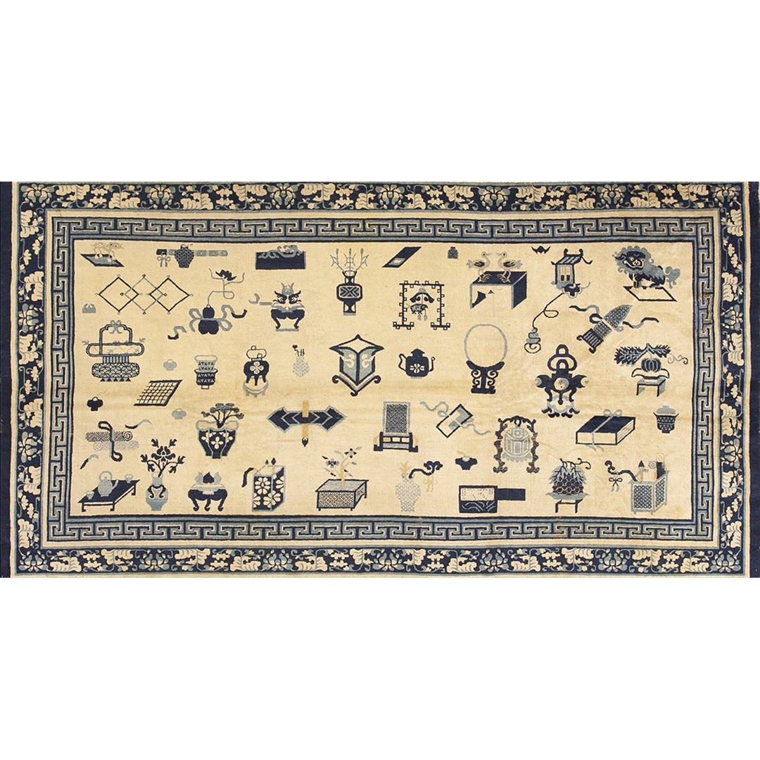 Mid 19th Century Chinese Ningxia Carpet with 100 Antiques Pattern