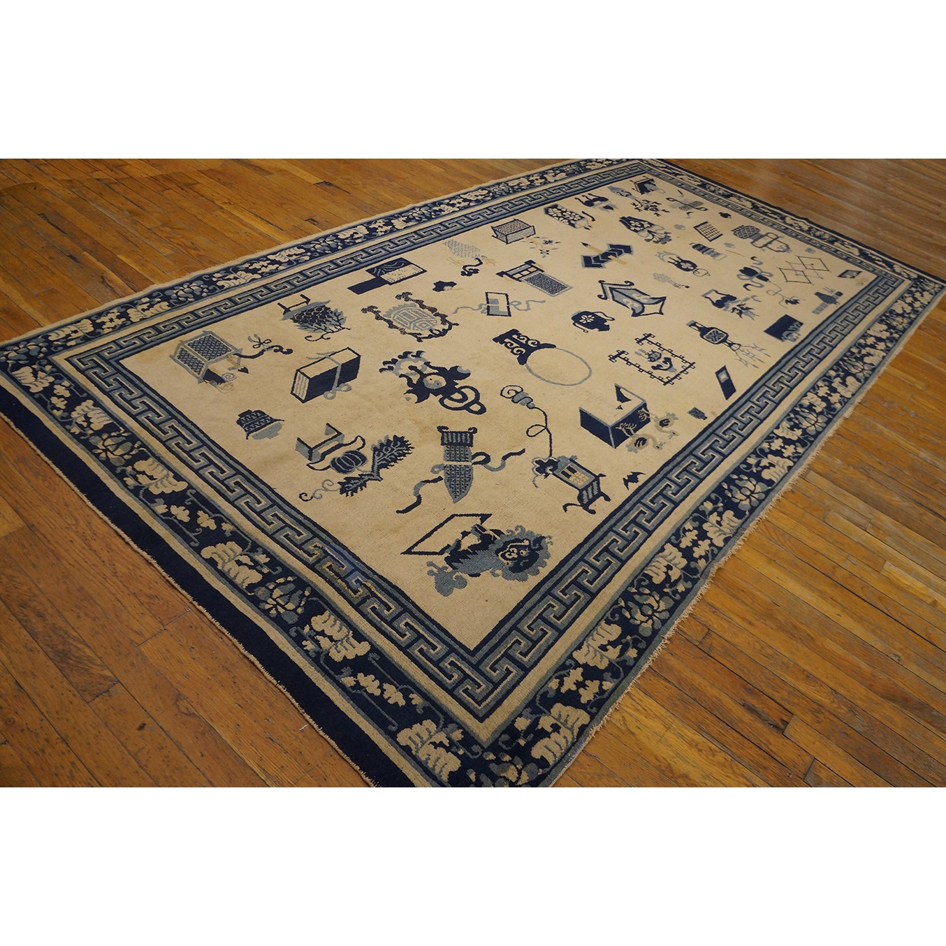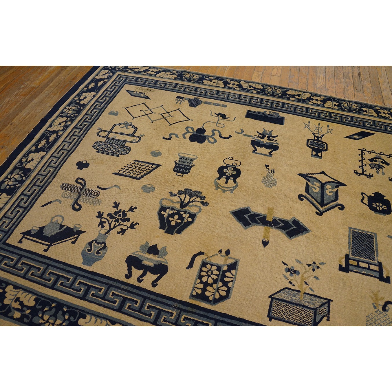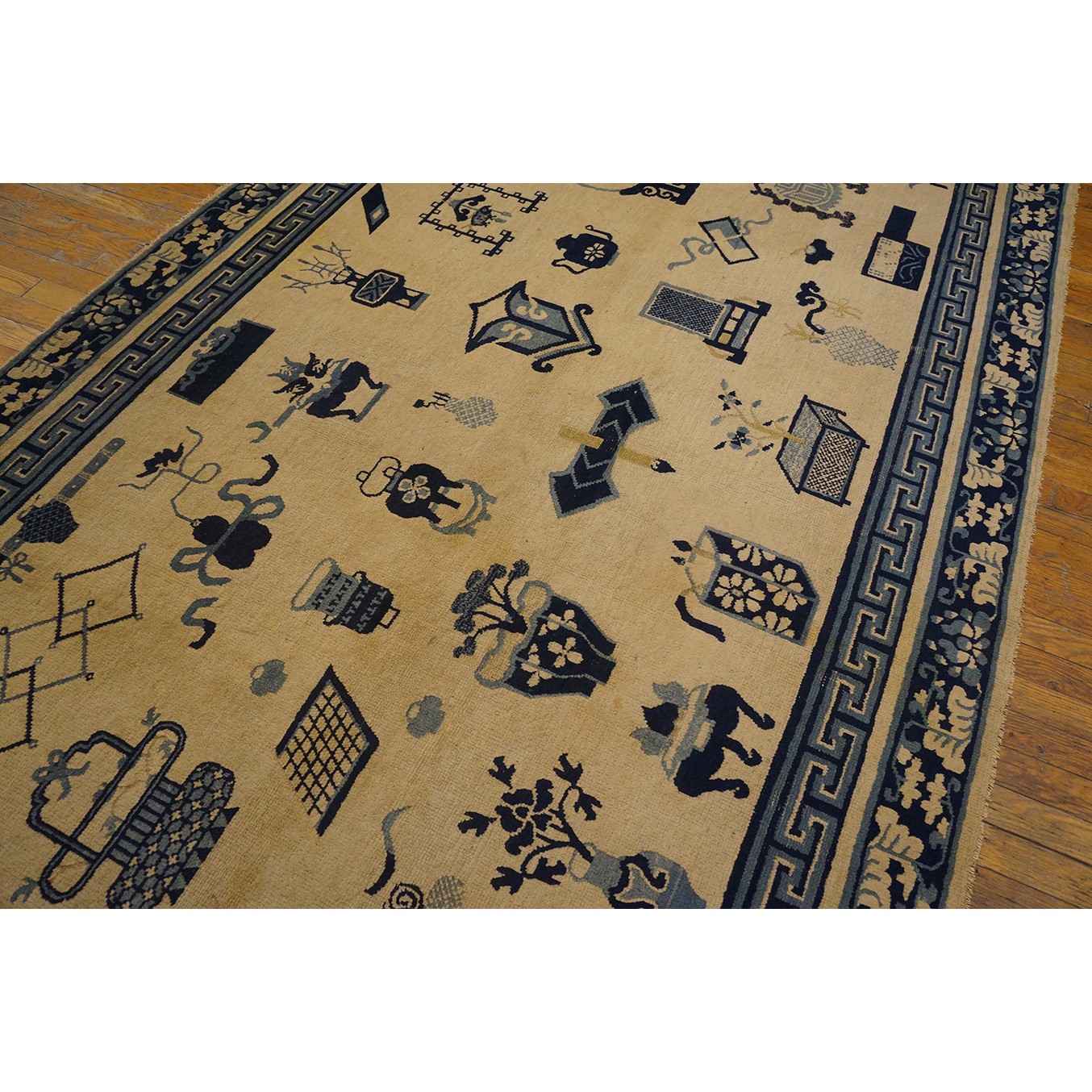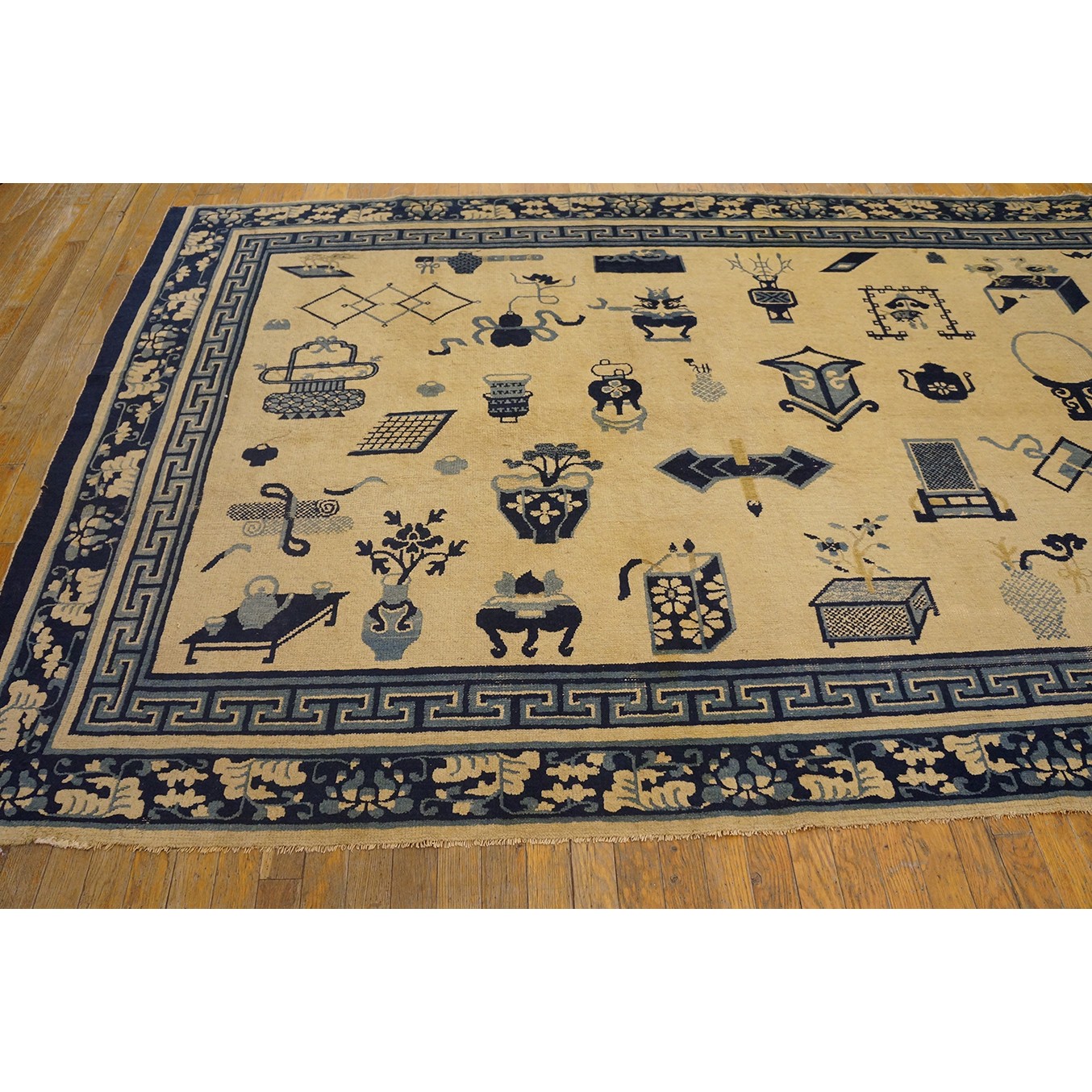 Mid 19th Century Chinese Ningxia Carpet with 100 Antiques Pattern