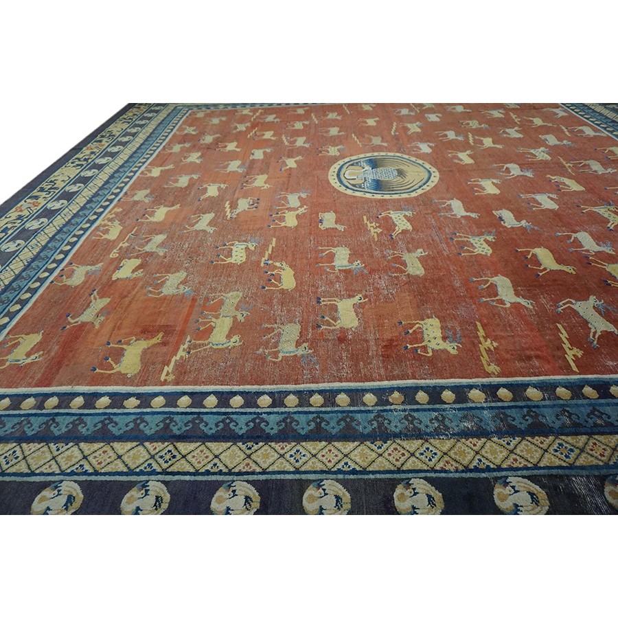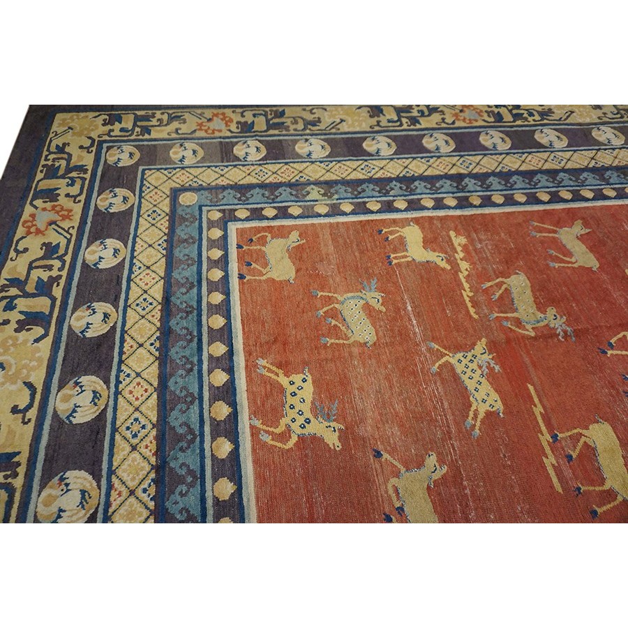 Mid 19th Century Chinese Ningxia Carpet with Hundred Deer Pattern