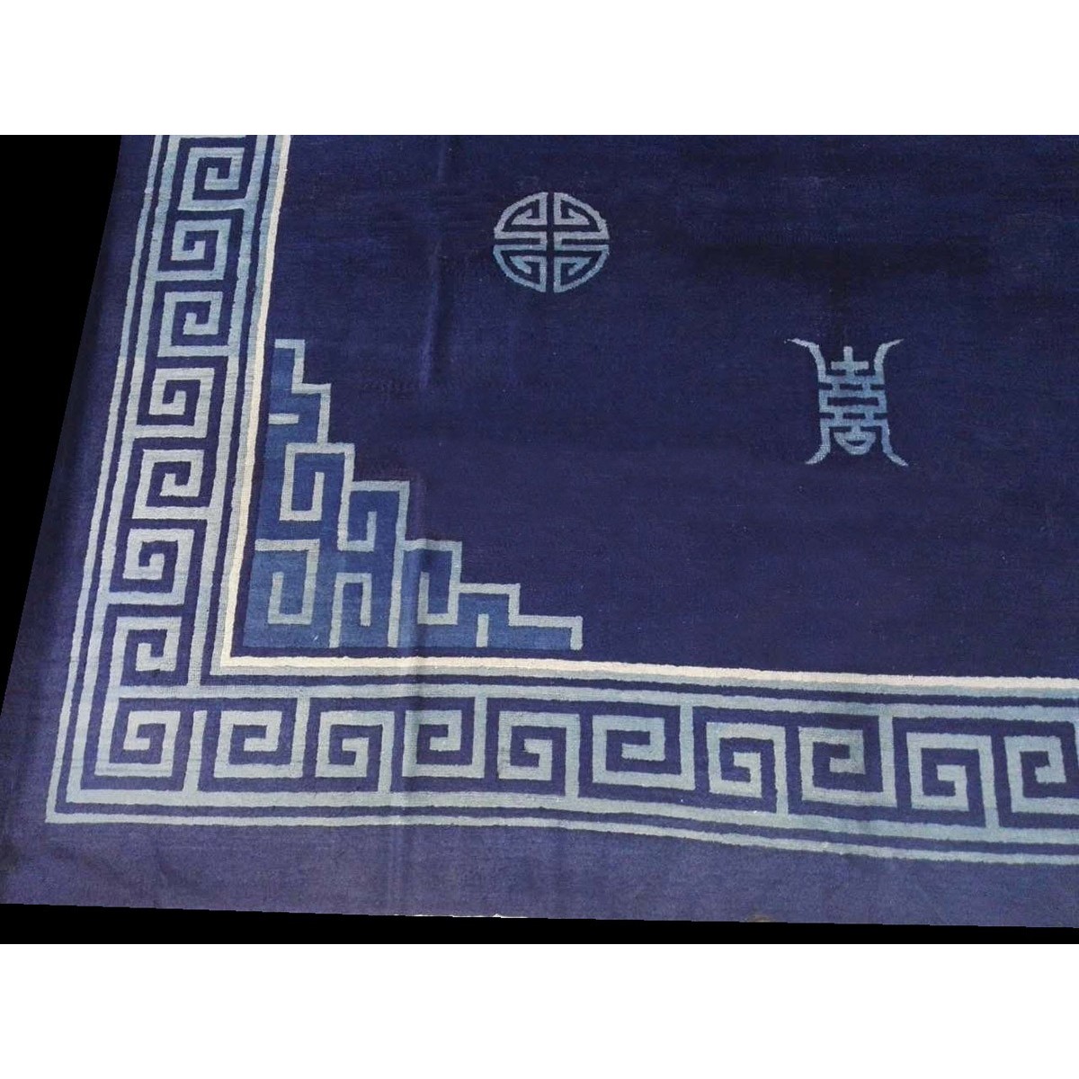 DescriptionChineseCarpets made in China proper. See entries Ningshia, Peking, Art Deco. Chinese - PekingThe commercial Peking carpet is a later 19th century development, begun by importing weaves from Ningshia (see entry) to create and export industry aimed at Western markets. The foundation is cotton and the pile is a good quality carpet wool which takes dyes particularly well. The neat medium weave is in Persian (asymmetric) knots. Designs are strictly Chinese and the whole motif repertoire of Chinese art is employed. Blue and white is the most popular color combination and red is particularly rare. Sizes tend to 9 x 12 and larger, and few small pieces appear. For a short time in the early 1920s Persian designs were woven to capitalize on the death of new Iranian goods. The industry decimated by the Communist Revolution relocated to the Pearl River area. There is a good supply of antique carpets at reasonable prices. | |