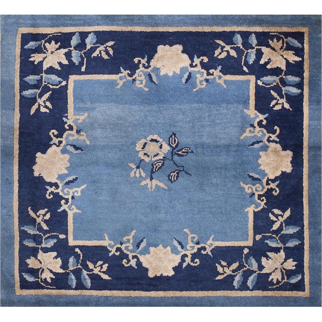 DescriptionChineseCarpets made in China proper. See entries Ningshia, Peking, Art Deco. Chinese - PekingThe commercial Peking carpet is a later 19th century development, begun by importing weaves from Ningshia (see entry) to create and export industry aimed at Western markets. The foundation is cotton and the pile is a good quality carpet wool which takes dyes particularly well. The neat medium weave is in Persian (asymmetric) knots. Designs are strictly Chinese and the whole motif repertoire of Chinese art is employed. Blue and white is the most popular color combination and red is particularly rare. Sizes tend to 9 x 12 and larger, and few small pieces appear. For a short time in the early 1920s Persian designs were woven to capitalize on the death of new Iranian goods. The industry decimated by the Communist Revolution relocated to the Pearl River area. There is a good supply of antique carpets at reasonable prices. | |