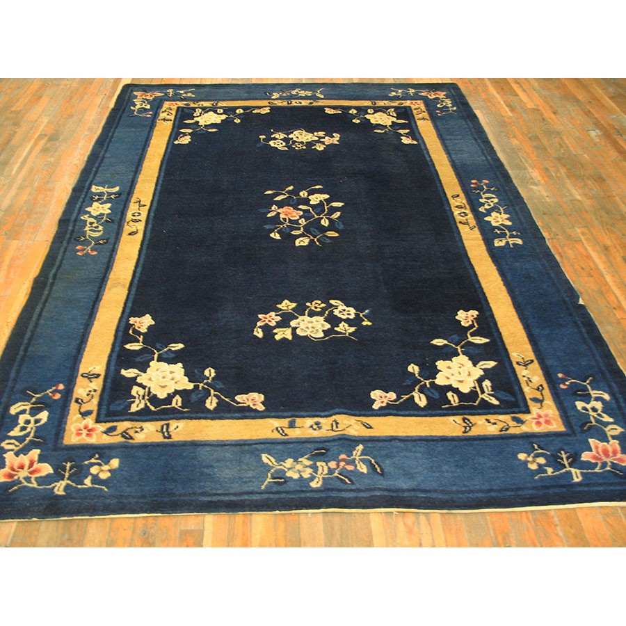 DescriptionChineseCarpets made in China proper. See entries Ningshia, Peking, Art Deco. Chinese - PekingThe commercial Peking carpet is a later 19th century development, begun by importing weaves from Ningshia (see entry) to create and export industry aimed at Western markets. The foundation is cotton and the pile is a good quality carpet wool which takes dyes particularly well. The neat medium weave is in Persian (asymmetric) knots. Designs are strictly Chinese and the whole motif repertoire of Chinese art is employed. Blue and white is the most popular color combination and red is particularly rare. Sizes tend to 9 x 12 and larger, and few small pieces appear. For a short time in the early 1920s Persian designs were woven to capitalize on the death of new Iranian goods. The industry decimated by the Communist Revolution relocated to the Pearl River area. There is a good supply of antique carpets at reasonable prices. | |
