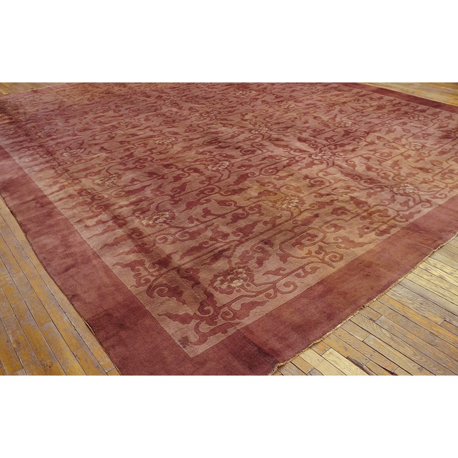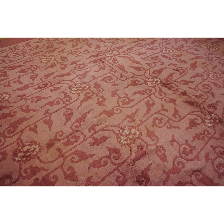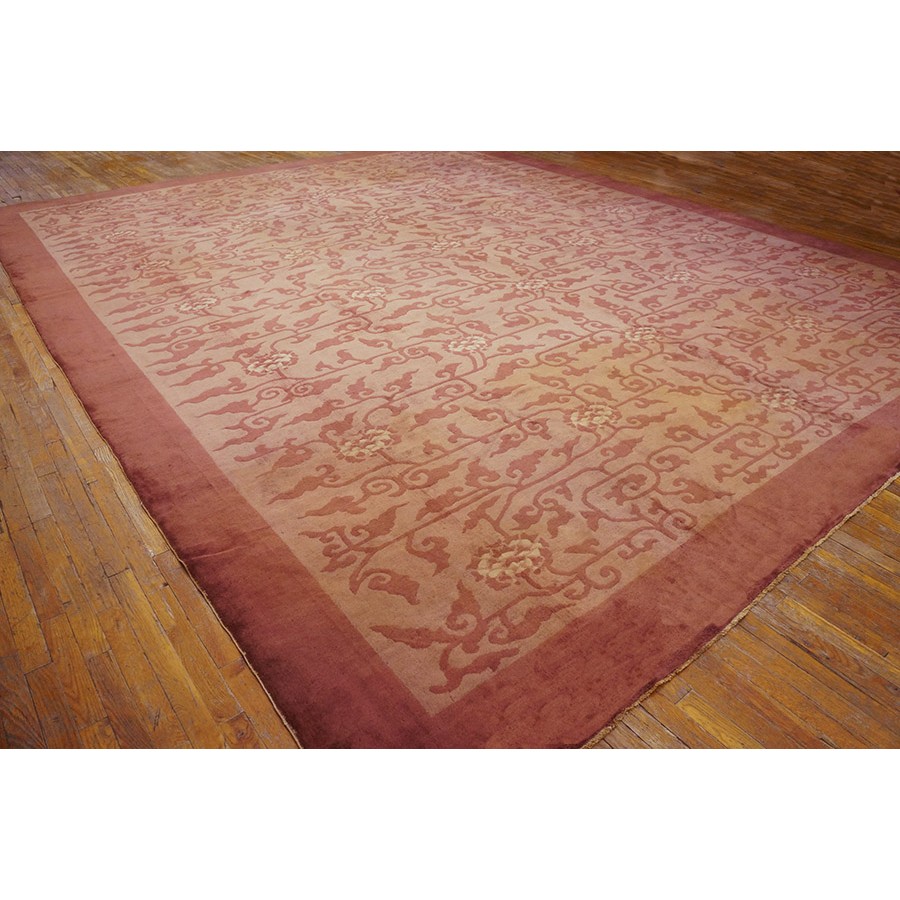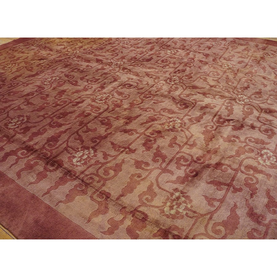 DescriptionChineseCarpets made in China proper. See entries Ningshia, Peking, Art Deco. Chinese - PekingThe commercial Peking carpet is a later 19th century development, begun by importing weaves from Ningshia (see entry) to create and export industry aimed at Western markets. The foundation is cotton and the pile is a good quality carpet wool which takes dyes particularly well. The neat medium weave is in Persian (asymmetric) knots. Designs are strictly Chinese and the whole motif repertoire of Chinese art is employed. Blue and white is the most popular color combination and red is particularly rare. Sizes tend to 9 x 12 and larger, and few small pieces appear. For a short time in the early 1920s Persian designs were woven to capitalize on the death of new Iranian goods. The industry decimated by the Communist Revolution relocated to the Pearl River area. There is a good supply of antique carpets at reasonable prices. | |