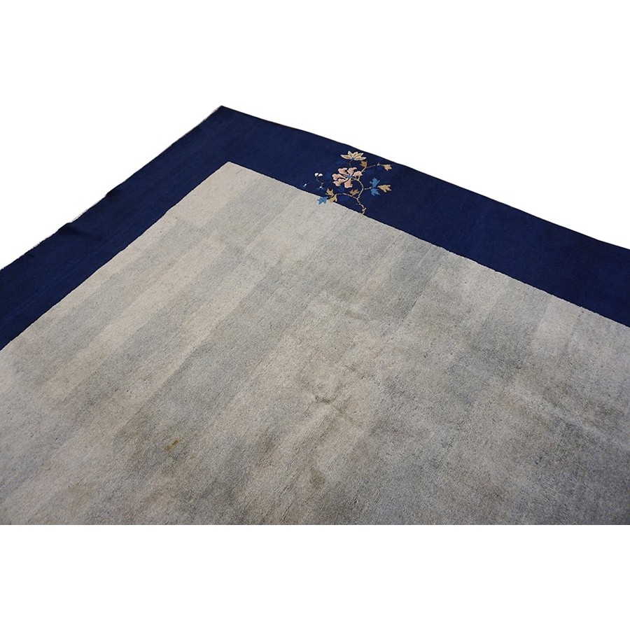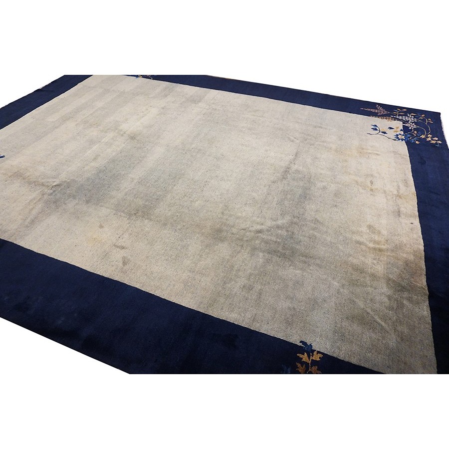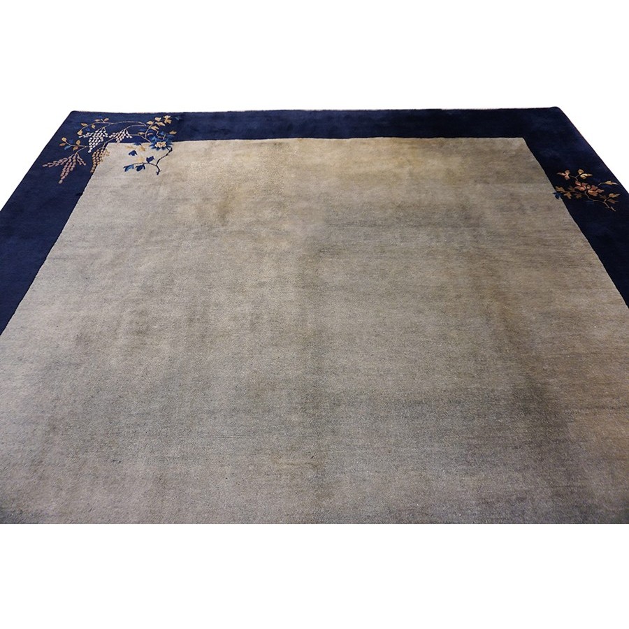 DescriptionChineseCarpets made in China proper. See entries Ningshia, Peking, Art Deco. Chinese - PekingThe commercial Peking carpet is a later 19th century development, begun by importing weaves from Ningshia (see entry) to create and export industry aimed at Western markets. The foundation is cotton and the pile is a good quality carpet wool which takes dyes particularly well. The neat medium weave is in Persian (asymmetric) knots. Designs are strictly Chinese and the whole motif repertoire of Chinese art is employed. Blue and white is the most popular color combination and red is particularly rare. Sizes tend to 9 x 12 and larger, and few small pieces appear. For a short time in the early 1920s Persian designs were woven to capitalize on the death of new Iranian goods. The industry decimated by the Communist Revolution relocated to the Pearl River area. There is a good supply of antique carpets at reasonable prices. | |