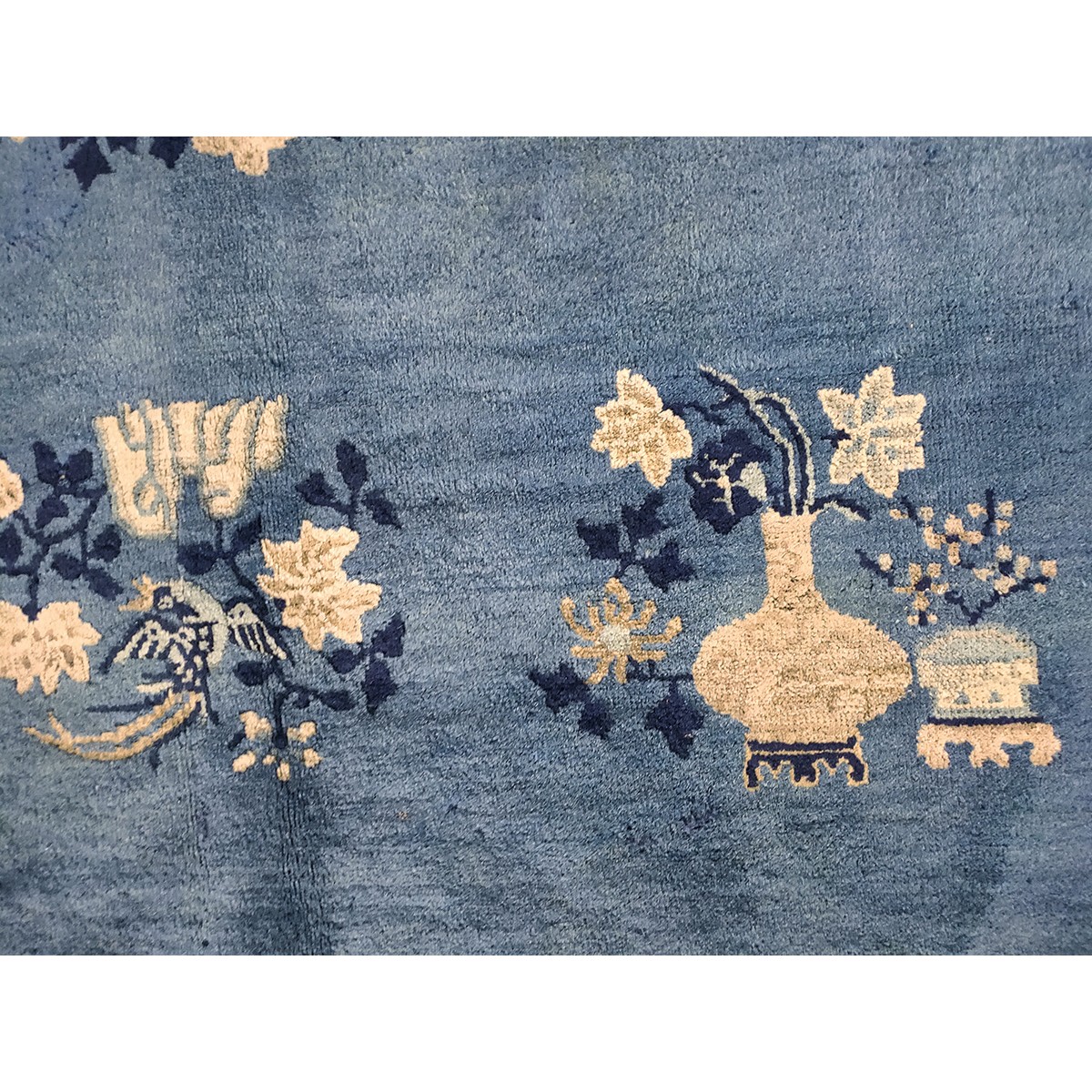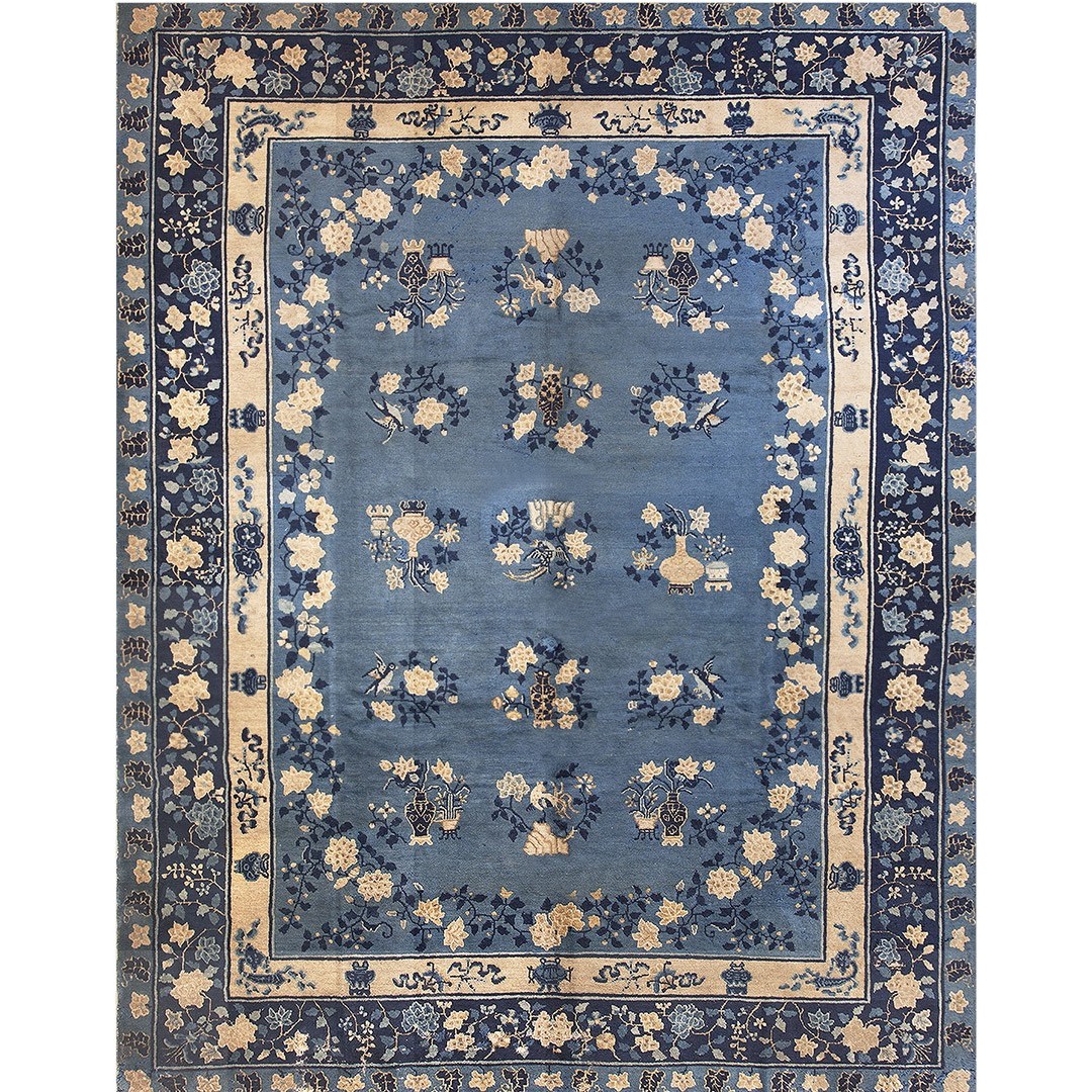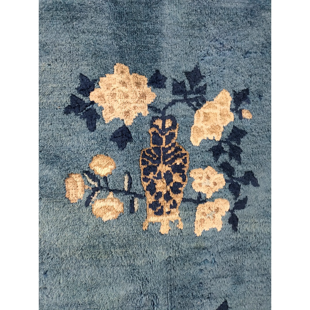 DescriptionChineseCarpets made in China proper. See entries Ningshia, Peking, Art Deco. Chinese - PekingThe commercial Peking carpet is a later 19th century development, begun by importing weaves from Ningshia (see entry) to create and export industry aimed at Western markets. The foundation is cotton and the pile is a good quality carpet wool which takes dyes particularly well. The neat medium weave is in Persian (asymmetric) knots. Designs are strictly Chinese and the whole motif repertoire of Chinese art is employed. Blue and white is the most popular color combination and red is particularly rare. Sizes tend to 9 x 12 and larger, and few small pieces appear. For a short time in the early 1920s Persian designs were woven to capitalize on the death of new Iranian goods. The industry decimated by the Communist Revolution relocated to the Pearl River area. There is a good supply of antique carpets at reasonable prices. | |