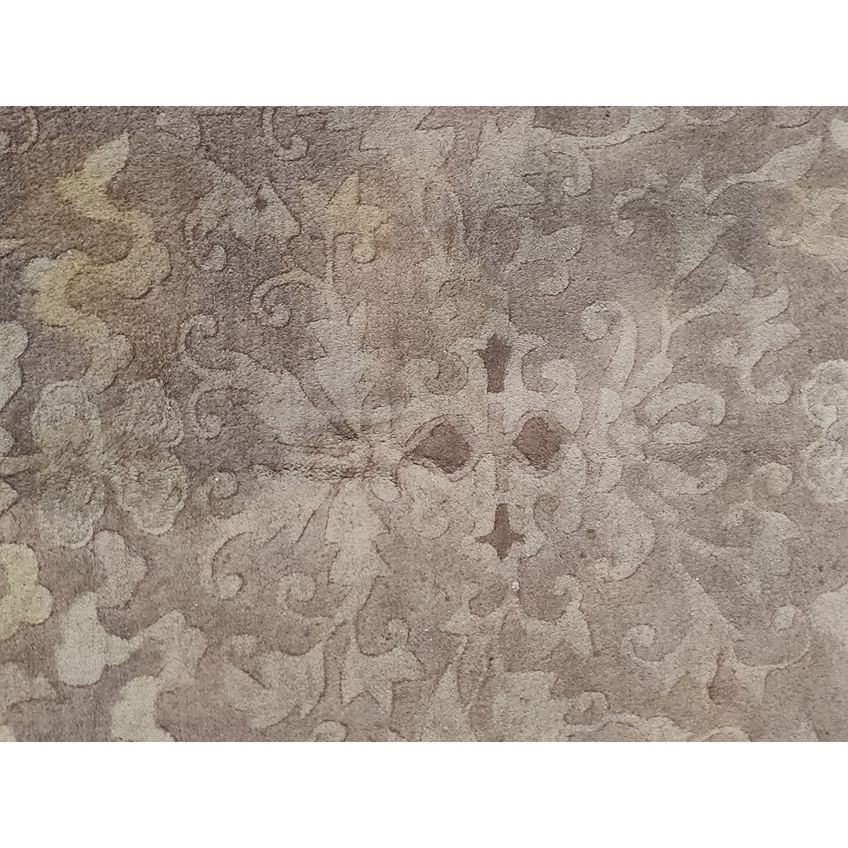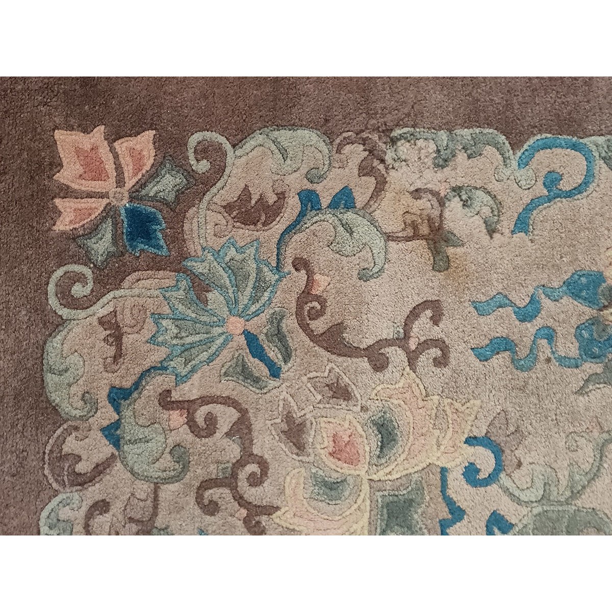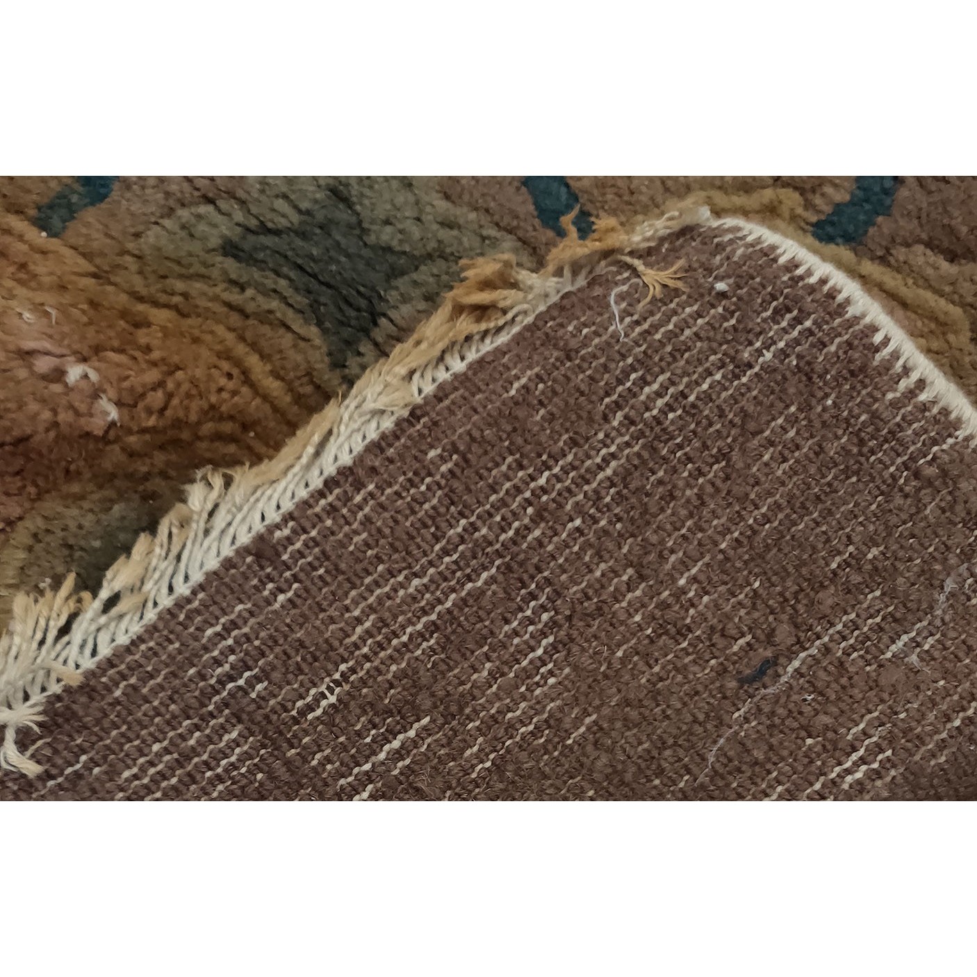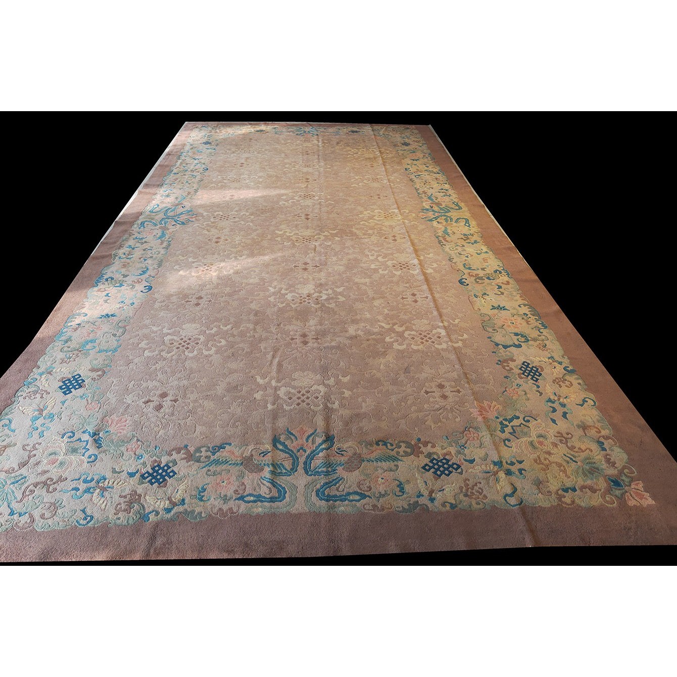 DescriptionChineseCarpets made in China proper. See entries Ningshia, Peking, Art Deco. Chinese - PekingThe commercial Peking carpet is a later 19th century development, begun by importing weaves from Ningshia (see entry) to create and export industry aimed at Western markets. The foundation is cotton and the pile is a good quality carpet wool which takes dyes particularly well. The neat medium weave is in Persian (asymmetric) knots. Designs are strictly Chinese and the whole motif repertoire of Chinese art is employed. Blue and white is the most popular color combination and red is particularly rare. Sizes tend to 9 x 12 and larger, and few small pieces appear. For a short time in the early 1920s Persian designs were woven to capitalize on the death of new Iranian goods. The industry decimated by the Communist Revolution relocated to the Pearl River area. There is a good supply of antique carpets at reasonable prices. | |