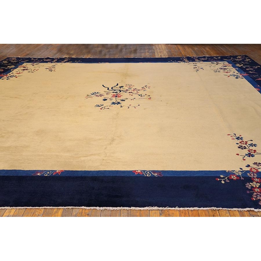 DescriptionChineseCarpets made in China proper. See entries Ningshia, Peking, Art Deco. Chinese - PekingThe commercial Peking carpet is a later 19th century development, begun by importing weaves from Ningshia (see entry) to create and export industry aimed at Western markets. The foundation is cotton and the pile is a good quality carpet wool which takes dyes particularly well. The neat medium weave is in Persian (asymmetric) knots. Designs are strictly Chinese and the whole motif repertoire of Chinese art is employed. Blue and white is the most popular color combination and red is particularly rare. Sizes tend to 9 x 12 and larger, and few small pieces appear. For a short time in the early 1920s Persian designs were woven to capitalize on the death of new Iranian goods. The industry decimated by the Communist Revolution relocated to the Pearl River area. There is a good supply of antique carpets at reasonable prices. | |