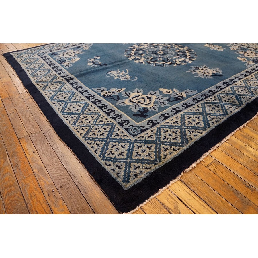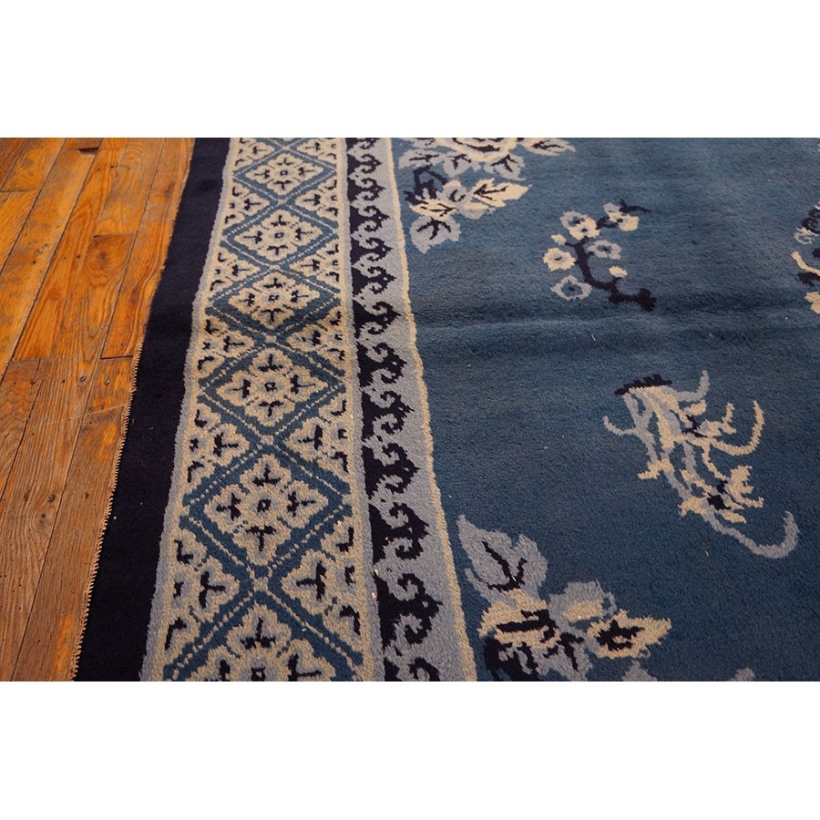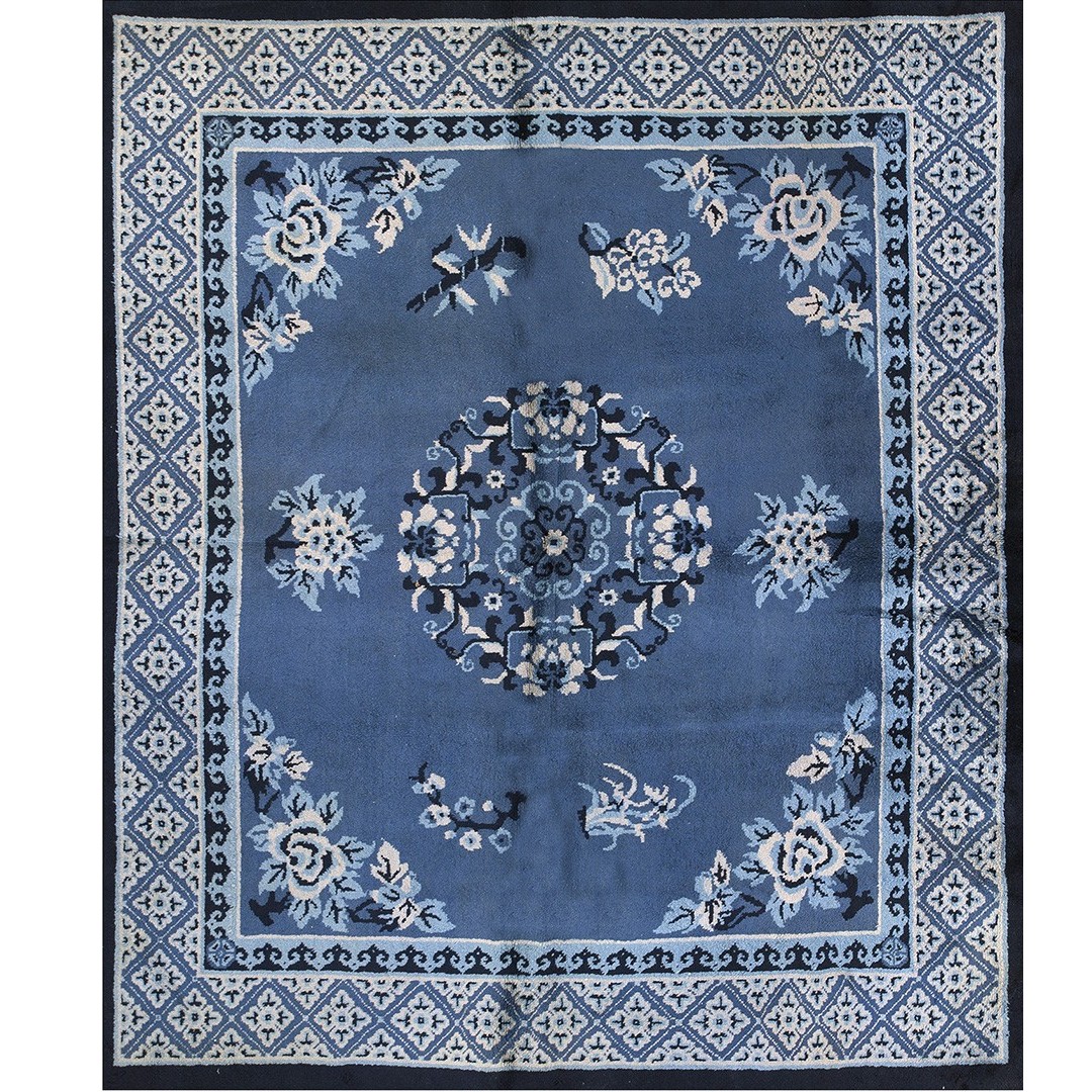 DescriptionChineseCarpets made in China proper. See entries Ningshia, Peking, Art Deco. Chinese - PekingThe commercial Peking carpet is a later 19th century development, begun by importing weaves from Ningshia (see entry) to create and export industry aimed at Western markets. The foundation is cotton and the pile is a good quality carpet wool which takes dyes particularly well. The neat medium weave is in Persian (asymmetric) knots. Designs are strictly Chinese and the whole motif repertoire of Chinese art is employed. Blue and white is the most popular color combination and red is particularly rare. Sizes tend to 9 x 12 and larger, and few small pieces appear. For a short time in the early 1920s Persian designs were woven to capitalize on the death of new Iranian goods. The industry decimated by the Communist Revolution relocated to the Pearl River area. There is a good supply of antique carpets at reasonable prices. | |