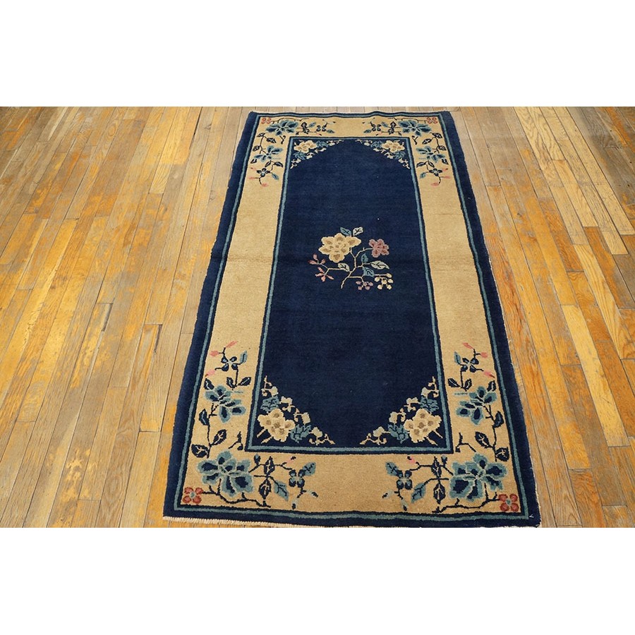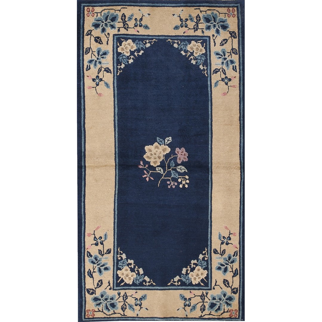 DescriptionChineseCarpets made in China proper. See entries Ningshia, Peking, Art Deco. Chinese - PekingThe commercial Peking carpet is a later 19th century development, begun by importing weaves from Ningshia (see entry) to create and export industry aimed at Western markets. The foundation is cotton and the pile is a good quality carpet wool which takes dyes particularly well. The neat medium weave is in Persian (asymmetric) knots. Designs are strictly Chinese and the whole motif repertoire of Chinese art is employed. Blue and white is the most popular color combination and red is particularly rare. Sizes tend to 9 x 12 and larger, and few small pieces appear. For a short time in the early 1920s Persian designs were woven to capitalize on the death of new Iranian goods. The industry decimated by the Communist Revolution relocated to the Pearl River area. There is a good supply of antique carpets at reasonable prices. | |