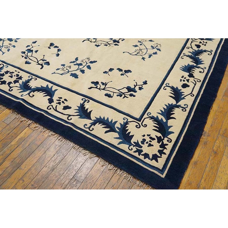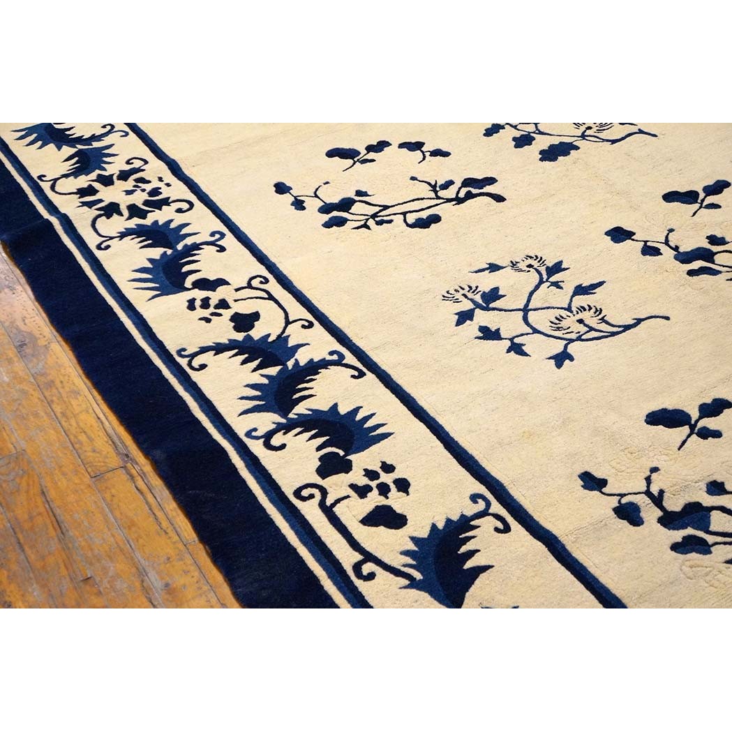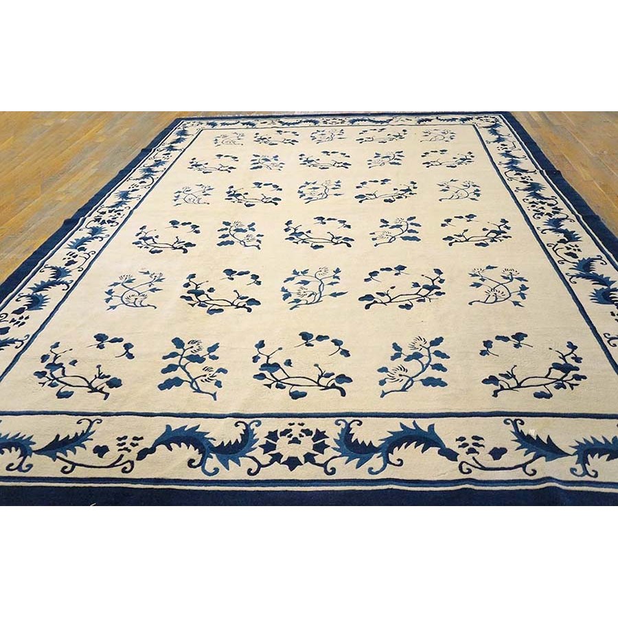 DescriptionChineseCarpets made in China proper. See entries Ningshia, Peking, Art Deco. Chinese - PekingThe commercial Peking carpet is a later 19th century development, begun by importing weaves from Ningshia (see entry) to create and export industry aimed at Western markets. The foundation is cotton and the pile is a good quality carpet wool which takes dyes particularly well. The neat medium weave is in Persian (asymmetric) knots. Designs are strictly Chinese and the whole motif repertoire of Chinese art is employed. Blue and white is the most popular color combination and red is particularly rare. Sizes tend to 9 x 12 and larger, and few small pieces appear. For a short time in the early 1920s Persian designs were woven to capitalize on the death of new Iranian goods. The industry decimated by the Communist Revolution relocated to the Pearl River area. There is a good supply of antique carpets at reasonable prices. | |