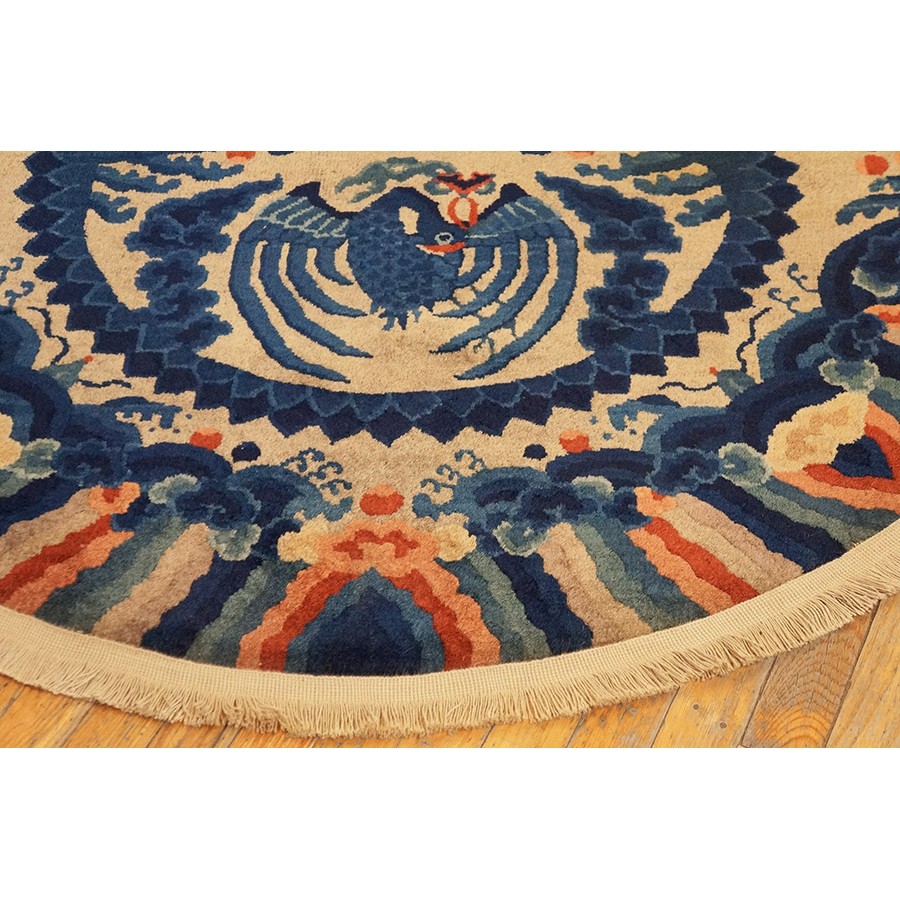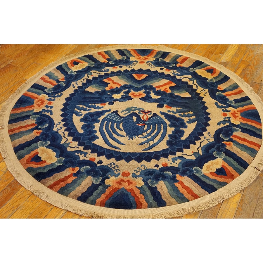DescriptionChineseCarpets made in China proper. See entries Ningshia, Peking, Art Deco. Chinese - PekingThe commercial Peking carpet is a later 19th century development, begun by importing weaves from Ningshia (see entry) to create and export industry aimed at Western markets. The foundation is cotton and the pile is a good quality carpet wool which takes dyes particularly well. The neat medium weave is in Persian (asymmetric) knots. Designs are strictly Chinese and the whole motif repertoire of Chinese art is employed. Blue and white is the most popular color combination and red is particularly rare. Sizes tend to 9 x 12 and larger, and few small pieces appear. For a short time in the early 1920s Persian designs were woven to capitalize on the death of new Iranian goods. The industry decimated by the Communist Revolution relocated to the Pearl River area. There is a good supply of antique carpets at reasonable prices. | |