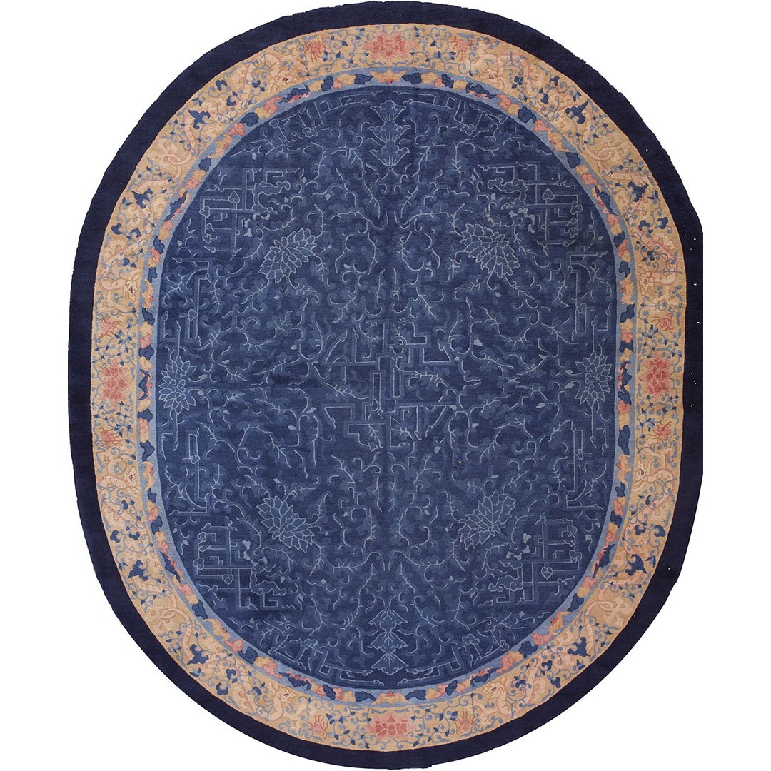 DescriptionChineseCarpets made in China proper. See entries Ningshia, Peking, Art Deco. Chinese - PekingThe commercial Peking carpet is a later 19th century development, begun by importing weaves from Ningshia (see entry) to create and export industry aimed at Western markets. The foundation is cotton and the pile is a good quality carpet wool which takes dyes particularly well. The neat medium weave is in Persian (asymmetric) knots. Designs are strictly Chinese and the whole motif repertoire of Chinese art is employed. Blue and white is the most popular color combination and red is particularly rare. Sizes tend to 9 x 12 and larger, and few small pieces appear. For a short time in the early 1920s Persian designs were woven to capitalize on the death of new Iranian goods. The industry decimated by the Communist Revolution relocated to the Pearl River area. There is a good supply of antique carpets at reasonable prices. | |