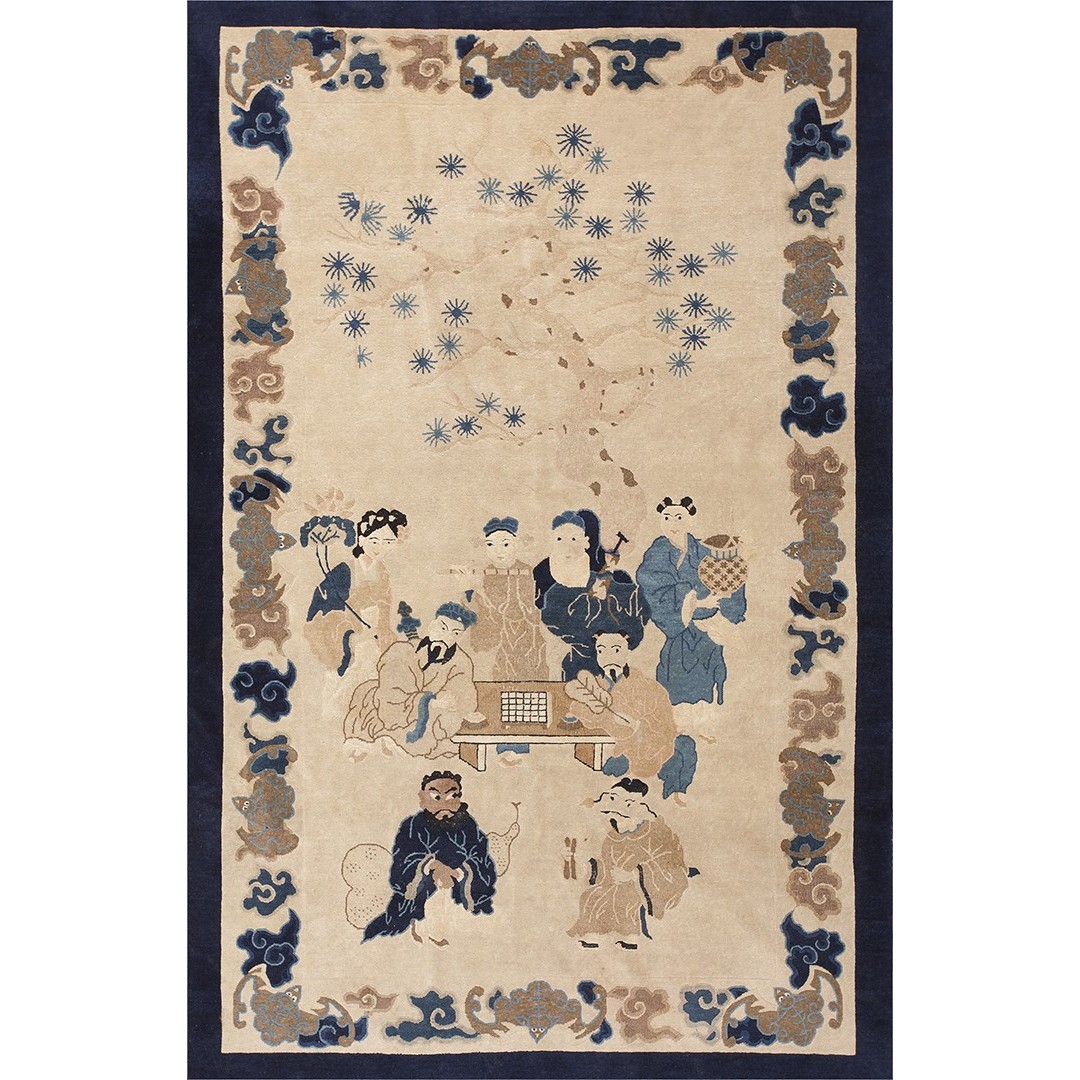 Early 20th Century Chinese Peking Carpet with Eight Immortals Playing Weiqi "Go"
