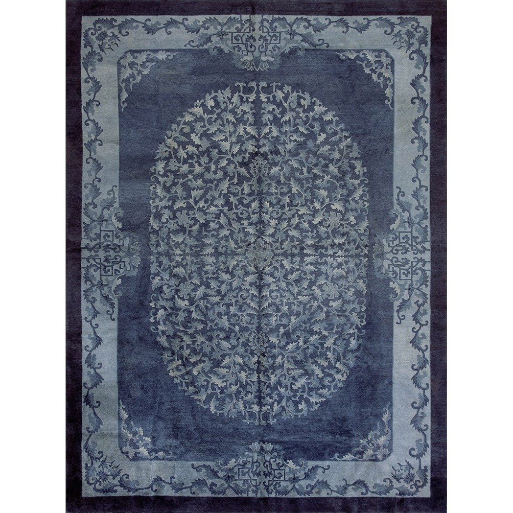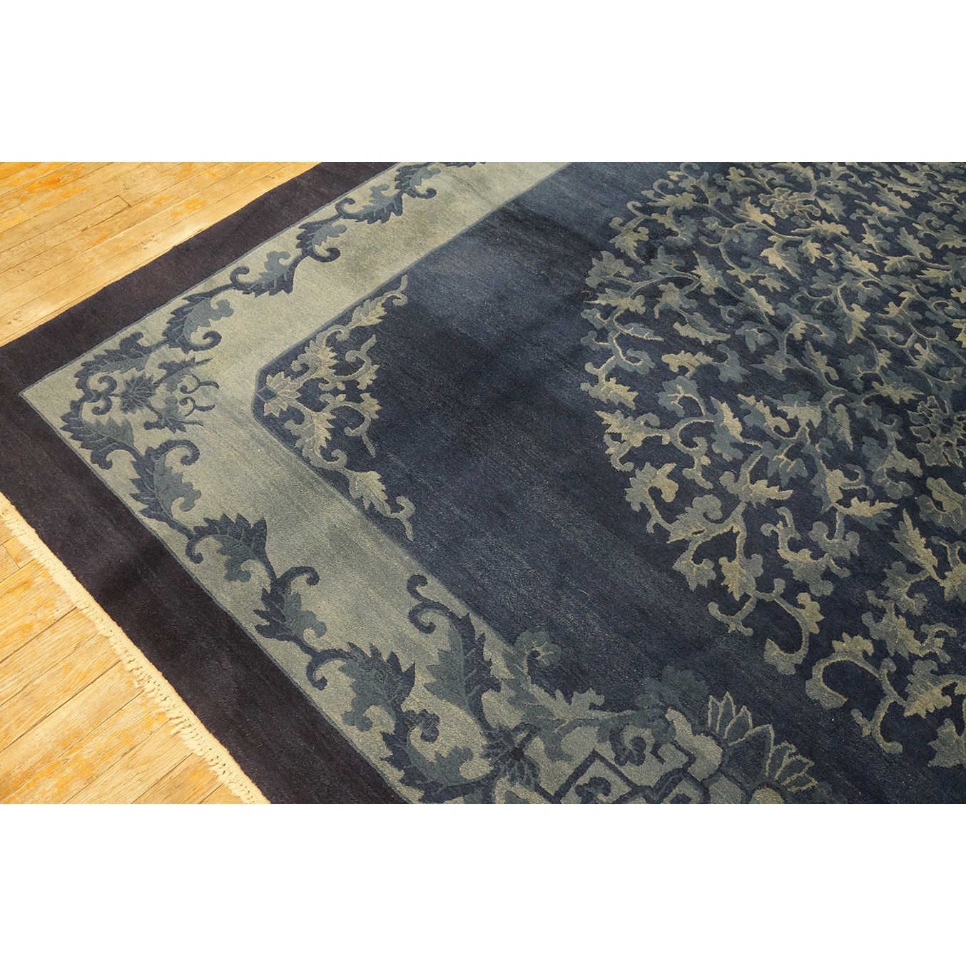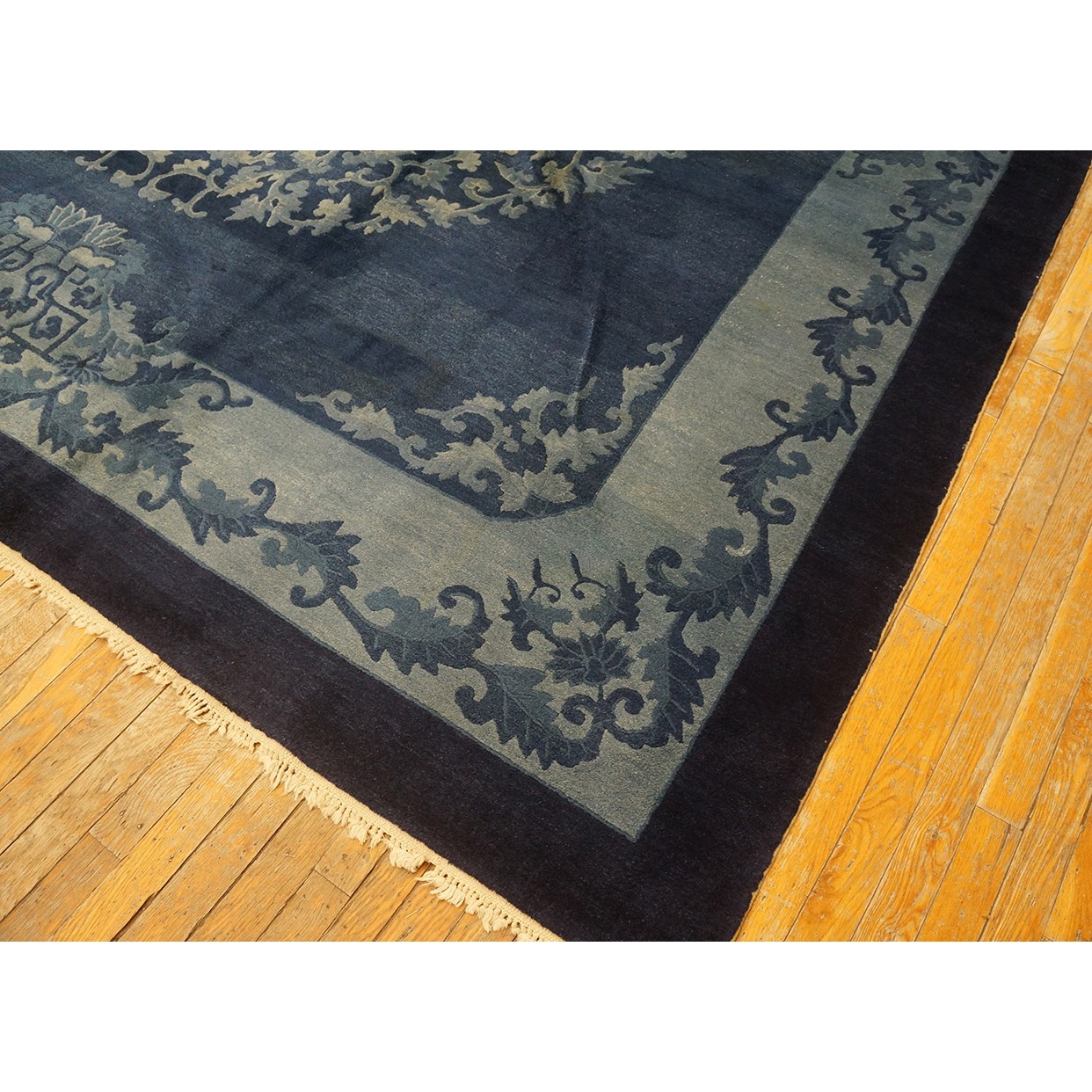 DescriptionChineseCarpets made in China proper. See entries Ningshia, Peking, Art Deco. Chinese - PekingThe commercial Peking carpet is a later 19th century development, begun by importing weaves from Ningshia (see entry) to create and export industry aimed at Western markets. The foundation is cotton and the pile is a good quality carpet wool which takes dyes particularly well. The neat medium weave is in Persian (asymmetric) knots. Designs are strictly Chinese and the whole motif repertoire of Chinese art is employed. Blue and white is the most popular color combination and red is particularly rare. Sizes tend to 9 x 12 and larger, and few small pieces appear. For a short time in the early 1920s Persian designs were woven to capitalize on the death of new Iranian goods. The industry decimated by the Communist Revolution relocated to the Pearl River area. There is a good supply of antique carpets at reasonable prices. | |