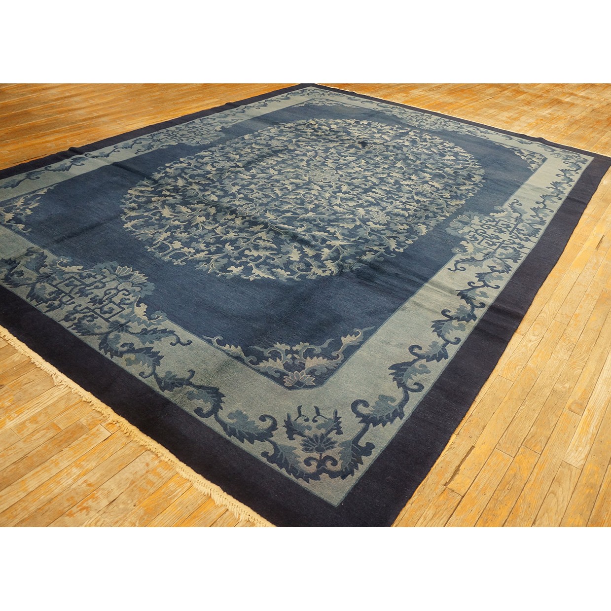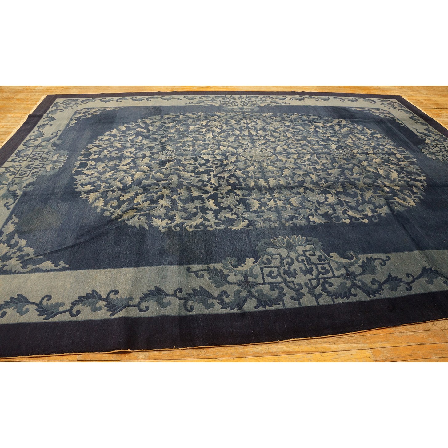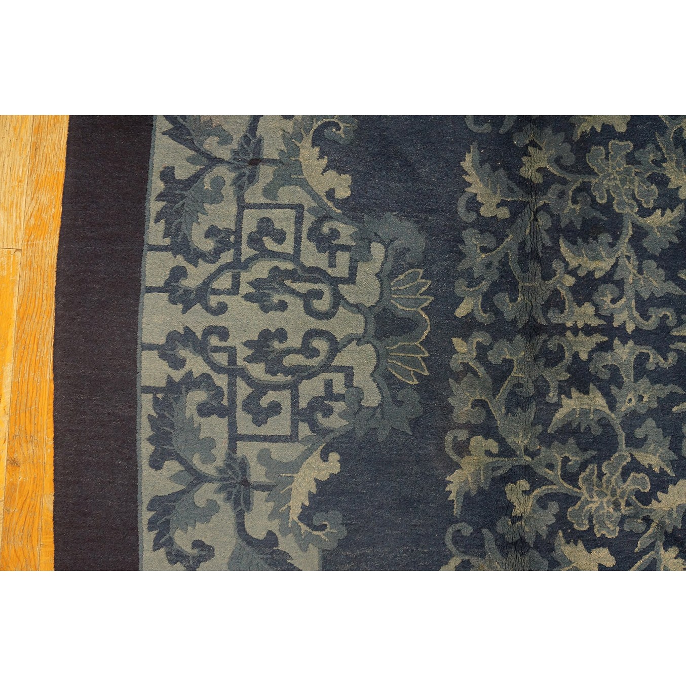 DescriptionChineseCarpets made in China proper. See entries Ningshia, Peking, Art Deco. Chinese - PekingThe commercial Peking carpet is a later 19th century development, begun by importing weaves from Ningshia (see entry) to create and export industry aimed at Western markets. The foundation is cotton and the pile is a good quality carpet wool which takes dyes particularly well. The neat medium weave is in Persian (asymmetric) knots. Designs are strictly Chinese and the whole motif repertoire of Chinese art is employed. Blue and white is the most popular color combination and red is particularly rare. Sizes tend to 9 x 12 and larger, and few small pieces appear. For a short time in the early 1920s Persian designs were woven to capitalize on the death of new Iranian goods. The industry decimated by the Communist Revolution relocated to the Pearl River area. There is a good supply of antique carpets at reasonable prices. | |