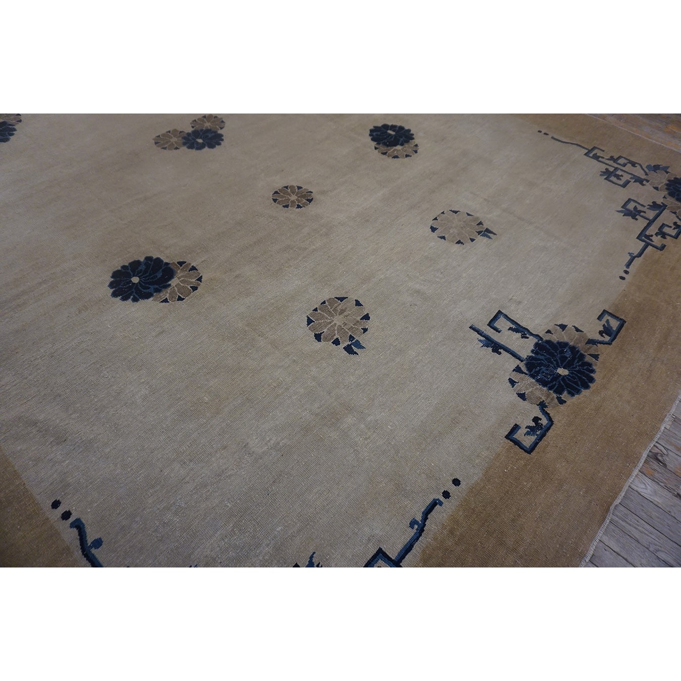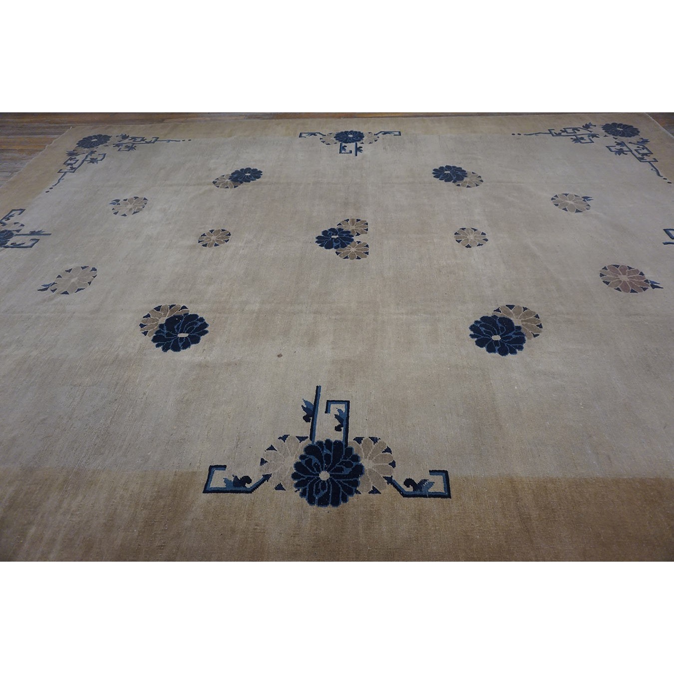 DescriptionChineseCarpets made in China proper. See entries Ningshia, Peking, Art Deco. Chinese - PekingThe commercial Peking carpet is a later 19th century development, begun by importing weaves from Ningshia (see entry) to create and export industry aimed at Western markets. The foundation is cotton and the pile is a good quality carpet wool which takes dyes particularly well. The neat medium weave is in Persian (asymmetric) knots. Designs are strictly Chinese and the whole motif repertoire of Chinese art is employed. Blue and white is the most popular color combination and red is particularly rare. Sizes tend to 9 x 12 and larger, and few small pieces appear. For a short time in the early 1920s Persian designs were woven to capitalize on the death of new Iranian goods. The industry decimated by the Communist Revolution relocated to the Pearl River area. There is a good supply of antique carpets at reasonable prices. | |
