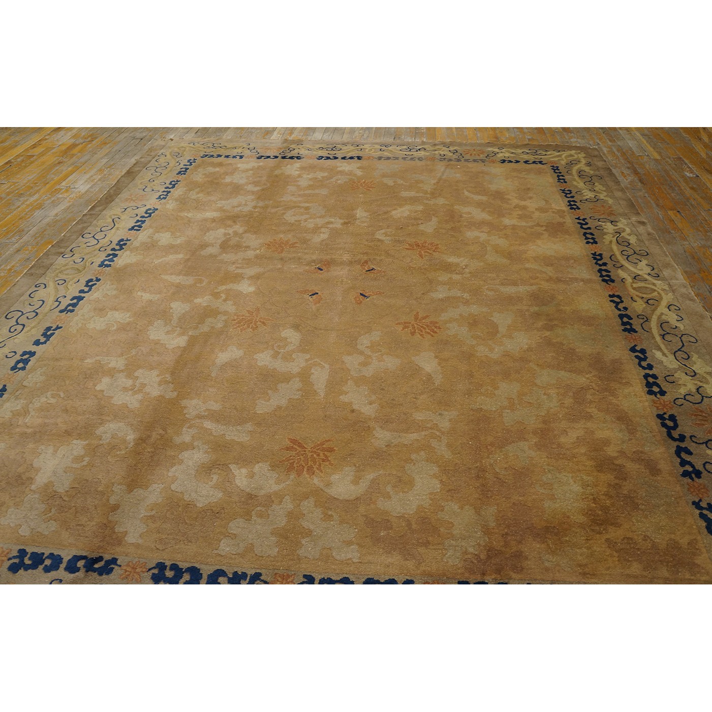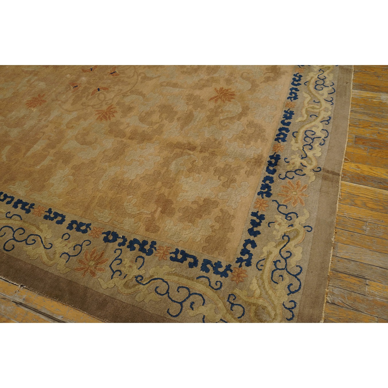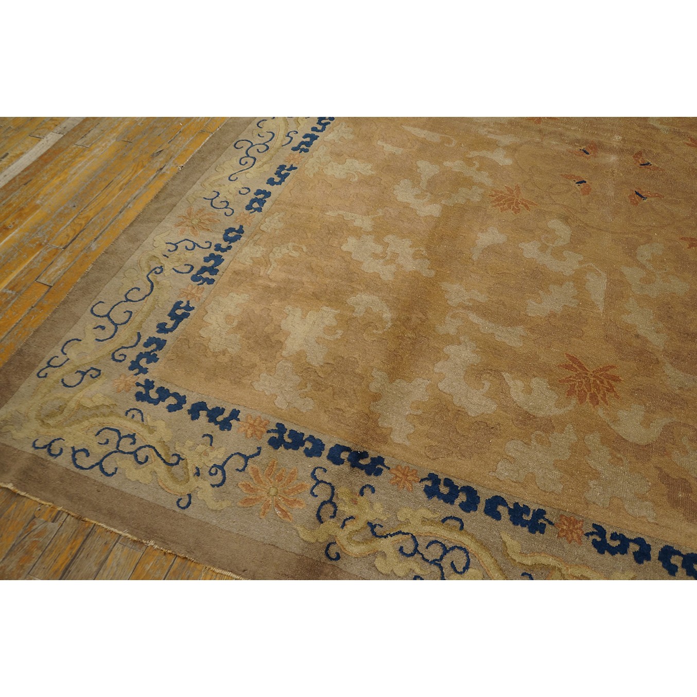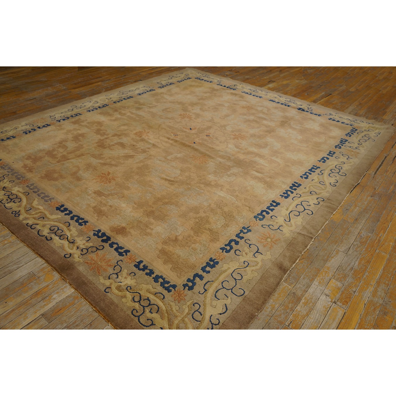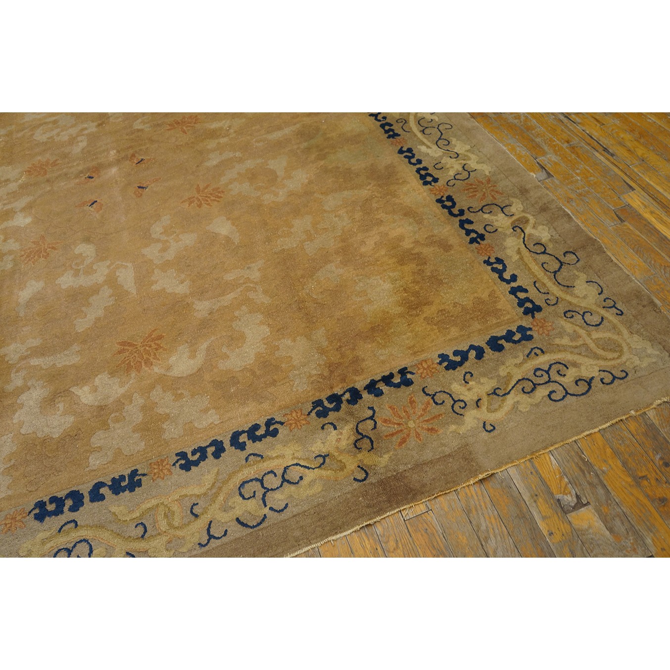 DescriptionChineseCarpets made in China proper. See entries Ningshia, Peking, Art Deco. Chinese - PekingThe commercial Peking carpet is a later 19th century development, begun by importing weaves from Ningshia (see entry) to create and export industry aimed at Western markets. The foundation is cotton and the pile is a good quality carpet wool which takes dyes particularly well. The neat medium weave is in Persian (asymmetric) knots. Designs are strictly Chinese and the whole motif repertoire of Chinese art is employed. Blue and white is the most popular color combination and red is particularly rare. Sizes tend to 9 x 12 and larger, and few small pieces appear. For a short time in the early 1920s Persian designs were woven to capitalize on the death of new Iranian goods. The industry decimated by the Communist Revolution relocated to the Pearl River area. There is a good supply of antique carpets at reasonable prices. | |