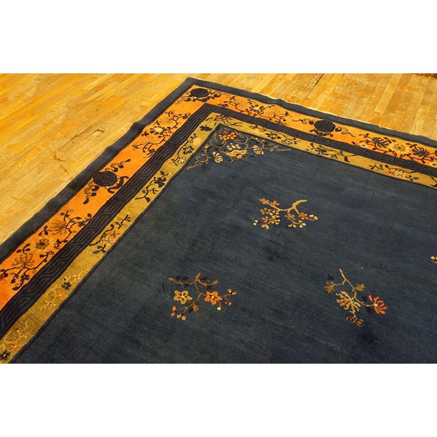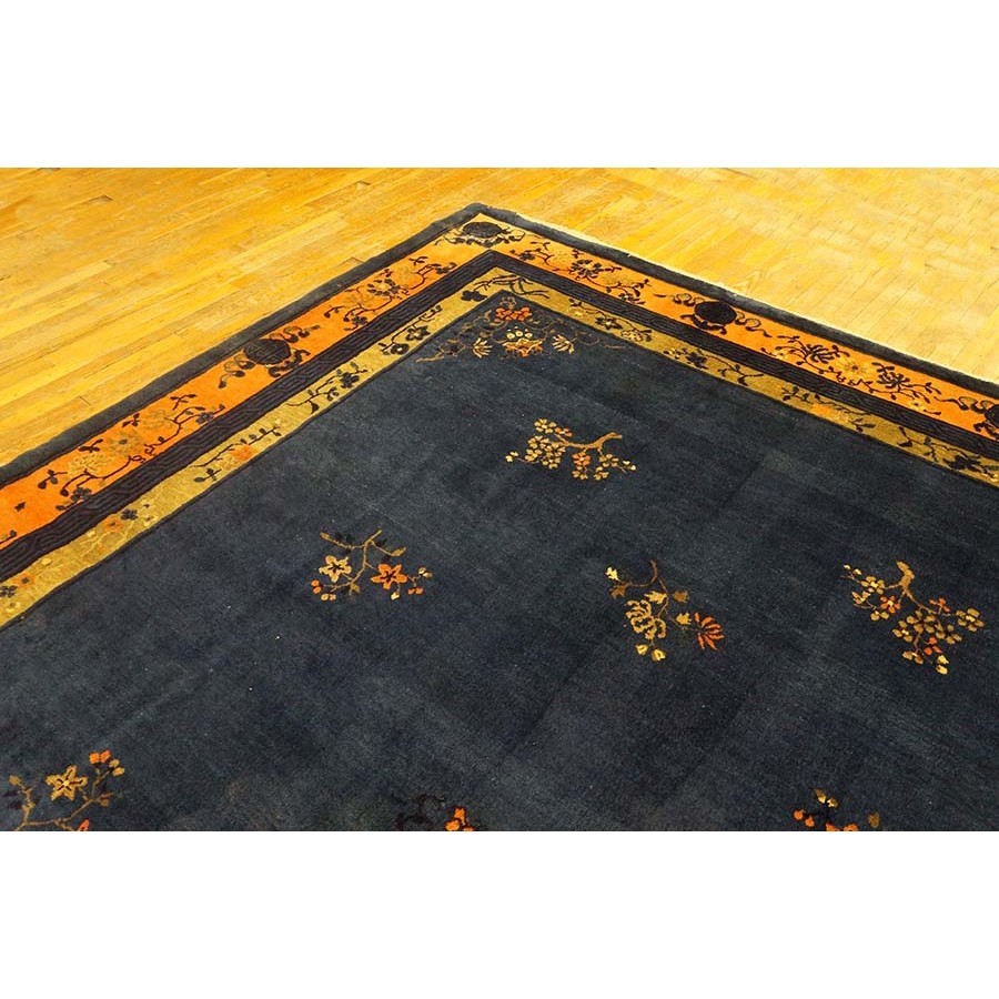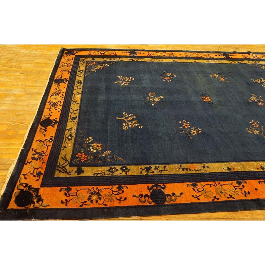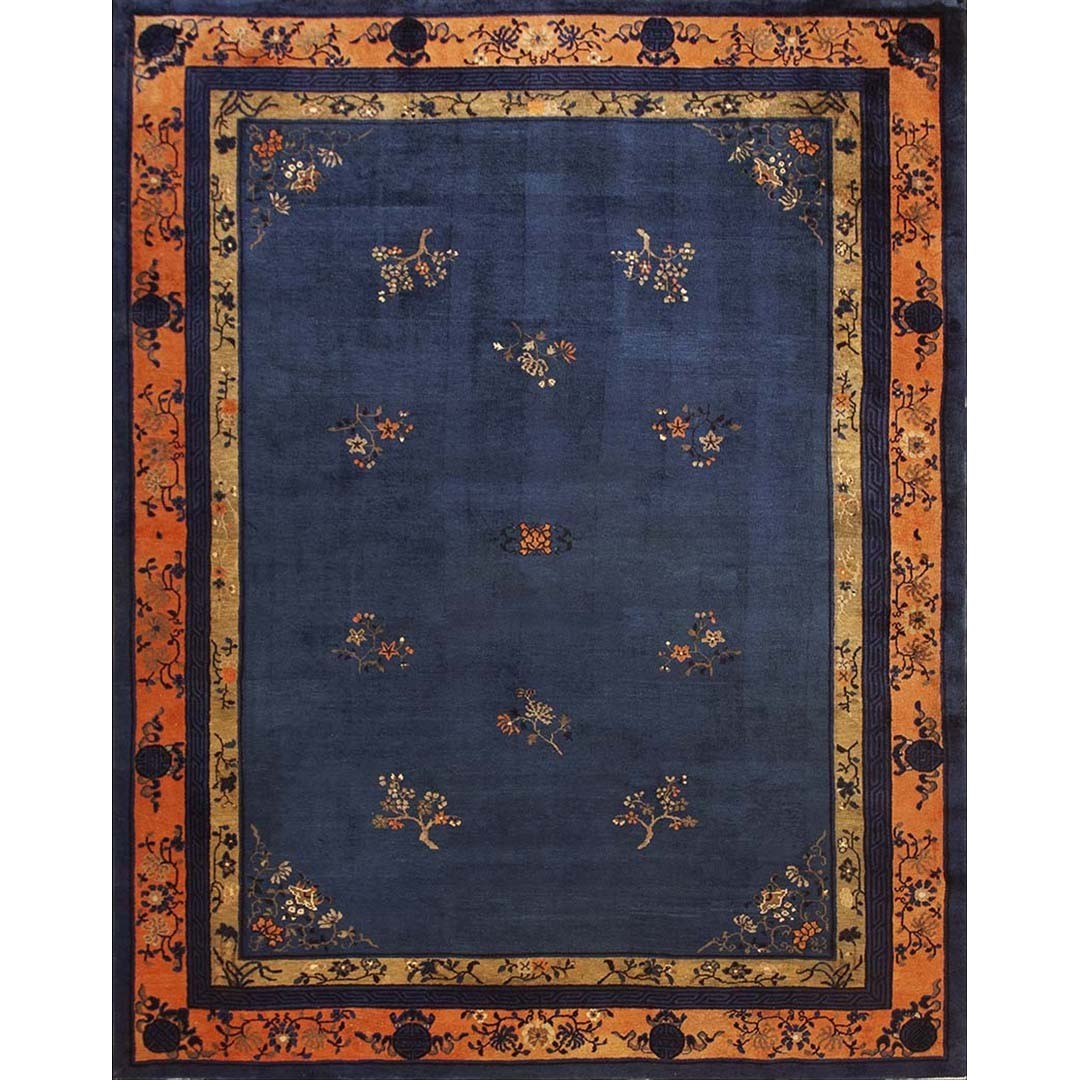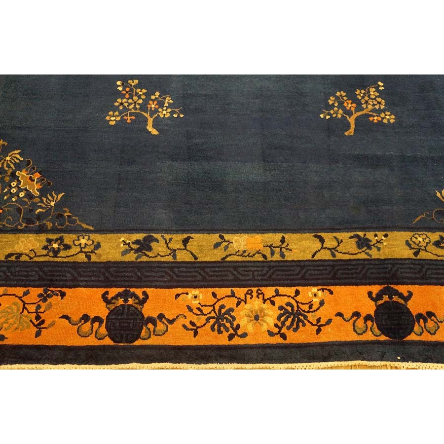 DescriptionChineseCarpets made in China proper. See entries Ningshia, Peking, Art Deco. Chinese - PekingThe commercial Peking carpet is a later 19th century development, begun by importing weaves from Ningshia (see entry) to create and export industry aimed at Western markets. The foundation is cotton and the pile is a good quality carpet wool which takes dyes particularly well. The neat medium weave is in Persian (asymmetric) knots. Designs are strictly Chinese and the whole motif repertoire of Chinese art is employed. Blue and white is the most popular color combination and red is particularly rare. Sizes tend to 9 x 12 and larger, and few small pieces appear. For a short time in the early 1920s Persian designs were woven to capitalize on the death of new Iranian goods. The industry decimated by the Communist Revolution relocated to the Pearl River area. There is a good supply of antique carpets at reasonable prices. | |