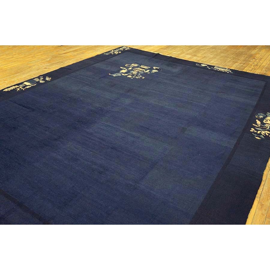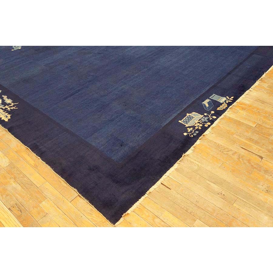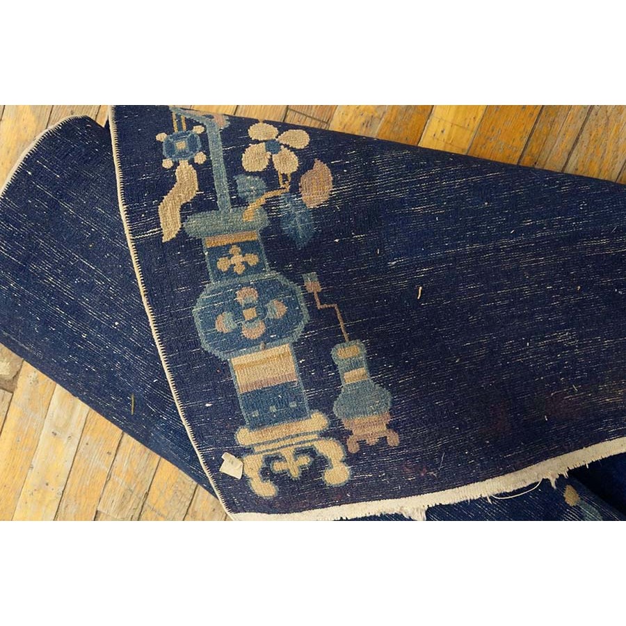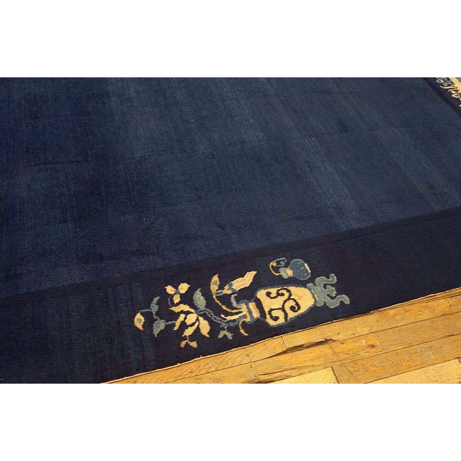 DescriptionChineseCarpets made in China proper. See entries Ningshia, Peking, Art Deco. Chinese - PekingThe commercial Peking carpet is a later 19th century development, begun by importing weaves from Ningshia (see entry) to create and export industry aimed at Western markets. The foundation is cotton and the pile is a good quality carpet wool which takes dyes particularly well. The neat medium weave is in Persian (asymmetric) knots. Designs are strictly Chinese and the whole motif repertoire of Chinese art is employed. Blue and white is the most popular color combination and red is particularly rare. Sizes tend to 9 x 12 and larger, and few small pieces appear. For a short time in the early 1920s Persian designs were woven to capitalize on the death of new Iranian goods. The industry decimated by the Communist Revolution relocated to the Pearl River area. There is a good supply of antique carpets at reasonable prices. | |