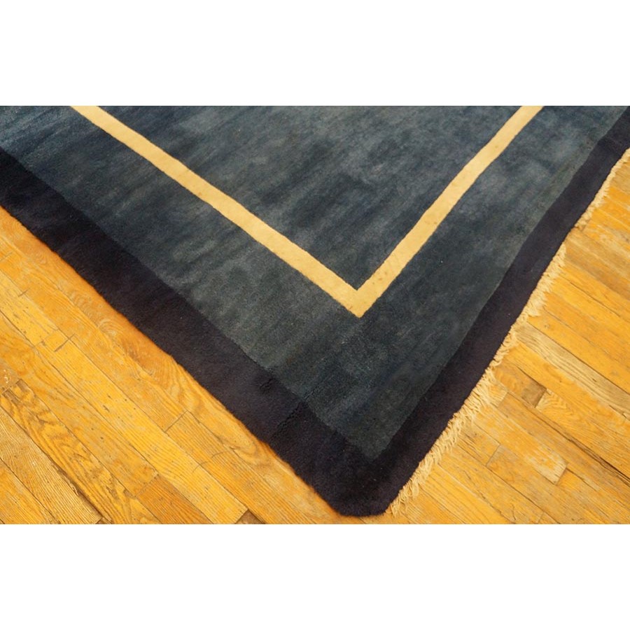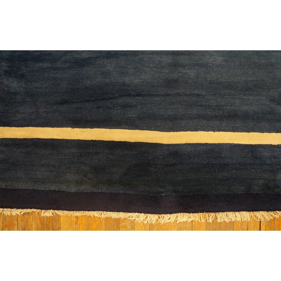 DescriptionChineseCarpets made in China proper. See entries Ningshia, Peking, Art Deco. Chinese - PekingThe commercial Peking carpet is a later 19th century development, begun by importing weaves from Ningshia (see entry) to create and export industry aimed at Western markets. The foundation is cotton and the pile is a good quality carpet wool which takes dyes particularly well. The neat medium weave is in Persian (asymmetric) knots. Designs are strictly Chinese and the whole motif repertoire of Chinese art is employed. Blue and white is the most popular color combination and red is particularly rare. Sizes tend to 9 x 12 and larger, and few small pieces appear. For a short time in the early 1920s Persian designs were woven to capitalize on the death of new Iranian goods. The industry decimated by the Communist Revolution relocated to the Pearl River area. There is a good supply of antique carpets at reasonable prices. | |