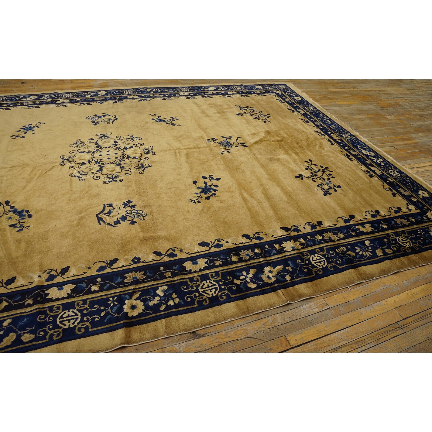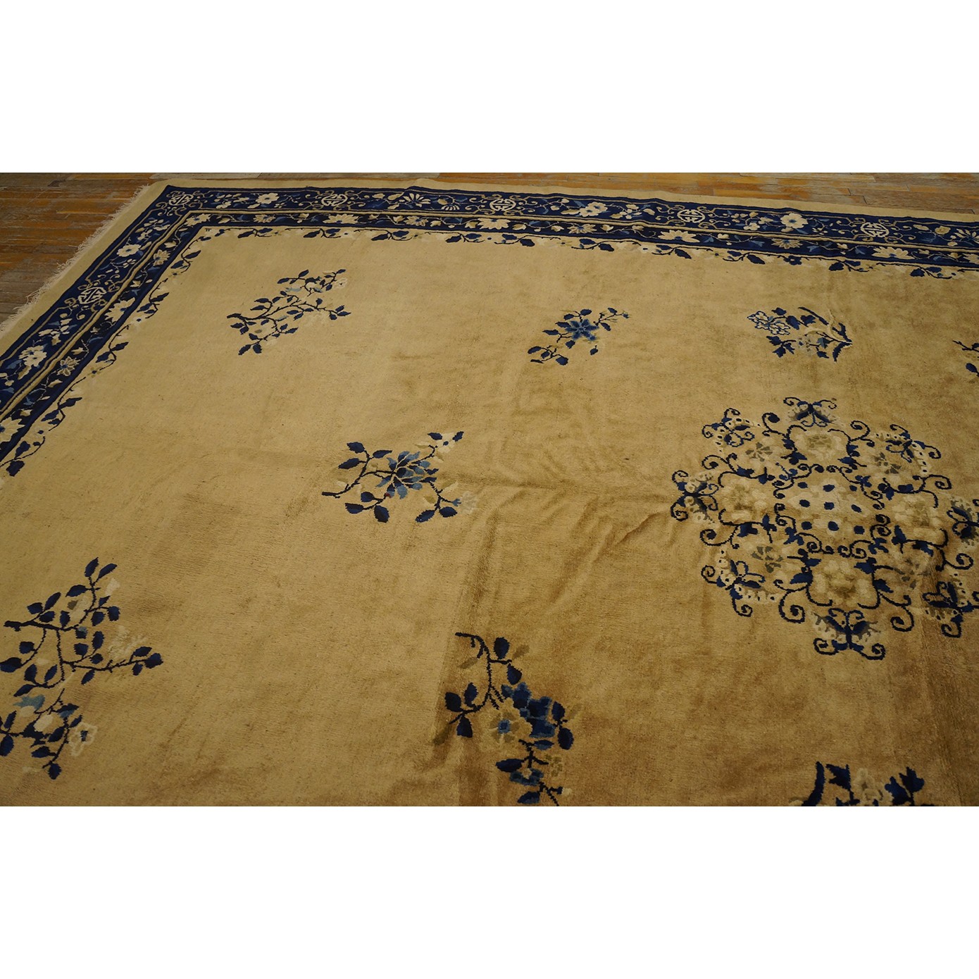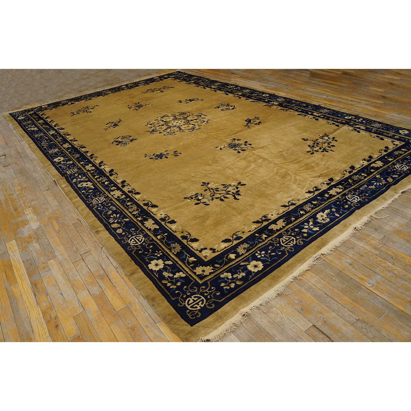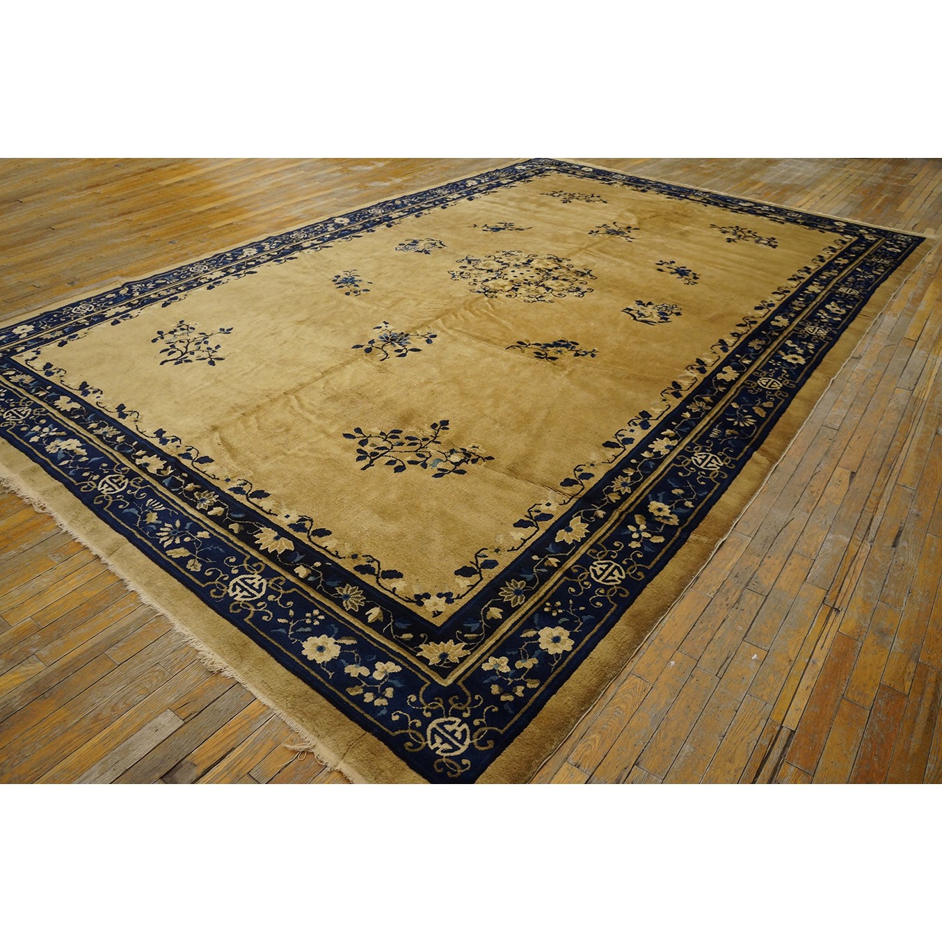 DescriptionChineseCarpets made in China proper. See entries Ningshia, Peking, Art Deco. Chinese - PekingThe commercial Peking carpet is a later 19th century development, begun by importing weaves from Ningshia (see entry) to create and export industry aimed at Western markets. The foundation is cotton and the pile is a good quality carpet wool which takes dyes particularly well. The neat medium weave is in Persian (asymmetric) knots. Designs are strictly Chinese and the whole motif repertoire of Chinese art is employed. Blue and white is the most popular color combination and red is particularly rare. Sizes tend to 9 x 12 and larger, and few small pieces appear. For a short time in the early 1920s Persian designs were woven to capitalize on the death of new Iranian goods. The industry decimated by the Communist Revolution relocated to the Pearl River area. There is a good supply of antique carpets at reasonable prices. | |