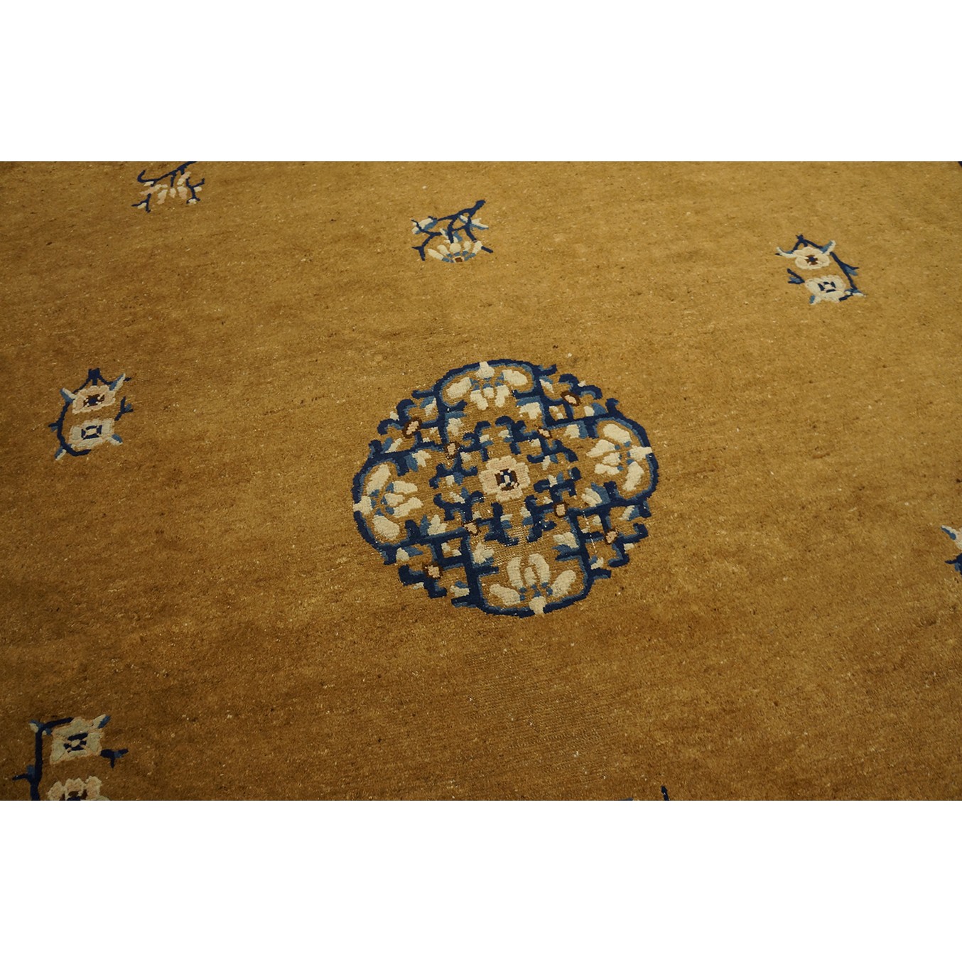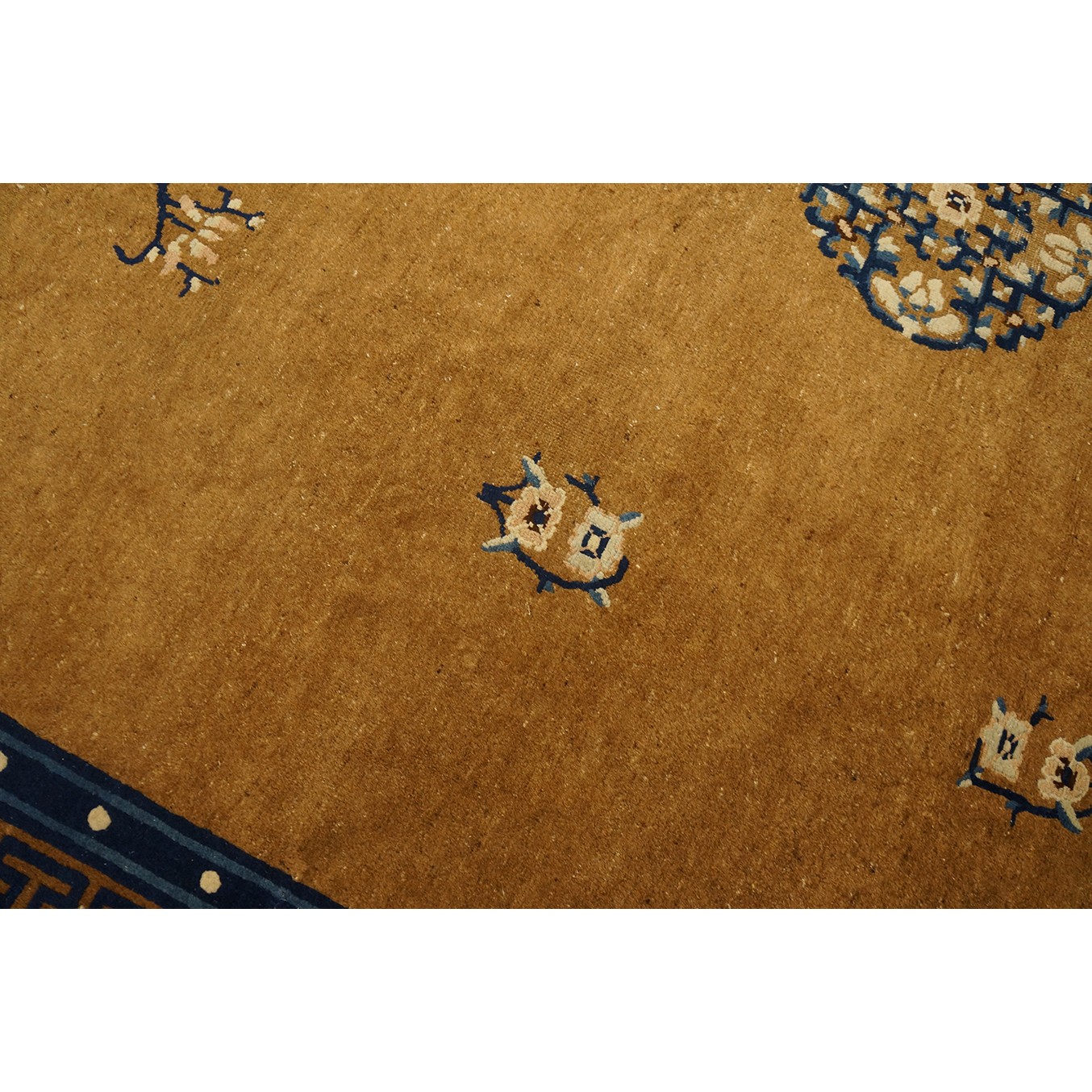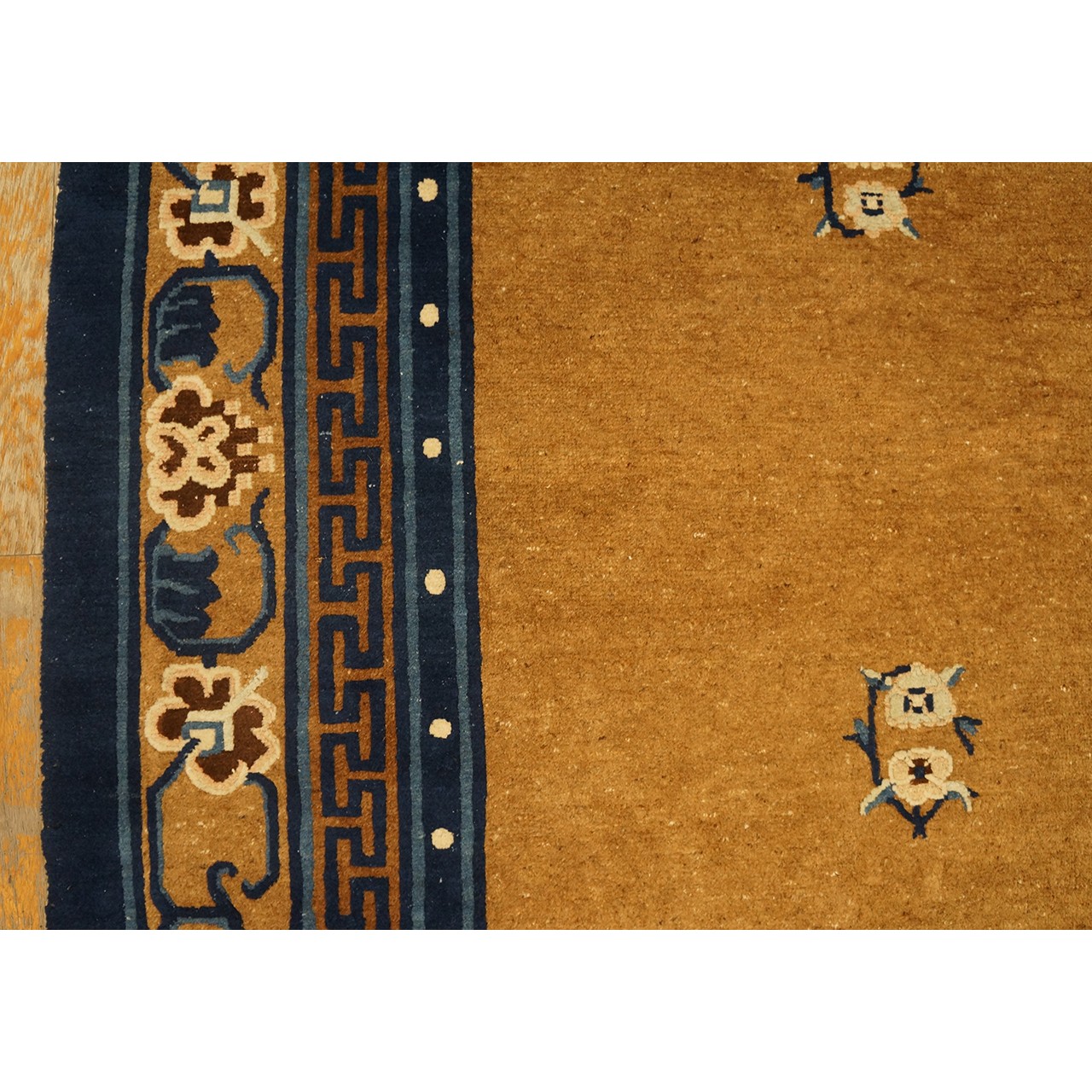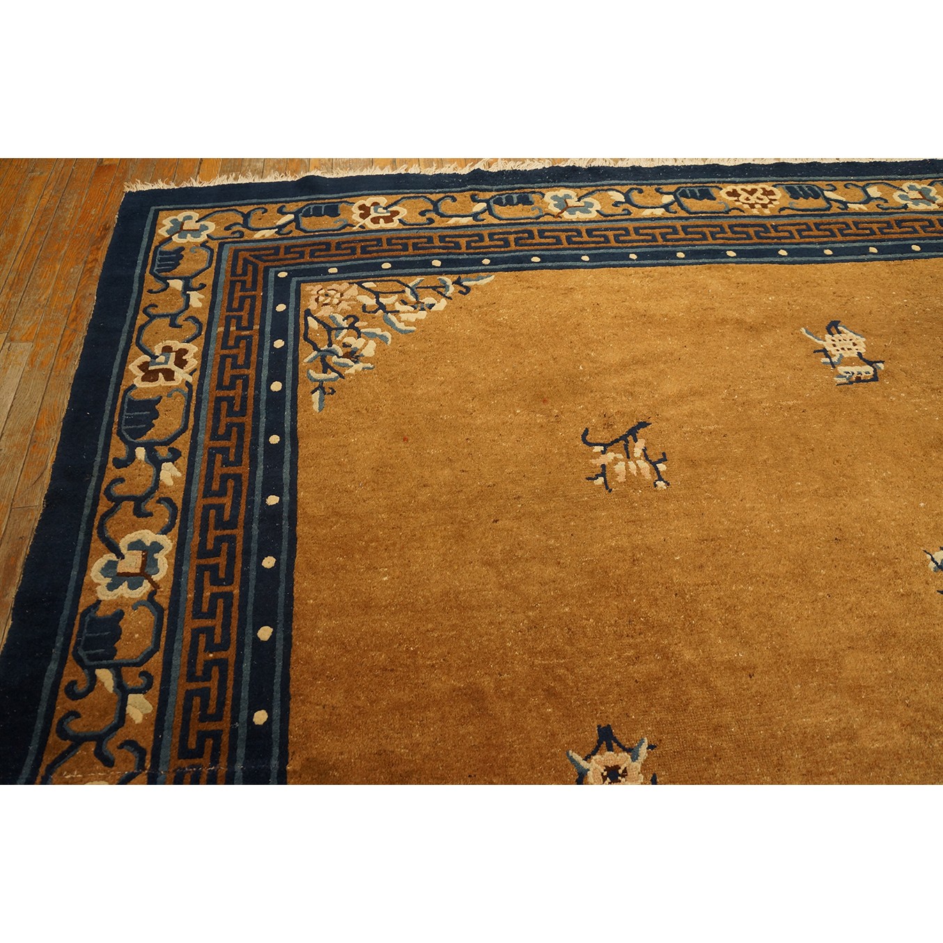 DescriptionChineseCarpets made in China proper. See entries Ningshia, Peking, Art Deco. Chinese - PekingThe commercial Peking carpet is a later 19th century development, begun by importing weaves from Ningshia (see entry) to create and export industry aimed at Western markets. The foundation is cotton and the pile is a good quality carpet wool which takes dyes particularly well. The neat medium weave is in Persian (asymmetric) knots. Designs are strictly Chinese and the whole motif repertoire of Chinese art is employed. Blue and white is the most popular color combination and red is particularly rare. Sizes tend to 9 x 12 and larger, and few small pieces appear. For a short time in the early 1920s Persian designs were woven to capitalize on the death of new Iranian goods. The industry decimated by the Communist Revolution relocated to the Pearl River area. There is a good supply of antique carpets at reasonable prices. | |