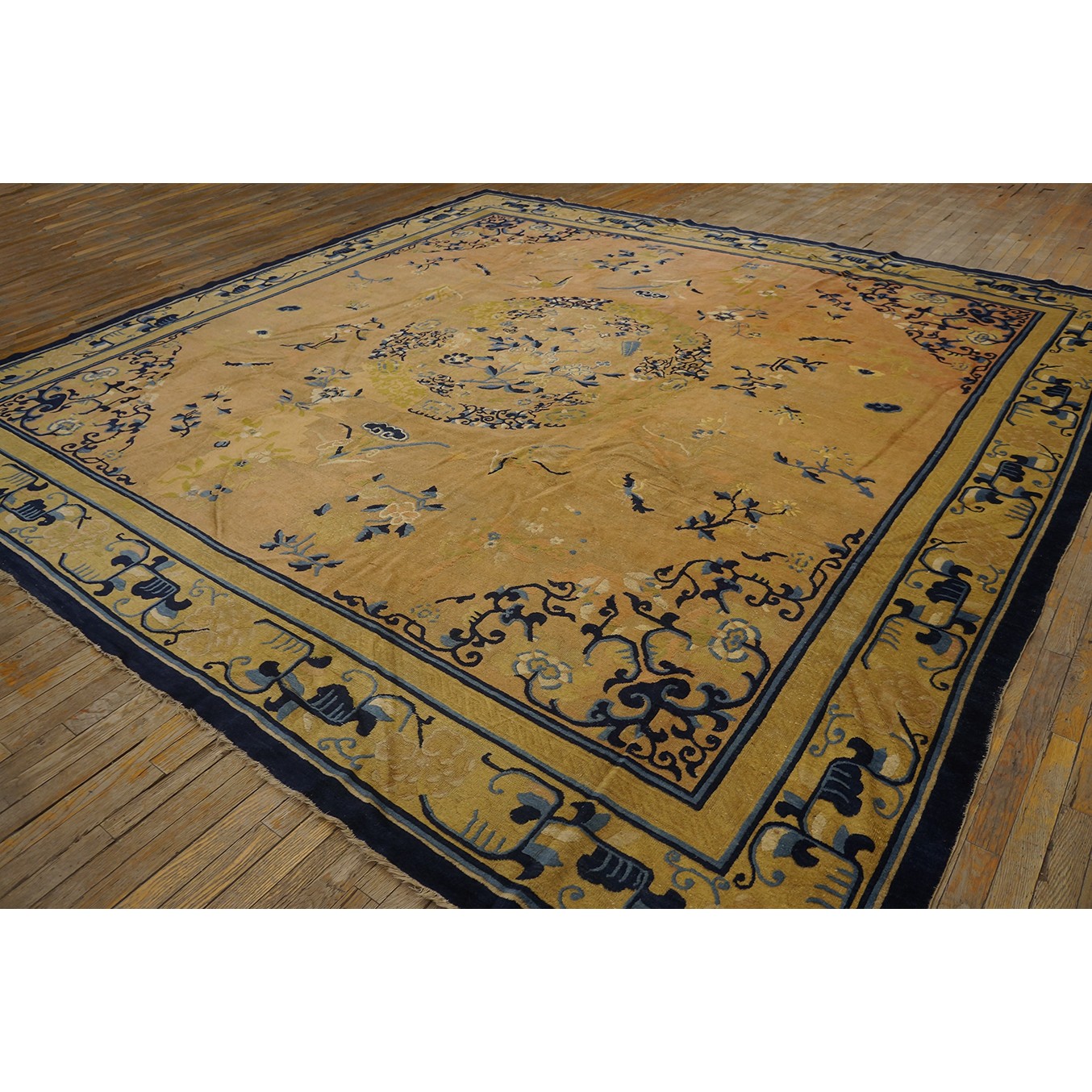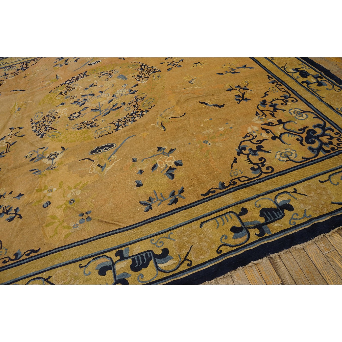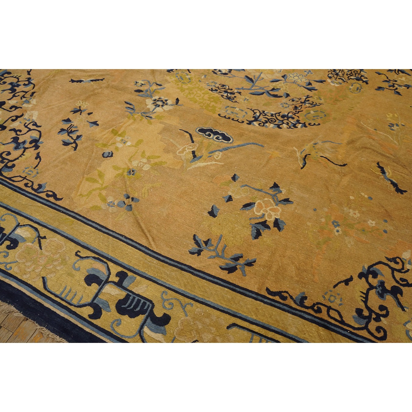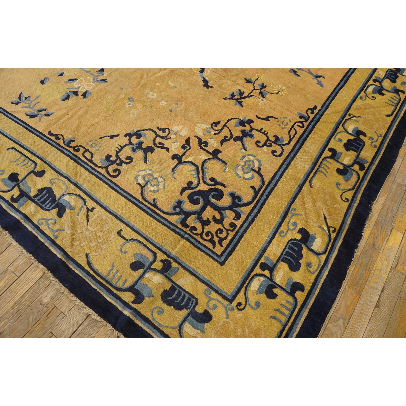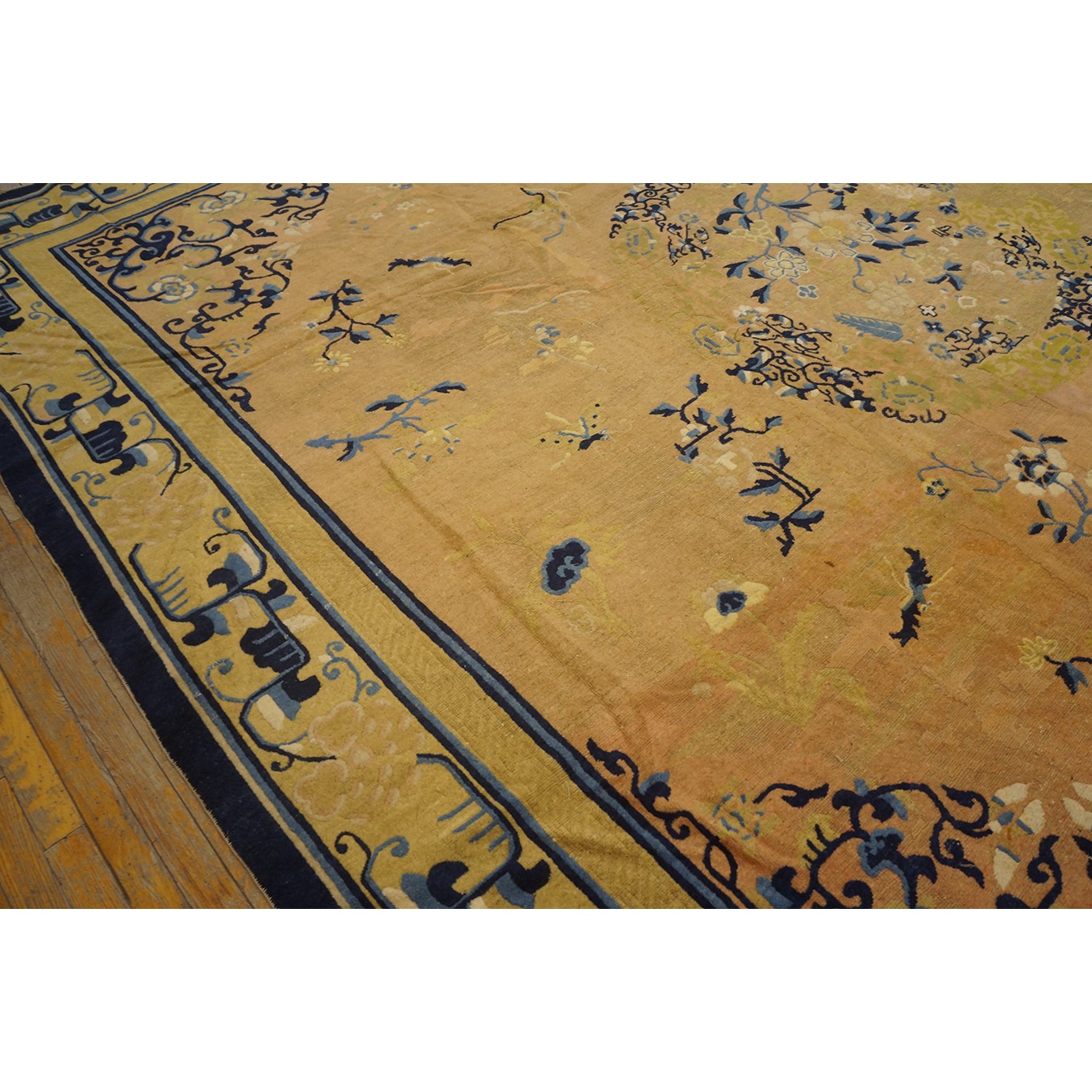 DescriptionChineseCarpets made in China proper. See entries Ningshia, Peking, Art Deco. Chinese - PekingThe commercial Peking carpet is a later 19th century development, begun by importing weaves from Ningshia (see entry) to create and export industry aimed at Western markets. The foundation is cotton and the pile is a good quality carpet wool which takes dyes particularly well. The neat medium weave is in Persian (asymmetric) knots. Designs are strictly Chinese and the whole motif repertoire of Chinese art is employed. Blue and white is the most popular color combination and red is particularly rare. Sizes tend to 9 x 12 and larger, and few small pieces appear. For a short time in the early 1920s Persian designs were woven to capitalize on the death of new Iranian goods. The industry decimated by the Communist Revolution relocated to the Pearl River area. There is a good supply of antique carpets at reasonable prices. | |