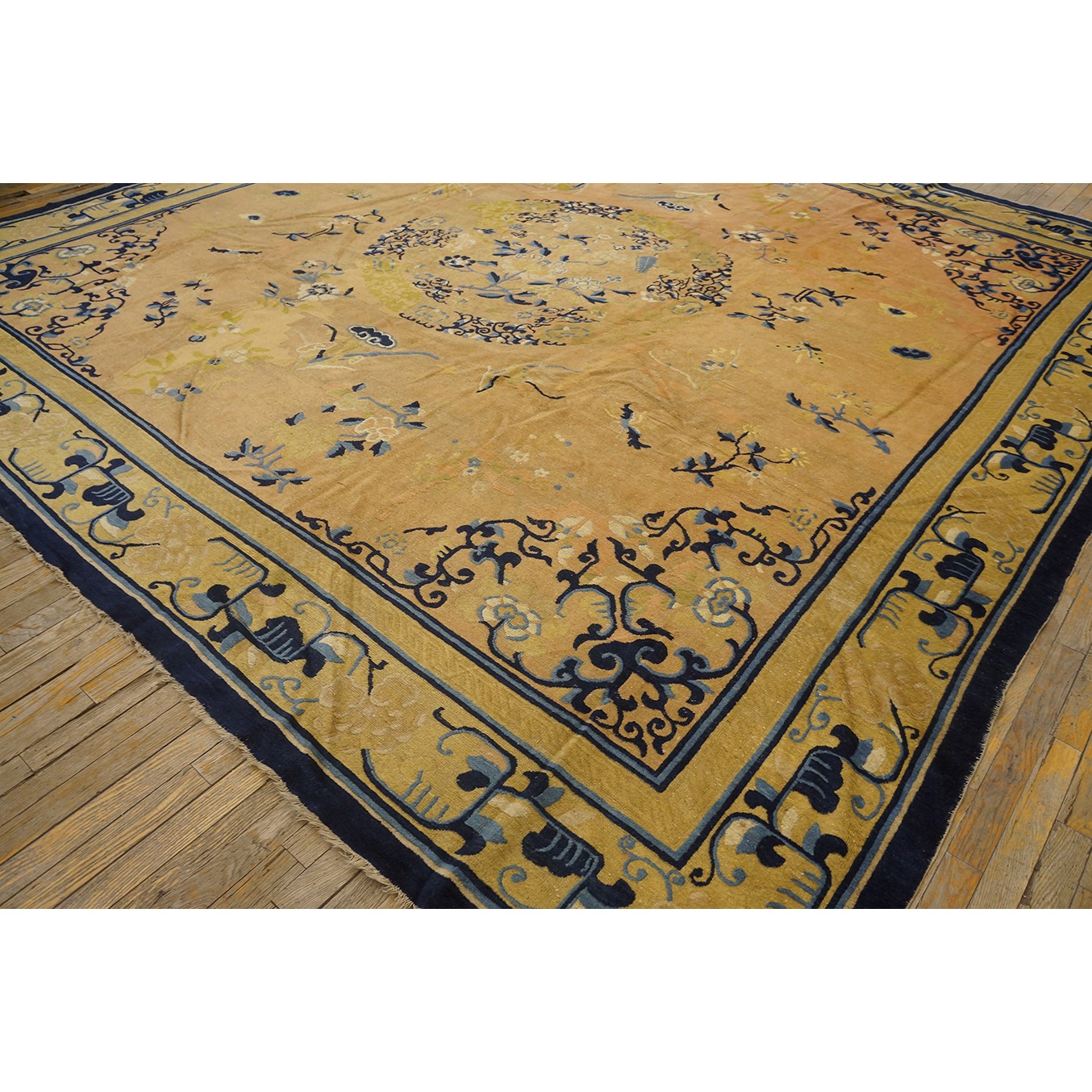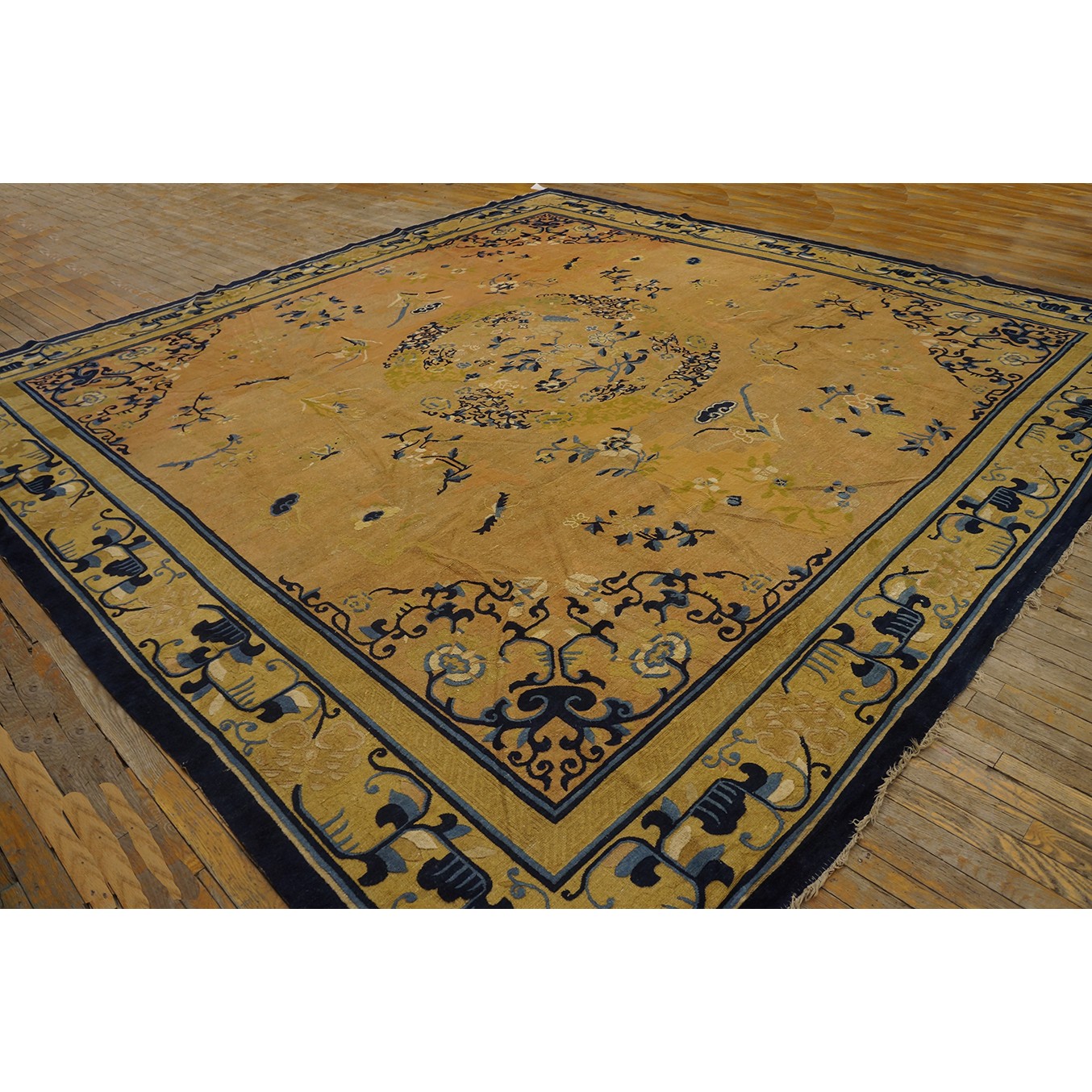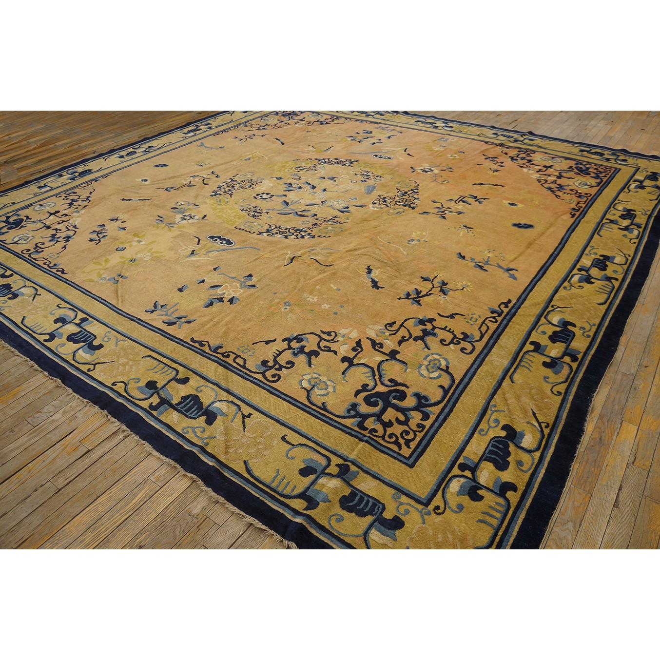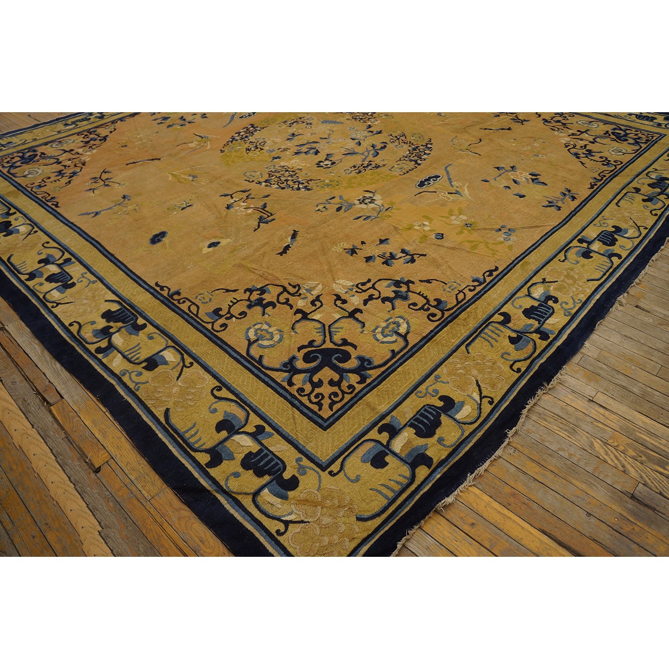 DescriptionChineseCarpets made in China proper. See entries Ningshia, Peking, Art Deco. Chinese - PekingThe commercial Peking carpet is a later 19th century development, begun by importing weaves from Ningshia (see entry) to create and export industry aimed at Western markets. The foundation is cotton and the pile is a good quality carpet wool which takes dyes particularly well. The neat medium weave is in Persian (asymmetric) knots. Designs are strictly Chinese and the whole motif repertoire of Chinese art is employed. Blue and white is the most popular color combination and red is particularly rare. Sizes tend to 9 x 12 and larger, and few small pieces appear. For a short time in the early 1920s Persian designs were woven to capitalize on the death of new Iranian goods. The industry decimated by the Communist Revolution relocated to the Pearl River area. There is a good supply of antique carpets at reasonable prices. | |