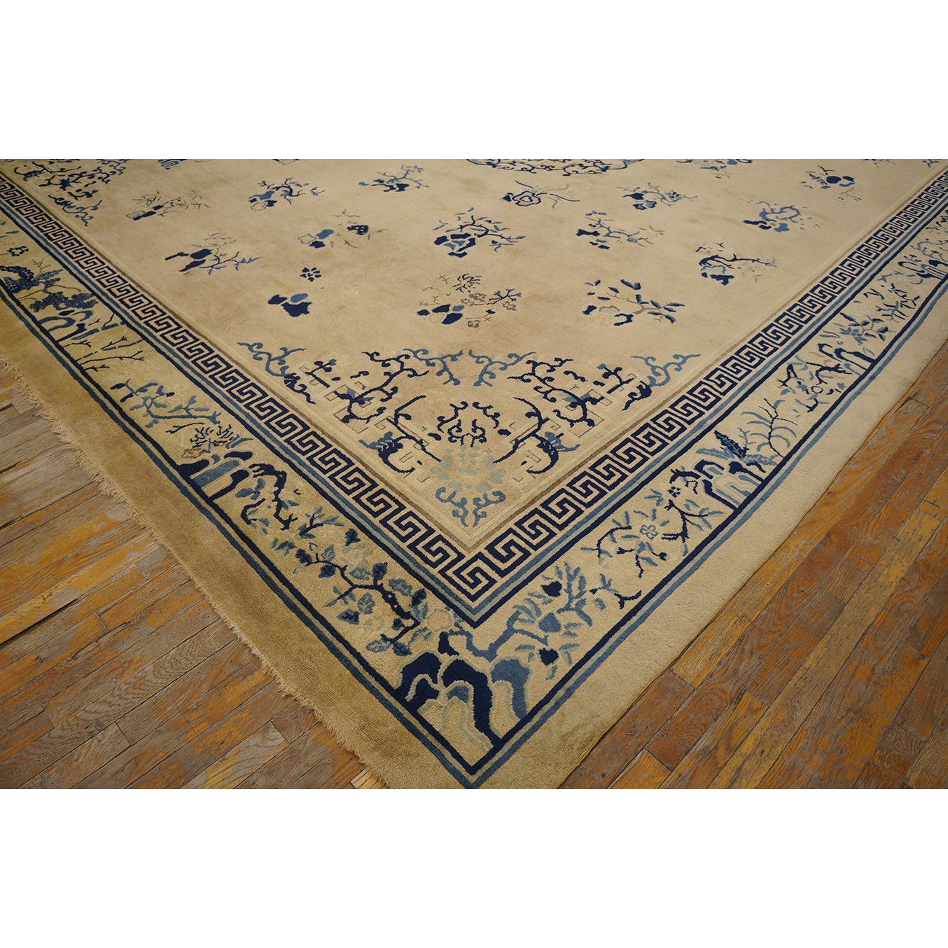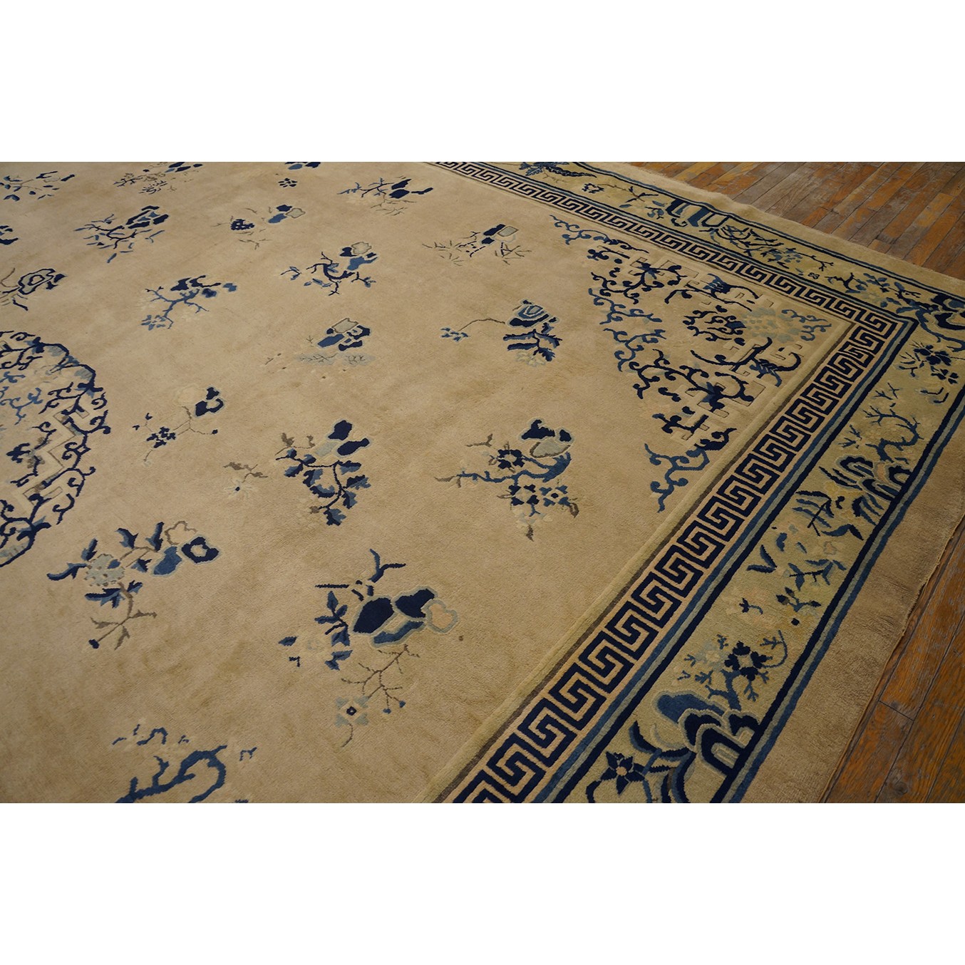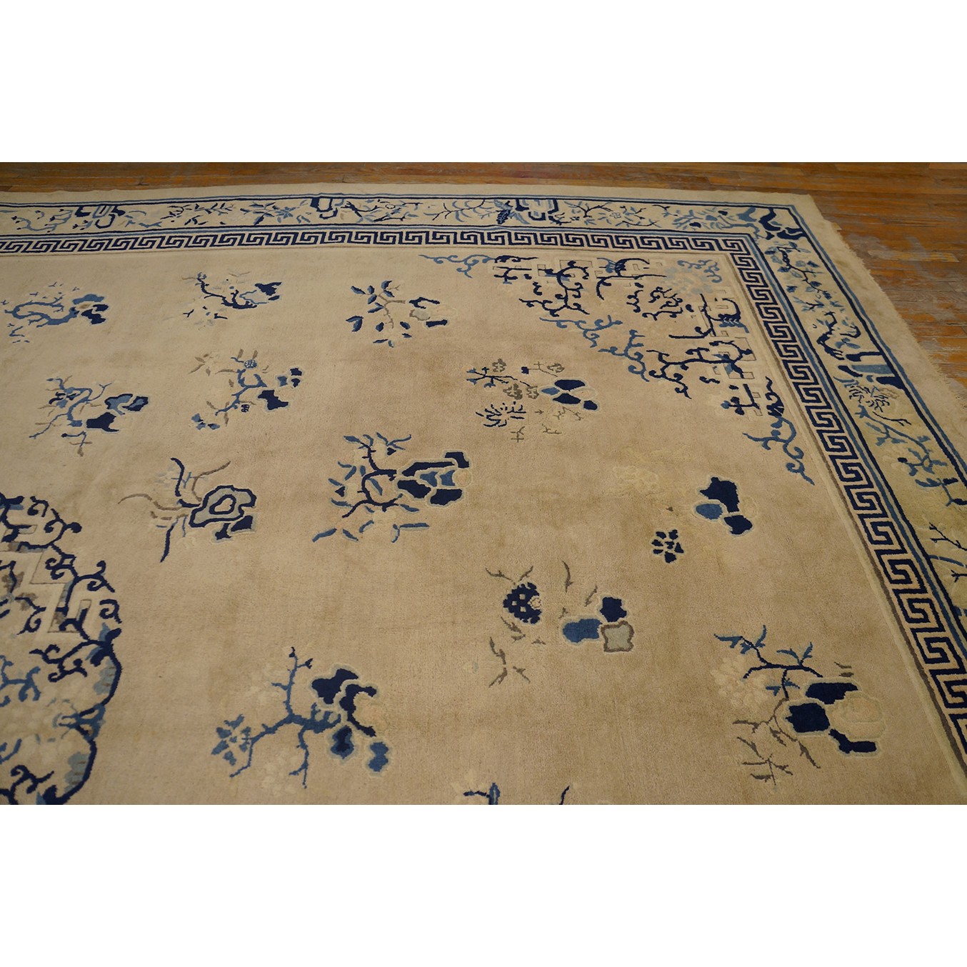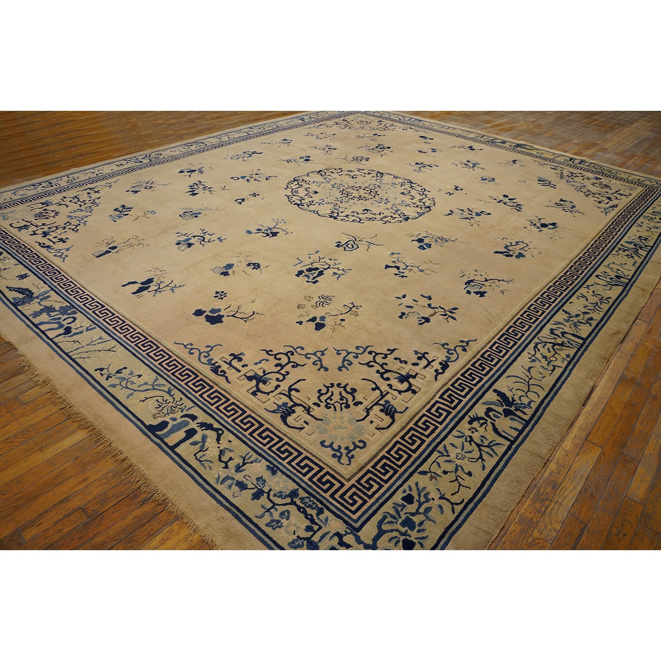 DescriptionChineseCarpets made in China proper. See entries Ningshia, Peking, Art Deco. Chinese - PekingThe commercial Peking carpet is a later 19th century development, begun by importing weaves from Ningshia (see entry) to create and export industry aimed at Western markets. The foundation is cotton and the pile is a good quality carpet wool which takes dyes particularly well. The neat medium weave is in Persian (asymmetric) knots. Designs are strictly Chinese and the whole motif repertoire of Chinese art is employed. Blue and white is the most popular color combination and red is particularly rare. Sizes tend to 9 x 12 and larger, and few small pieces appear. For a short time in the early 1920s Persian designs were woven to capitalize on the death of new Iranian goods. The industry decimated by the Communist Revolution relocated to the Pearl River area. There is a good supply of antique carpets at reasonable prices. | |