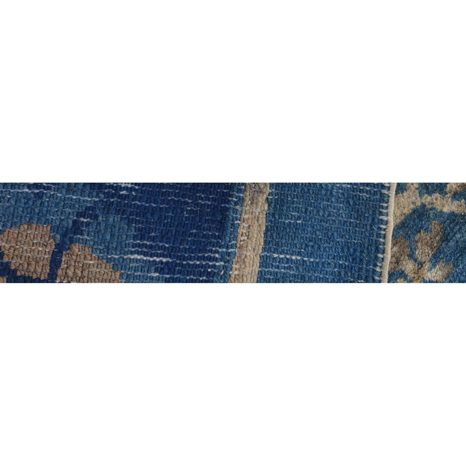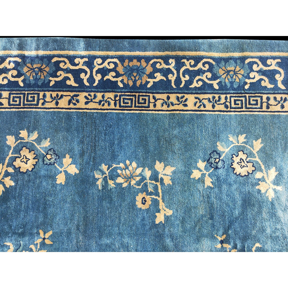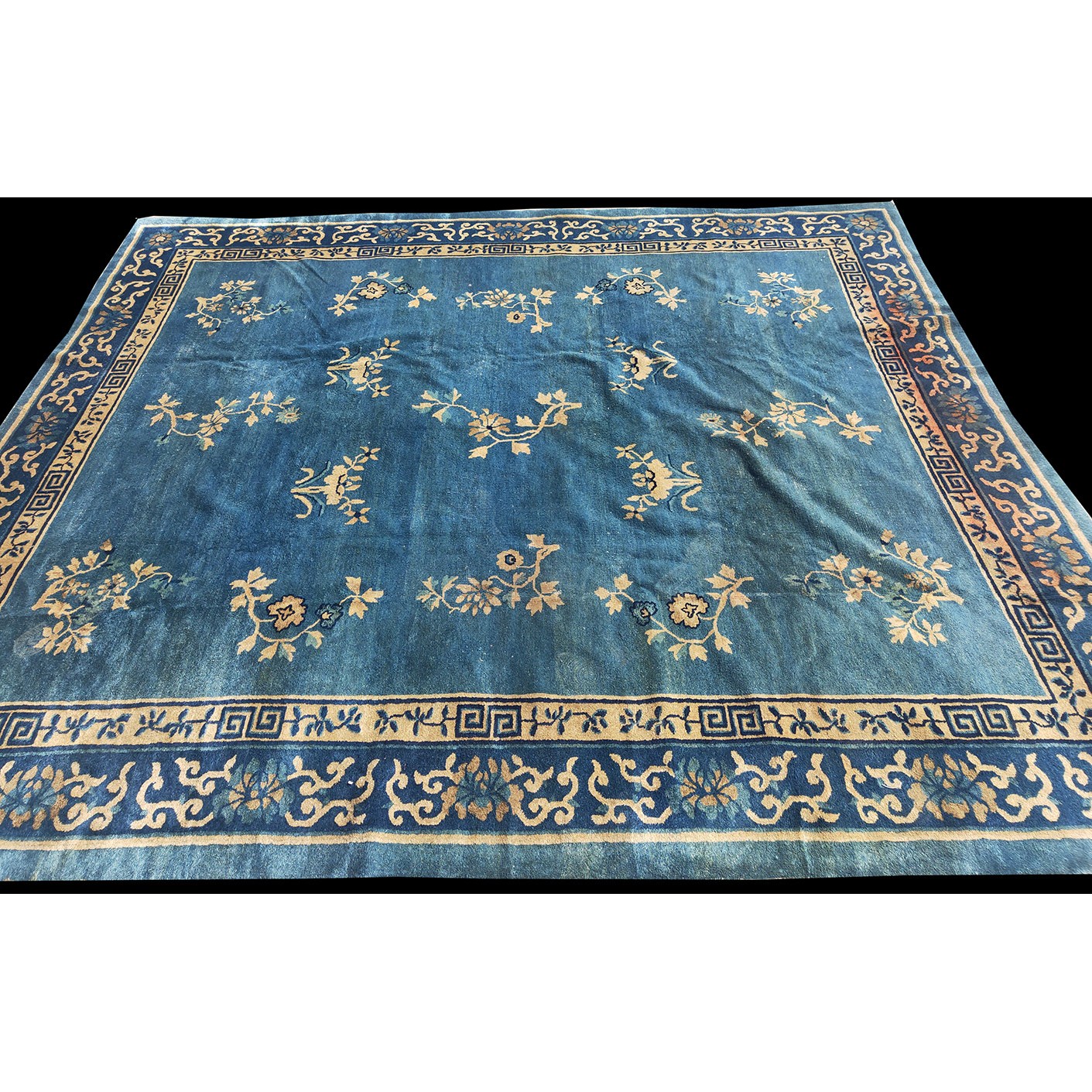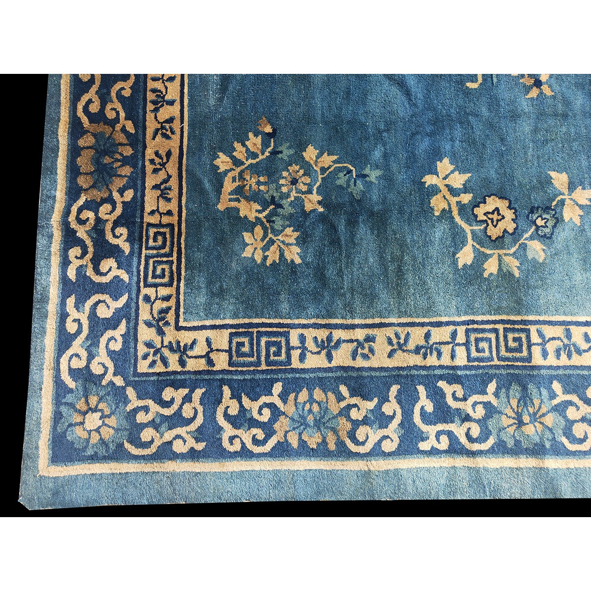 DescriptionChineseCarpets made in China proper. See entries Ningshia, Peking, Art Deco. Chinese - PekingThe commercial Peking carpet is a later 19th century development, begun by importing weaves from Ningshia (see entry) to create and export industry aimed at Western markets. The foundation is cotton and the pile is a good quality carpet wool which takes dyes particularly well. The neat medium weave is in Persian (asymmetric) knots. Designs are strictly Chinese and the whole motif repertoire of Chinese art is employed. Blue and white is the most popular color combination and red is particularly rare. Sizes tend to 9 x 12 and larger, and few small pieces appear. For a short time in the early 1920s Persian designs were woven to capitalize on the death of new Iranian goods. The industry decimated by the Communist Revolution relocated to the Pearl River area. There is a good supply of antique carpets at reasonable prices. | |