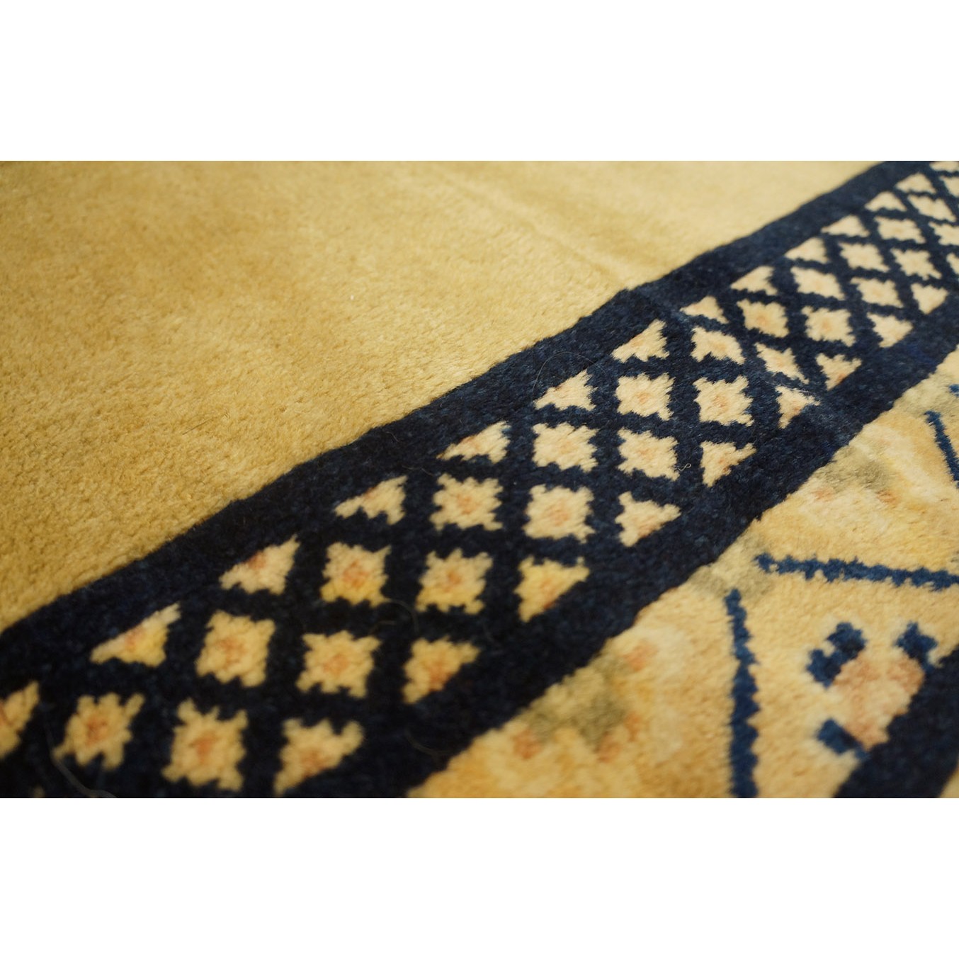 DescriptionChineseCarpets made in China proper. See entries Ningshia, Peking, Art Deco. Chinese - PekingThe commercial Peking carpet is a later 19th century development, begun by importing weaves from Ningshia (see entry) to create and export industry aimed at Western markets. The foundation is cotton and the pile is a good quality carpet wool which takes dyes particularly well. The neat medium weave is in Persian (asymmetric) knots. Designs are strictly Chinese and the whole motif repertoire of Chinese art is employed. Blue and white is the most popular color combination and red is particularly rare. Sizes tend to 9 x 12 and larger, and few small pieces appear. For a short time in the early 1920s Persian designs were woven to capitalize on the death of new Iranian goods. The industry decimated by the Communist Revolution relocated to the Pearl River area. There is a good supply of antique carpets at reasonable prices. | |