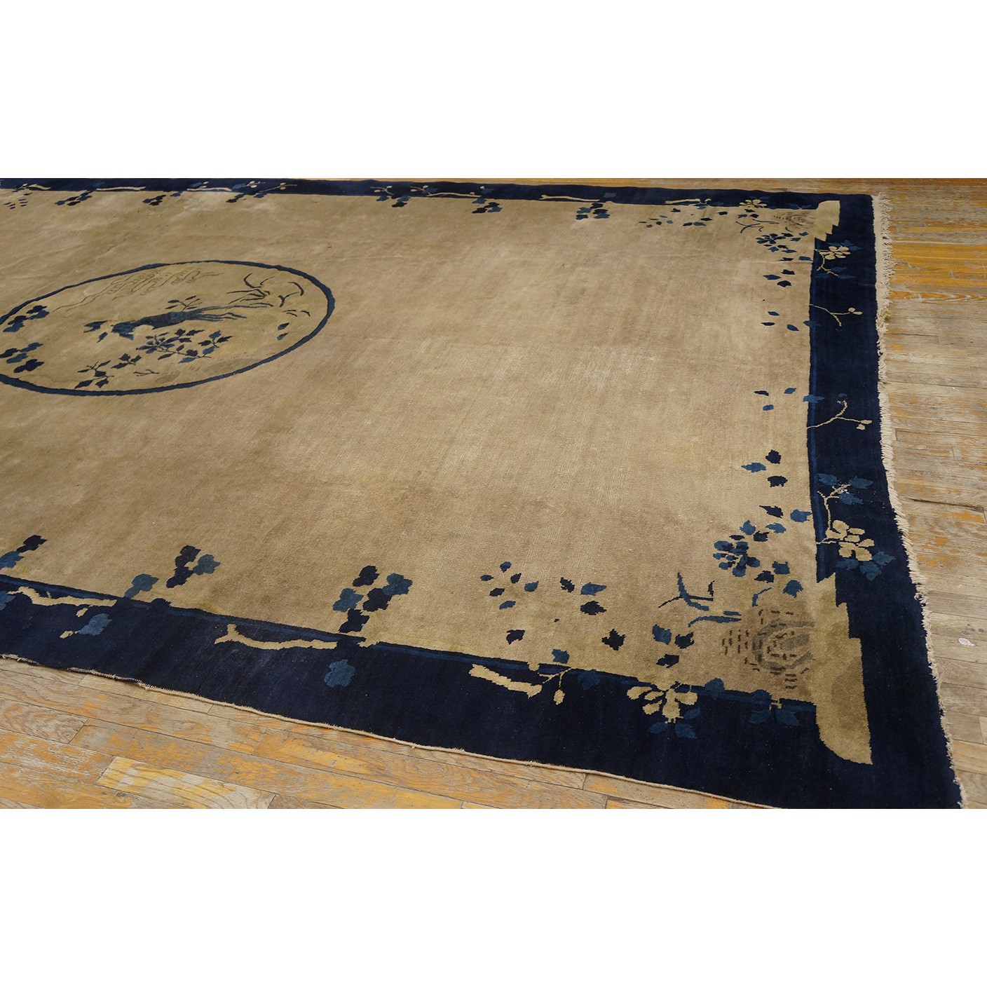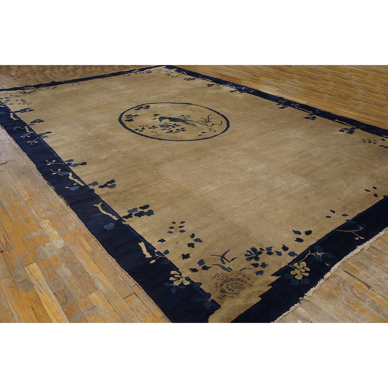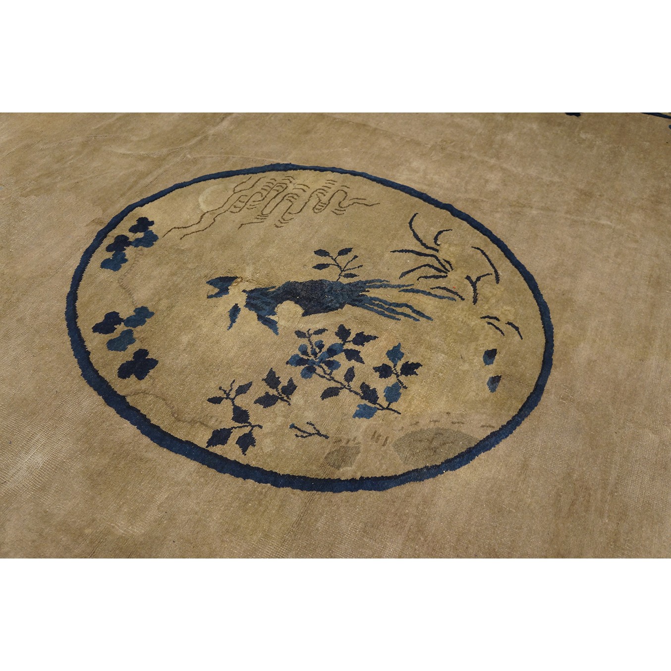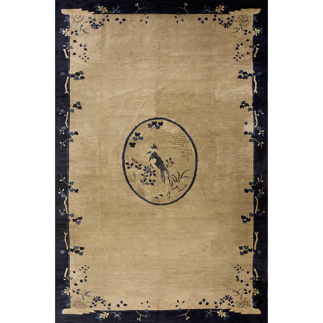 DescriptionChineseCarpets made in China proper. See entries Ningshia, Peking, Art Deco. Chinese - PekingThe commercial Peking carpet is a later 19th century development, begun by importing weaves from Ningshia (see entry) to create and export industry aimed at Western markets. The foundation is cotton and the pile is a good quality carpet wool which takes dyes particularly well. The neat medium weave is in Persian (asymmetric) knots. Designs are strictly Chinese and the whole motif repertoire of Chinese art is employed. Blue and white is the most popular color combination and red is particularly rare. Sizes tend to 9 x 12 and larger, and few small pieces appear. For a short time in the early 1920s Persian designs were woven to capitalize on the death of new Iranian goods. The industry decimated by the Communist Revolution relocated to the Pearl River area. There is a good supply of antique carpets at reasonable prices. | |