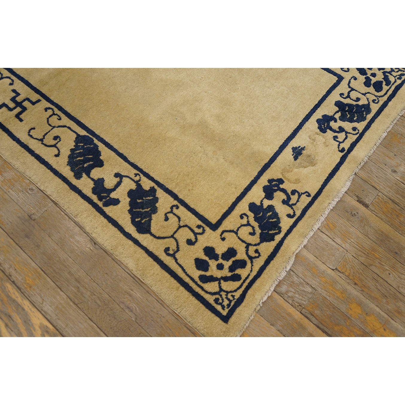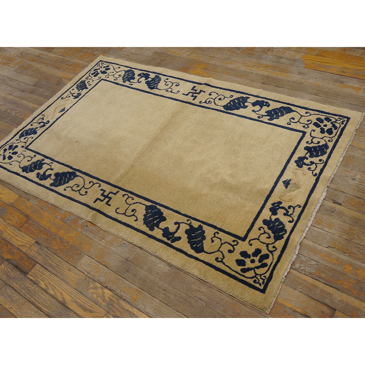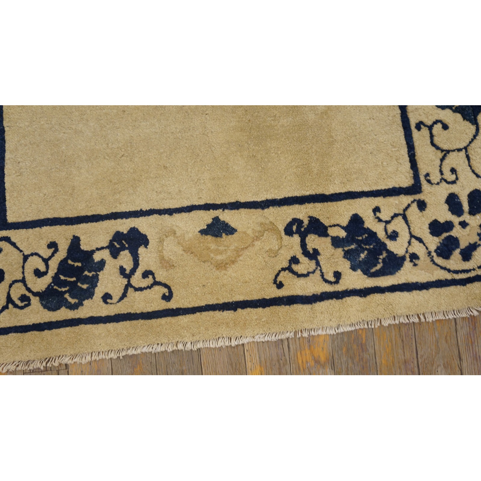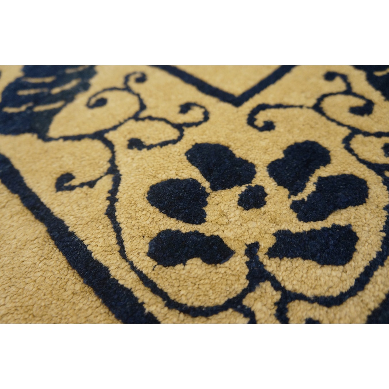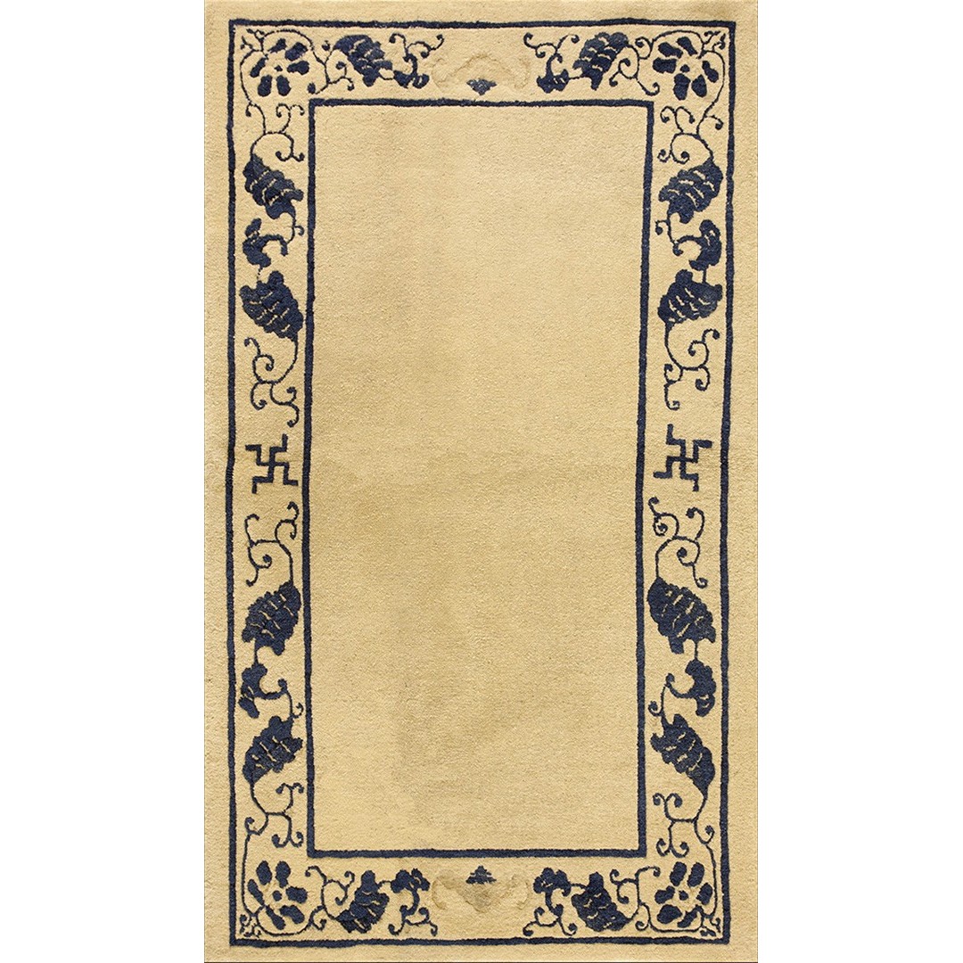DescriptionChineseCarpets made in China proper. See entries Ningshia, Peking, Art Deco. Chinese - PekingThe commercial Peking carpet is a later 19th century development, begun by importing weaves from Ningshia (see entry) to create and export industry aimed at Western markets. The foundation is cotton and the pile is a good quality carpet wool which takes dyes particularly well. The neat medium weave is in Persian (asymmetric) knots. Designs are strictly Chinese and the whole motif repertoire of Chinese art is employed. Blue and white is the most popular color combination and red is particularly rare. Sizes tend to 9 x 12 and larger, and few small pieces appear. For a short time in the early 1920s Persian designs were woven to capitalize on the death of new Iranian goods. The industry decimated by the Communist Revolution relocated to the Pearl River area. There is a good supply of antique carpets at reasonable prices. | |